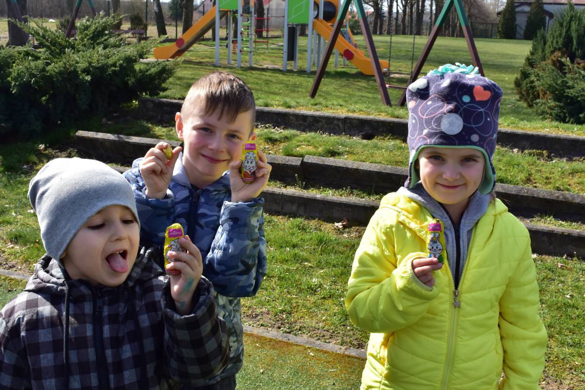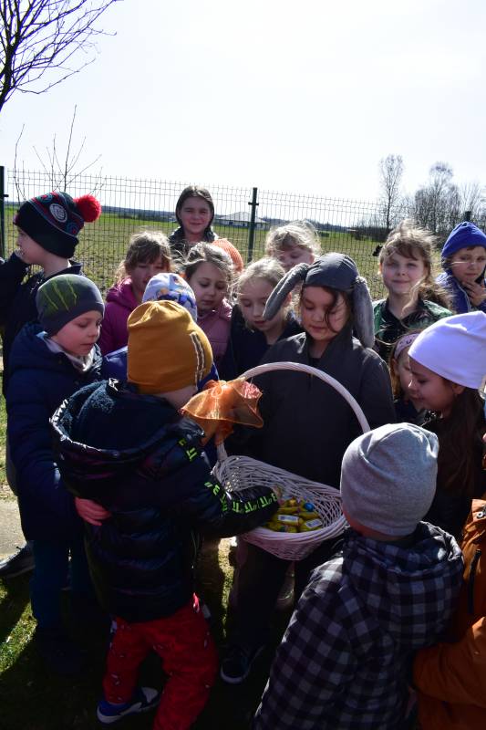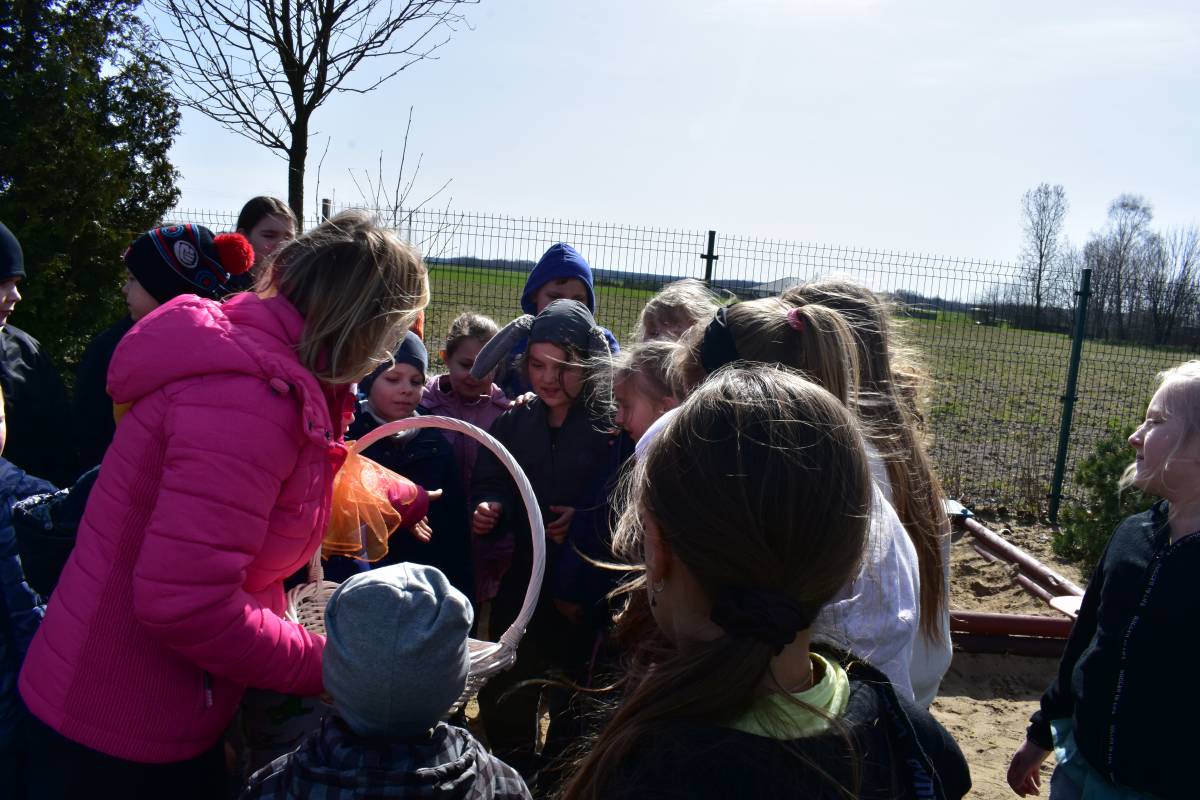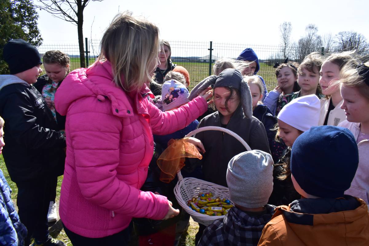 Uczniowie Szkoły Podstawowej w Krzemieniewicach przygotowują się do Świąt Wielkanocnych od wielu dni. Jednak najbardziej wyczekiwanym zwyczajem jest poszukiwanie zajączka. Odwiedził on naszą szkołę w ostatnim dniu nauki, czyli w środę 27 marca i ukrył słodycze dla dzieci na placu zabaw. Uczniowie z klas 0-III już od rana wypatrywali słodkich upominków. Udało im się znaleźć nie tylko wszystkie jajeczka, ale także samego Wielkanocnego Zajączka.