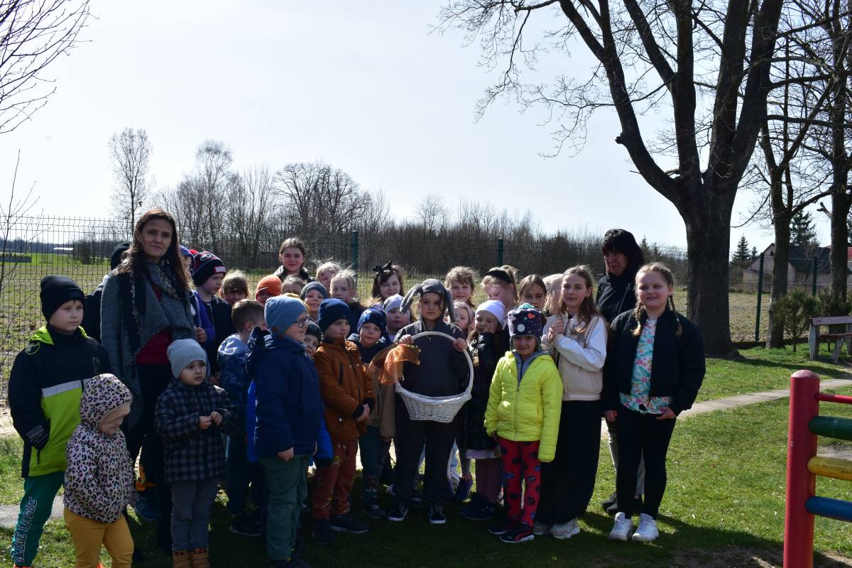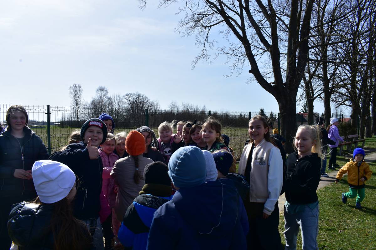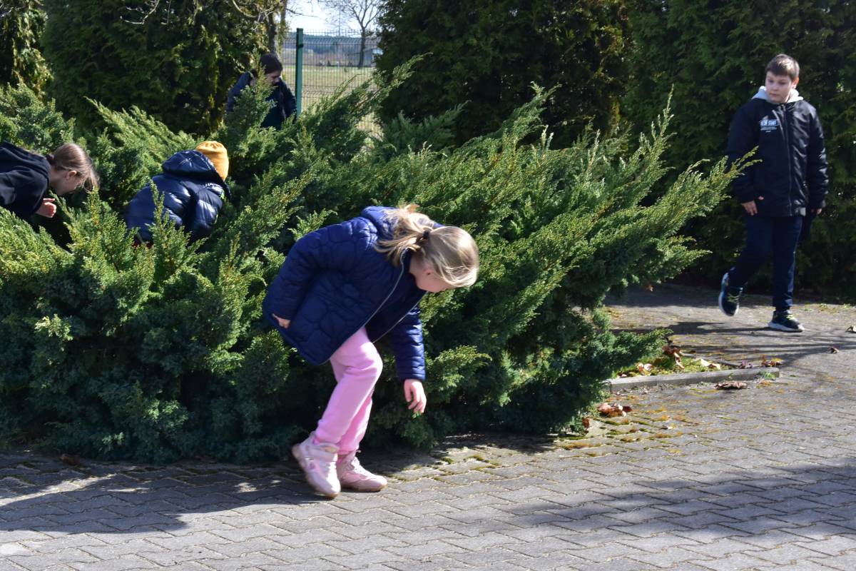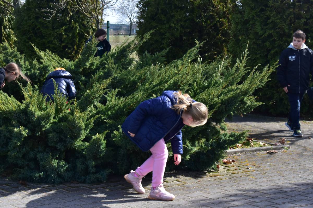 Uczniowie Szkoły Podstawowej w Krzemieniewicach przygotowują się do Świąt Wielkanocnych od wielu dni. Jednak najbardziej wyczekiwanym zwyczajem jest poszukiwanie zajączka. Odwiedził on naszą szkołę w ostatnim dniu nauki, czyli w środę 27 marca i ukrył słodycze dla dzieci na placu zabaw. Uczniowie z klas 0-III już od rana wypatrywali słodkich upominków. Udało im się znaleźć nie tylko wszystkie jajeczka, ale także samego Wielkanocnego Zajączka.