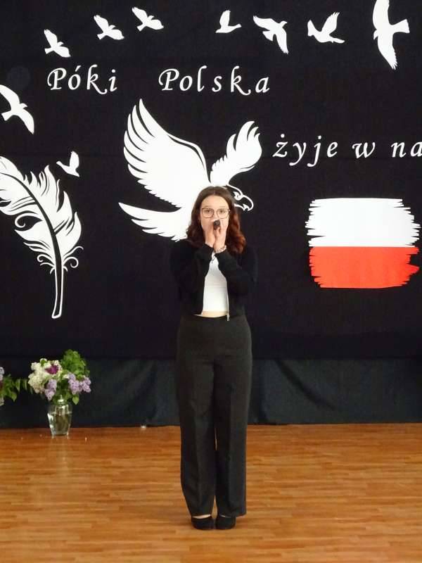 Na zakończenie głos zabrała pani dyrektor Magdalena Treścińska – Niemczyk, która podziękowała występującym uczniom za zaangażowanie, wskazała również na wagę i skutki historyczne tego wydarzenia.
