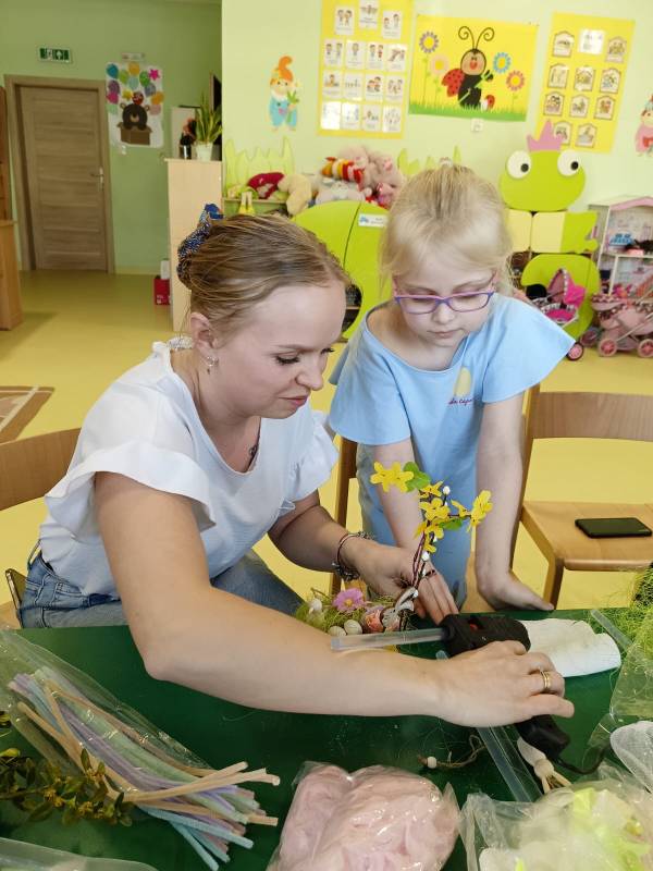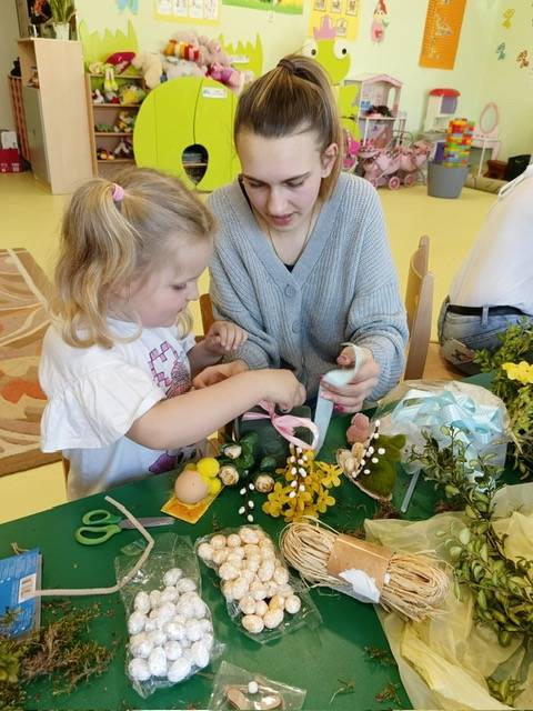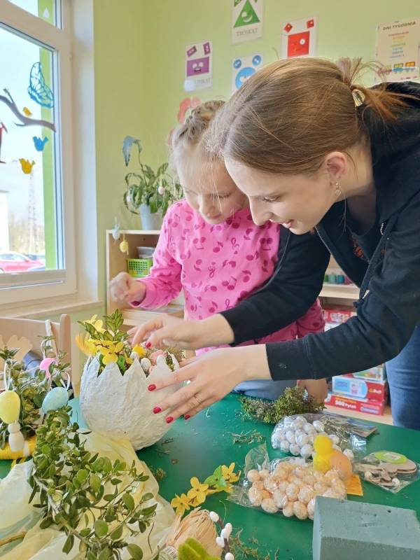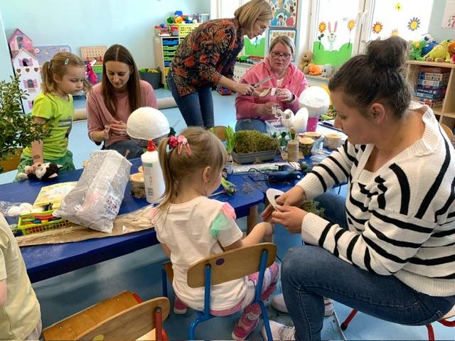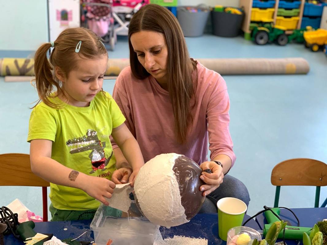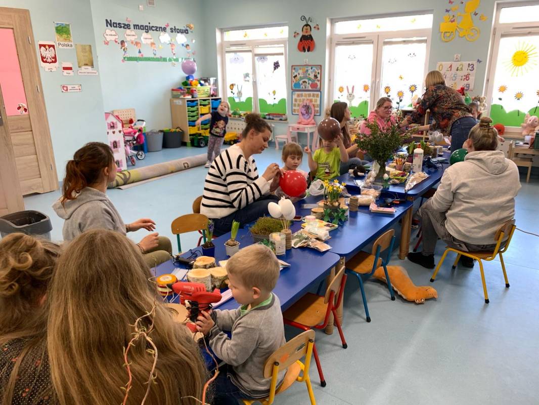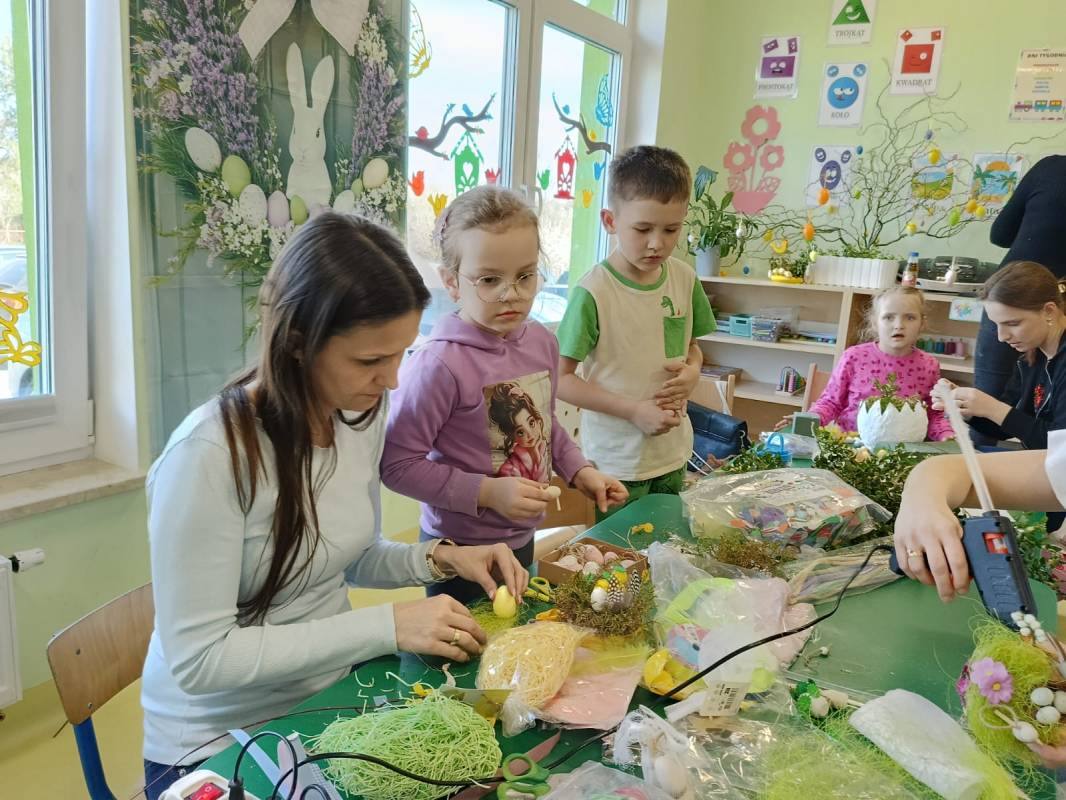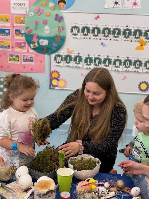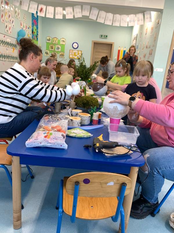 Przed nami radosny czas Świąt Wielkanocnych. Nasze przedszkolaki poprzez różne metody i formy poznają tradycje i symbole wielkanocne. W dniu 8 kwietnia 2025 roku w grupie: „Biedronki” oraz „Muchomorki” zorganizowano warsztaty wielkanocne z udziałem dzieci i rodziców. Wszyscy zebrani z wielkim zaangażowaniem, zapałem i weną twórczą wykonali ozdoby świąteczne. Współpraca z rodzicami to bardzo ważny element działalności przedszkola. Serdecznie dziękujemy wszystkim rodzicom za przybycie.