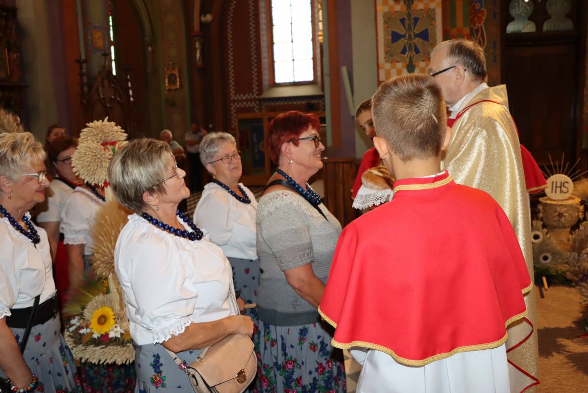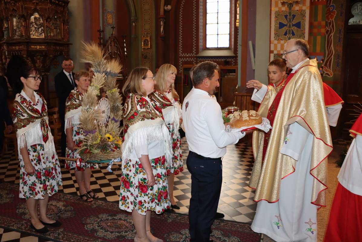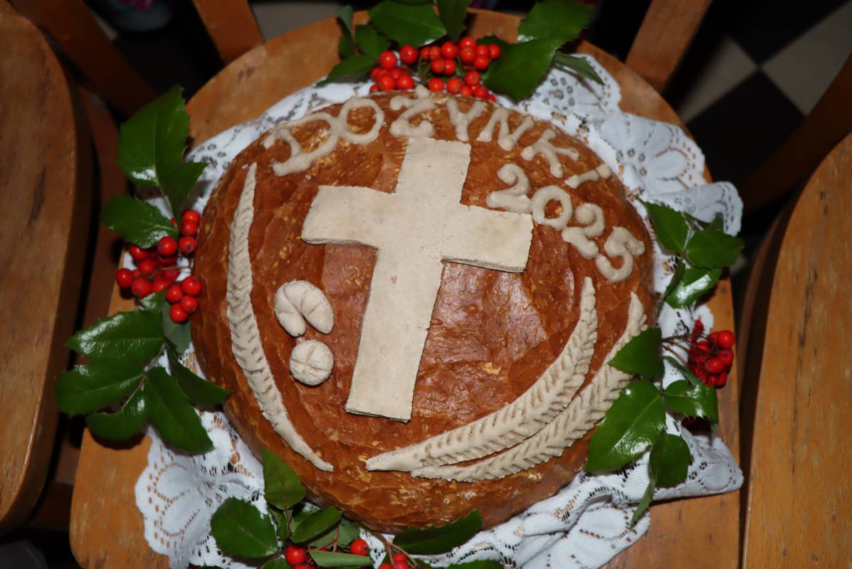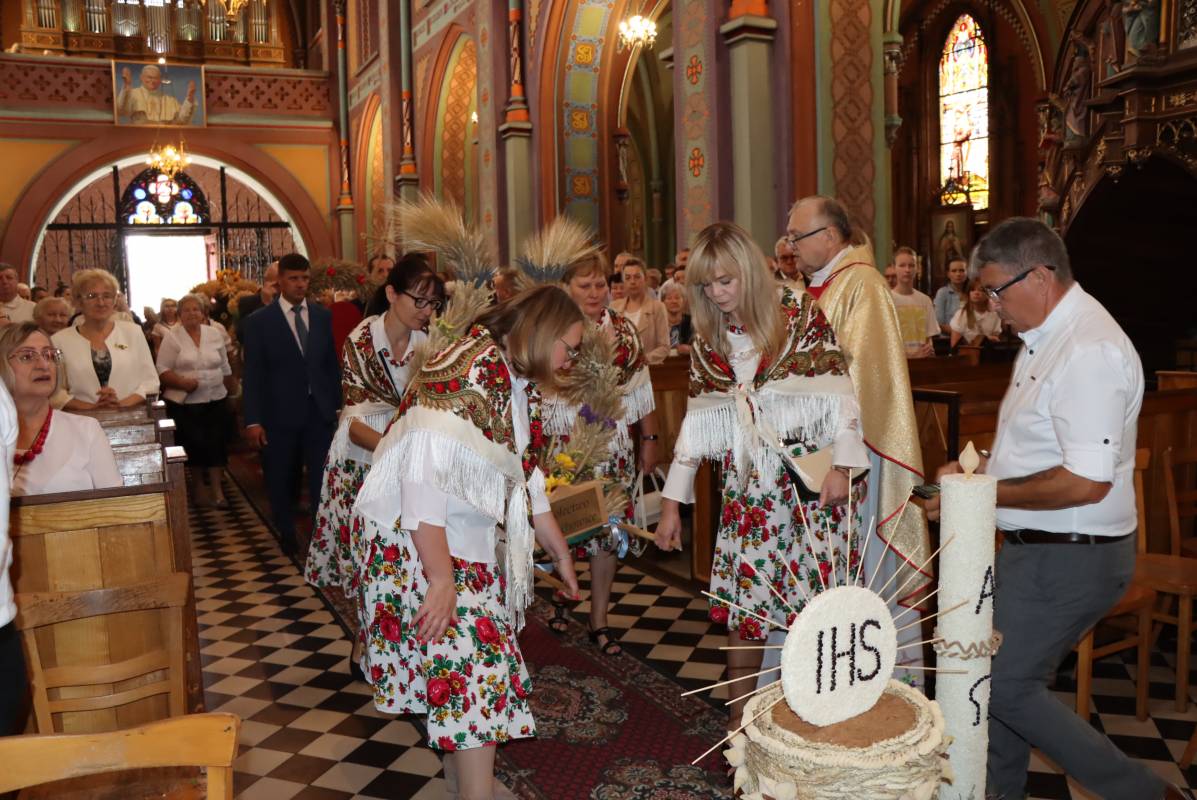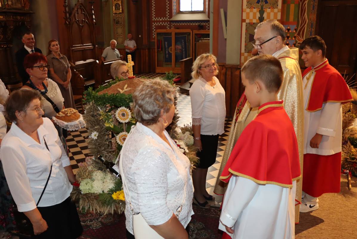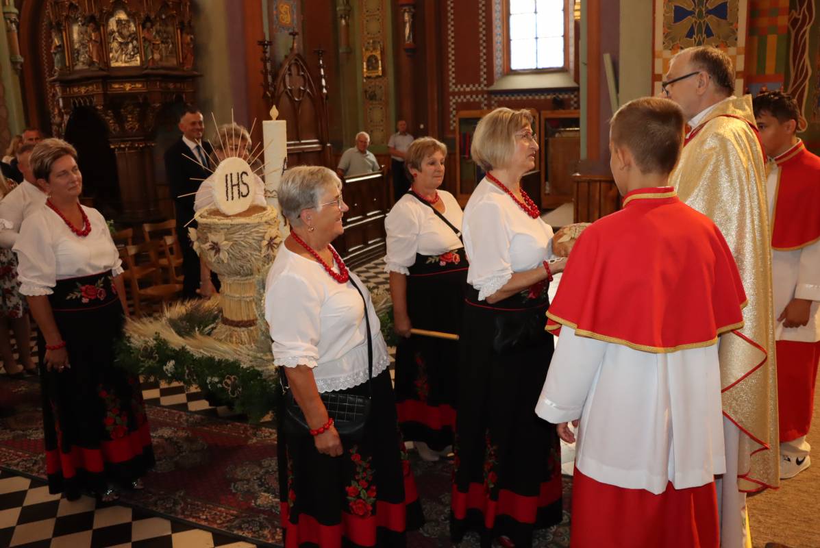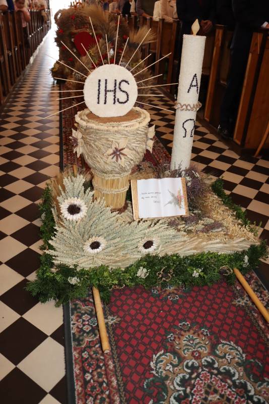 Zgodnie z tradycją przed ołtarz przyniesiono wieńce dożynkowe oraz bochny chleba upieczone z tegorocznych zbiorów. Msza Święta była okazją do wspólnej modlitwy i podziękowania rolnikom za ich ciężką, całoroczną pracę.
