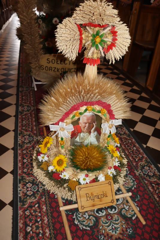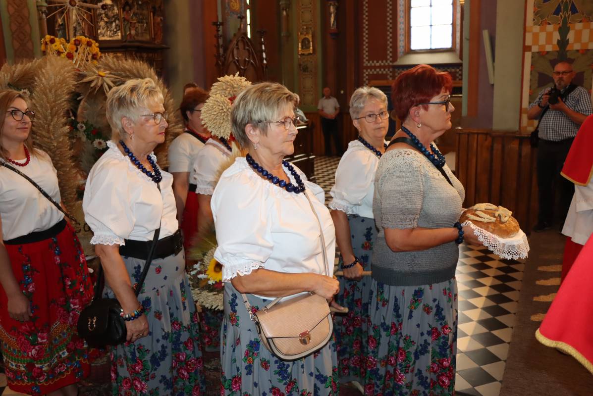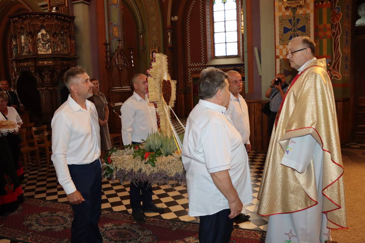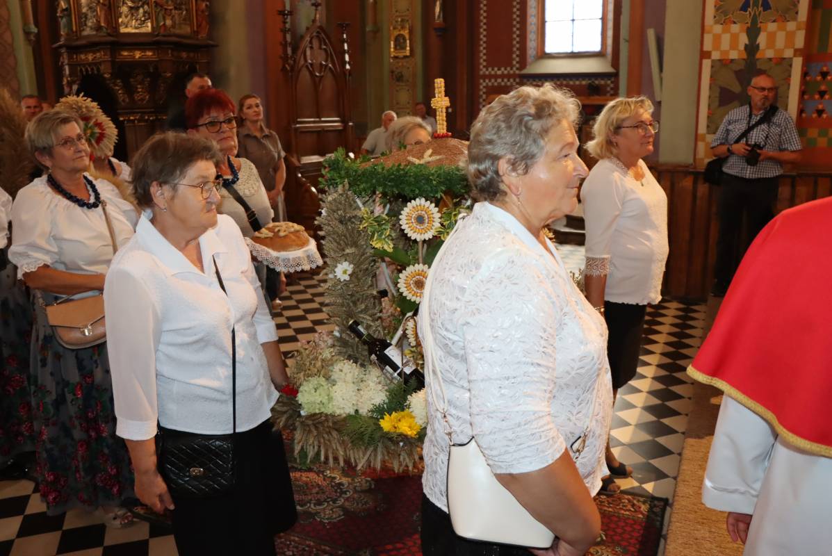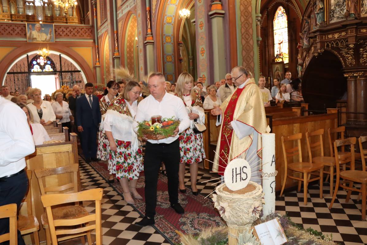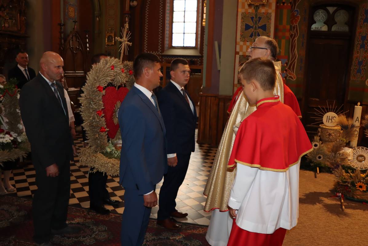 Zgodnie z tradycją przed ołtarz przyniesiono wieńce dożynkowe oraz bochny chleba upieczone z tegorocznych zbiorów. Msza Święta była okazją do wspólnej modlitwy i podziękowania rolnikom za ich ciężką, całoroczną pracę.