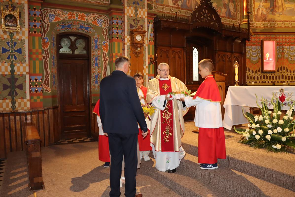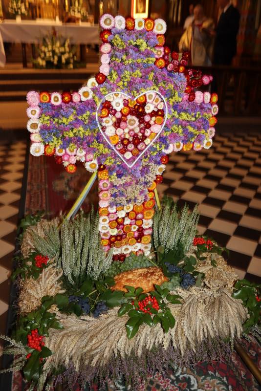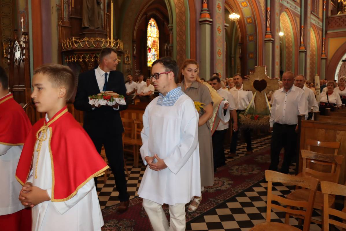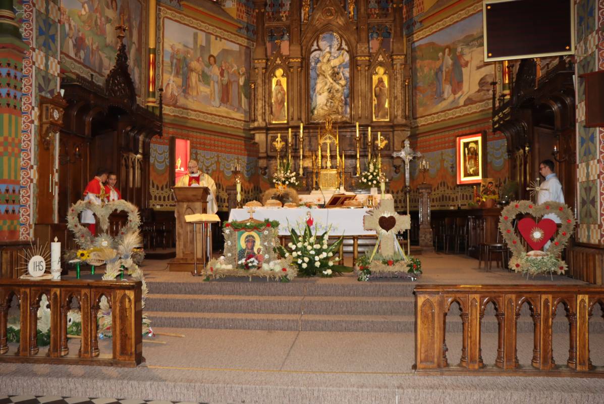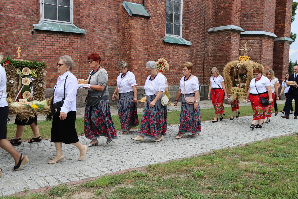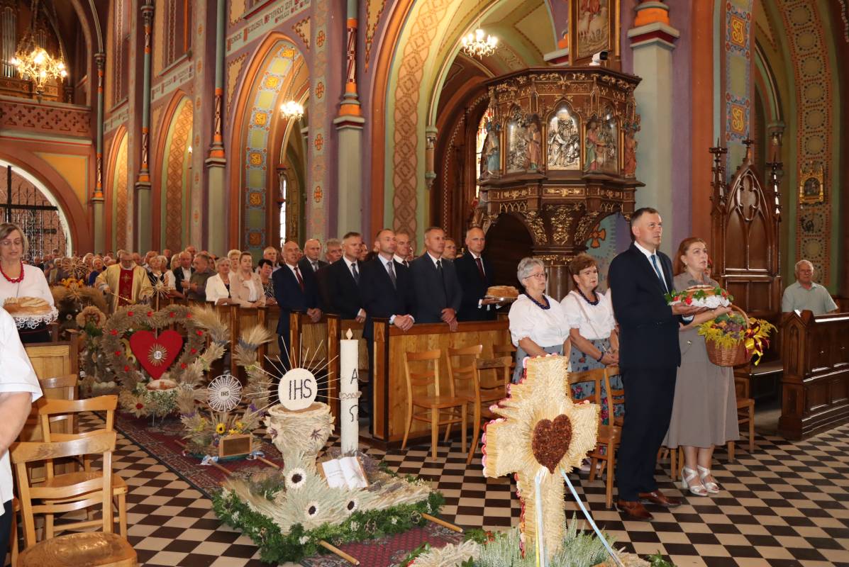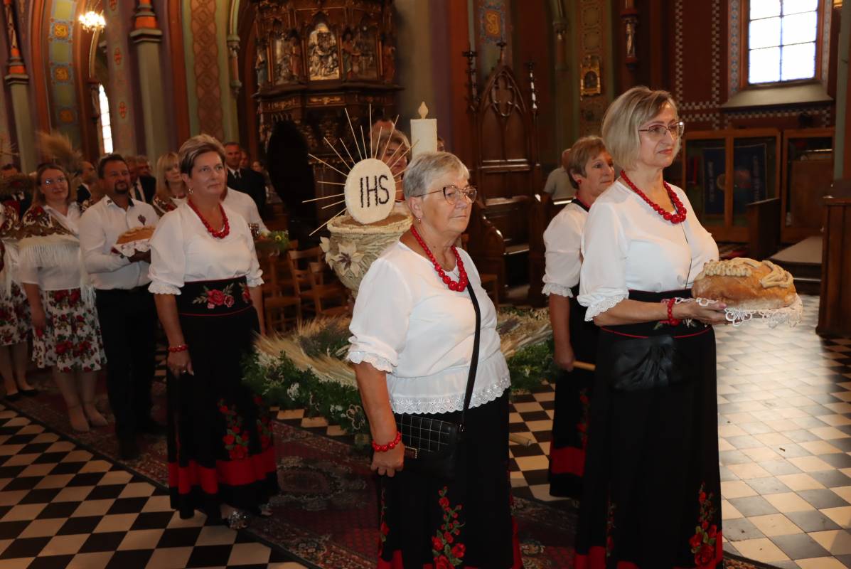 Zgodnie z tradycją przed ołtarz przyniesiono wieńce dożynkowe oraz bochny chleba upieczone z tegorocznych zbiorów. Msza Święta była okazją do wspólnej modlitwy i podziękowania rolnikom za ich ciężką, całoroczną pracę.