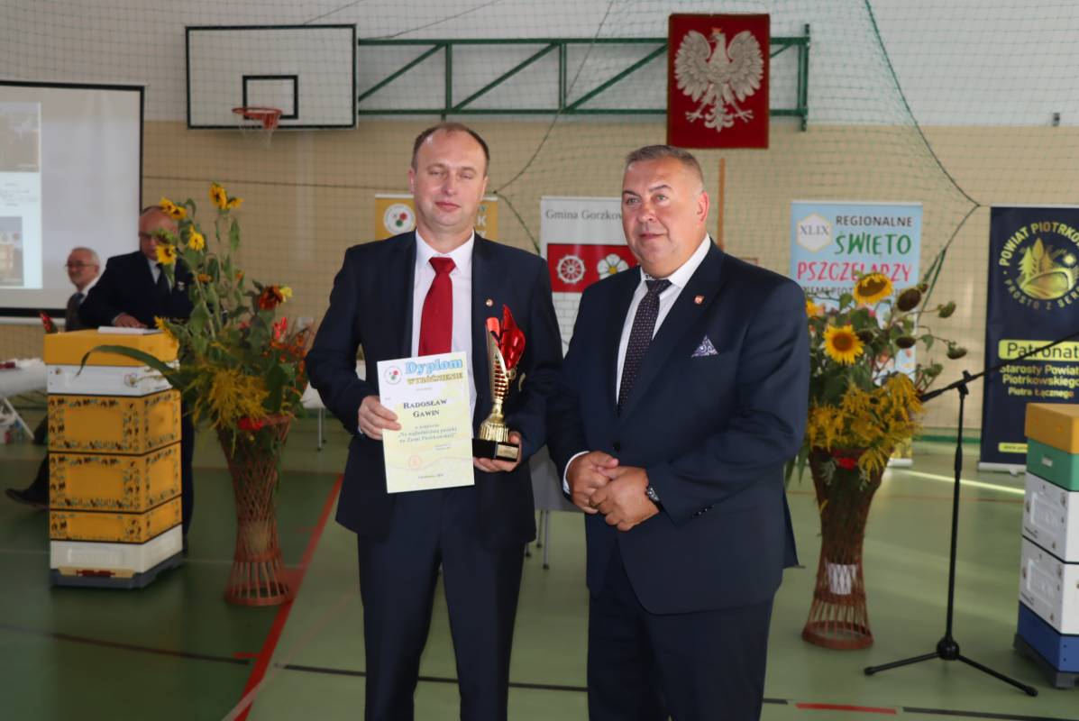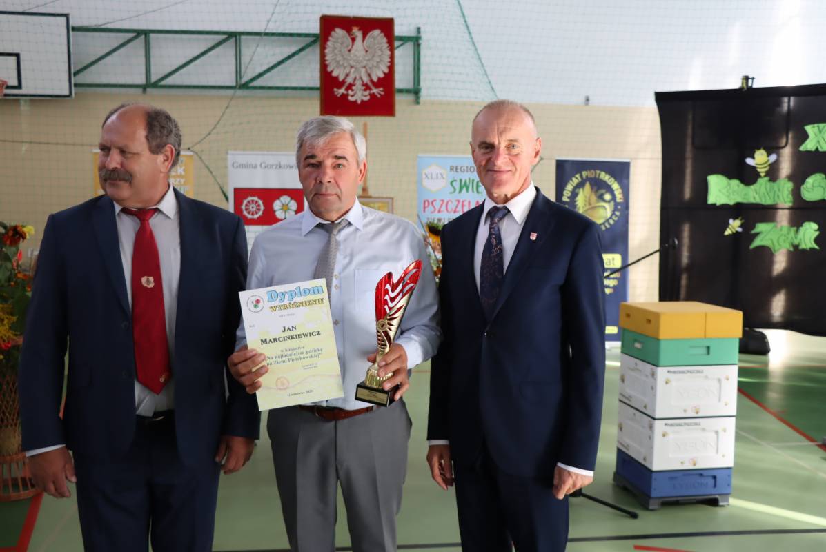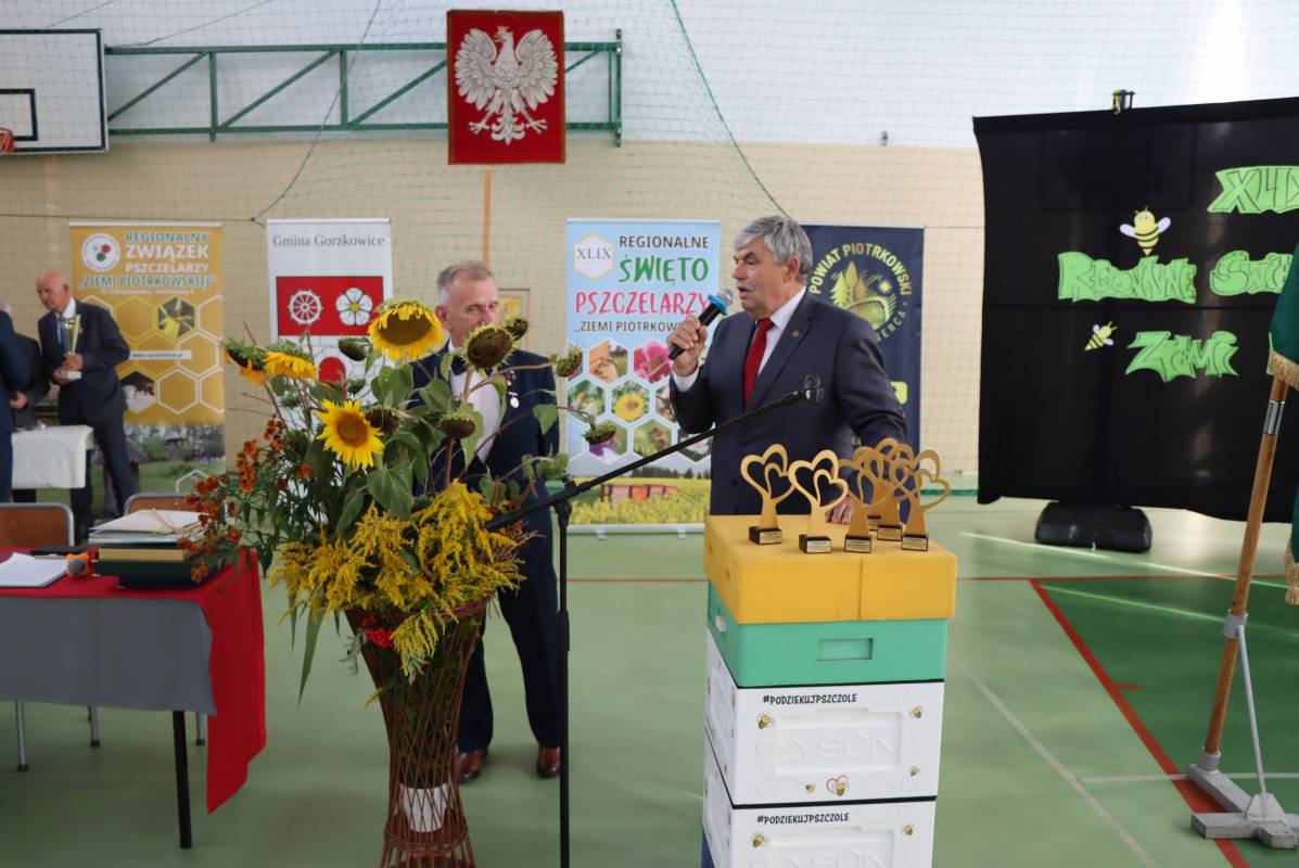 Wójt Gminy Gorzkowice, Alojzy Włodarczyk, podziękował seniorowi pszczelarstwa – panu Janowi Słabiakowi, wieloletniemu pszczelarzowi i nauczycielowi, cenionemu w lokalnym środowisku. Szczególne brawa i wyrazy uznania skierowano właśnie do niego. W wydarzeniu uczestniczył również Starosta Powiatu Piotrkowskiego, Piotr Łączny, który podkreślił znaczenie pszczelarstwa dla rozwoju regionu.