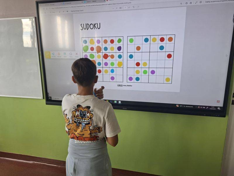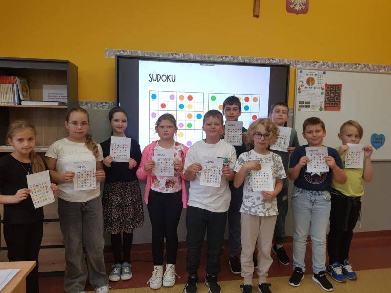 Pierwsze zadania uczniowie zrealizowali we wrześniu, łącząc naukę z obchodami dwóch nietypowych świąt – Międzynarodowego Dnia Kropki oraz Dnia Sudoku. Matematyczne aktywności pozwoliły im rozwijać kreatywność, logiczne myślenie i umiejętność współpracy w grupie.