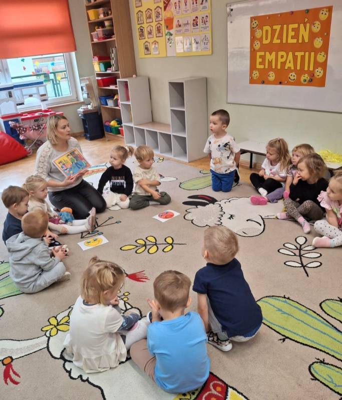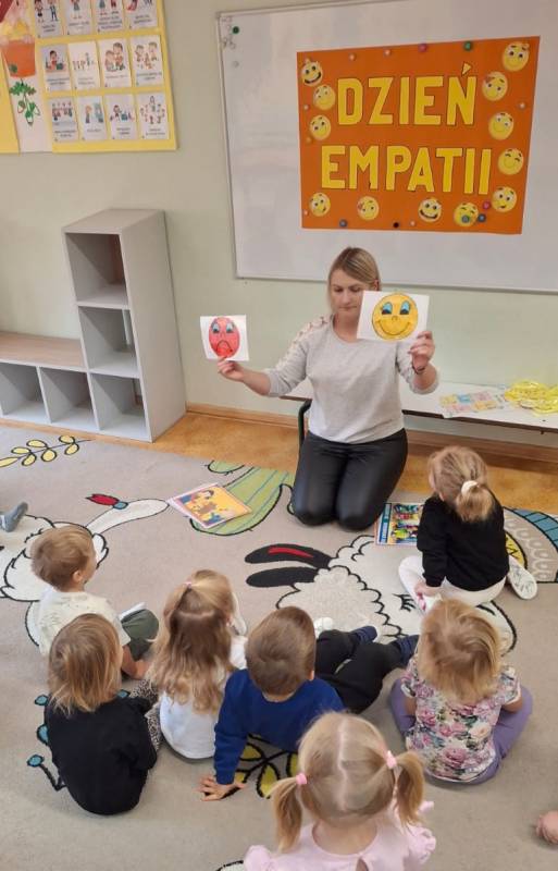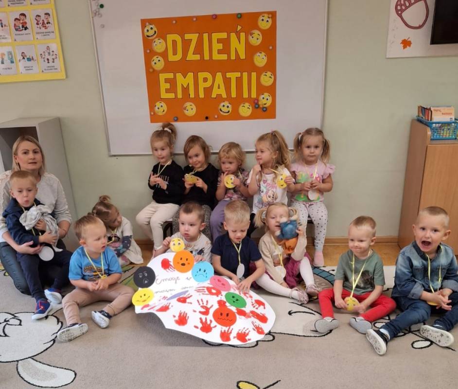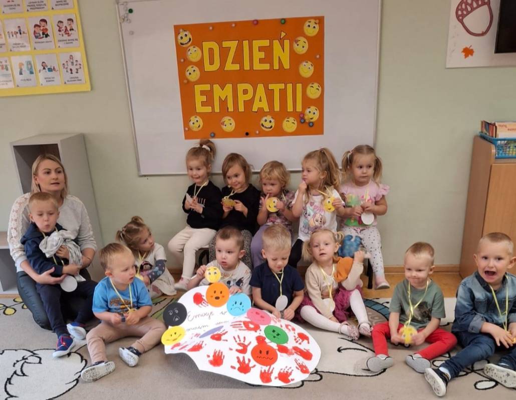 W ramach ogólnopolskiej akcji pod patronatem MEN „Tydzień Dobrych Relacji” w dniu dzisiejszym w naszej placówce obchodziliśmy Międzynarodowy Dzień Empatii. W tym dniu w szczególny sposób zwracamy uwagę na to czym jest empatia oraz na uczucia jakie okazujemy w stosunku do innych osób. Jednym z najważniejszych celów tego święta jest zwrócenie uwagi nie tylko na swoje emocje, ale także na emocje osób z naszego otoczenia. Przedszkolaki dowiedziały się co oznacza bycie osobą empatyczną czyli posiadającą umiejętność współczucia drugiej osobie oraz wczuwania się w jej emocje. Pamiętajmy również, że ta umiejętność nie jest oznaką słabości! W grupie maluchów odbyły się zabawy integrujące grupę, rozwijające empatię i postawę życzliwości wobec innych. Kulminacyjnym punktem dnia było stworzenie serca emocji. Niech ten dzień będzie idealną okazją do przypomnienia sobie, że empatia to potężna siła. Kroczmy przez życie szanując innych i bądźmy empatyczni nie tylko od święta.