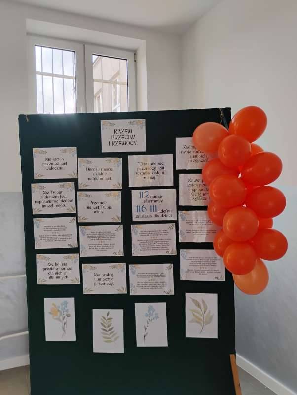 - informacje dla rodziców nt.: „Budujemy relacje”, „Jak mówić do dziecka, aby budować Realcje?”, „Apel Twojego Dziecka”, „Granice nie są karą”, „Pakt na rzecz przeciwdziałania przemocy rówieśniczej”,