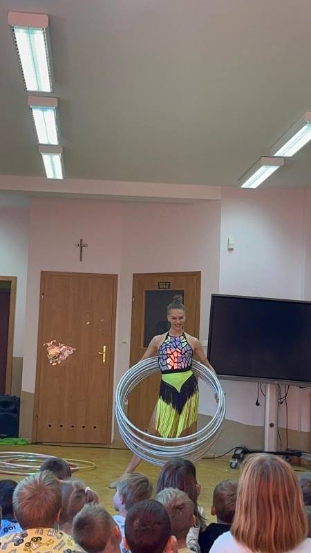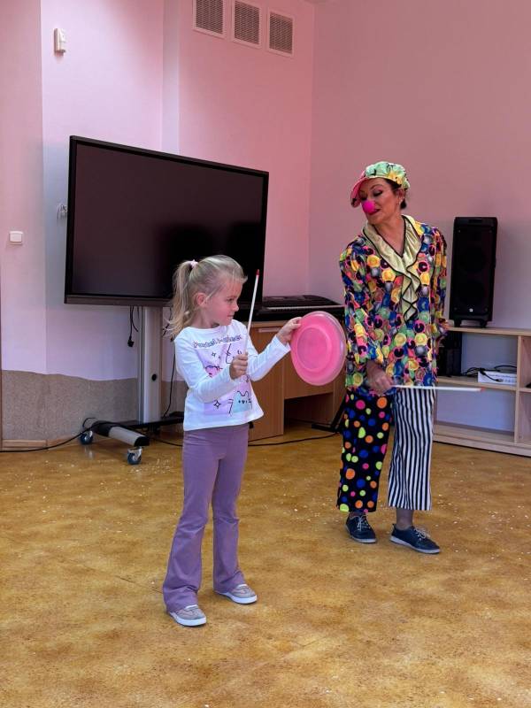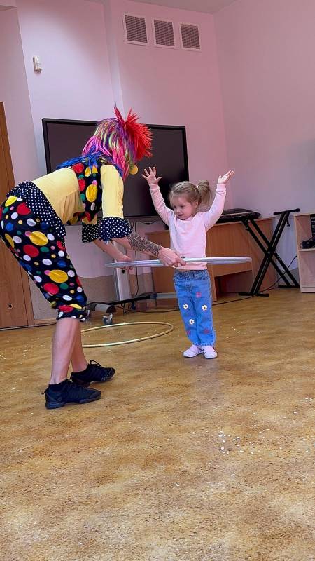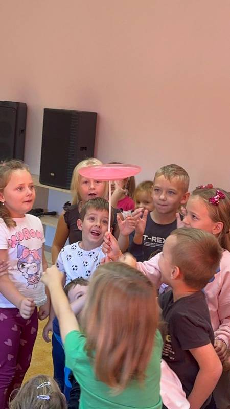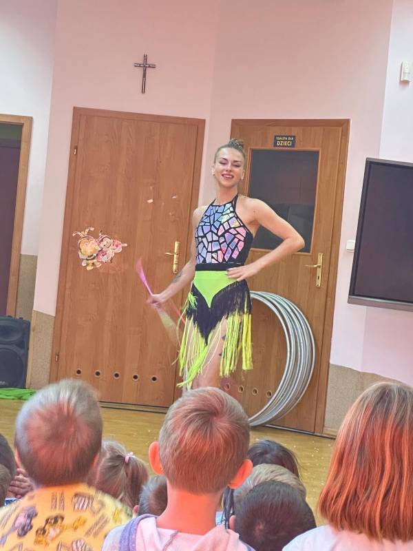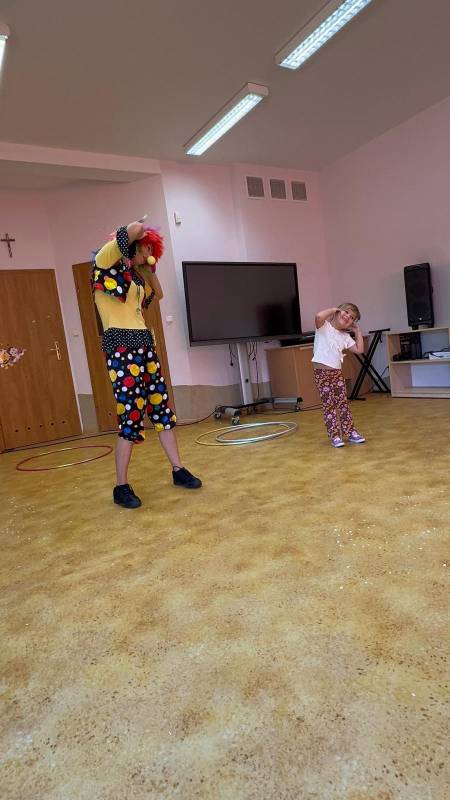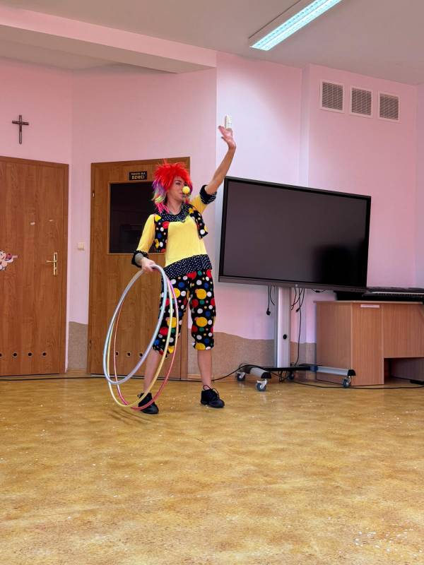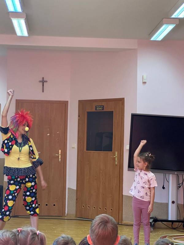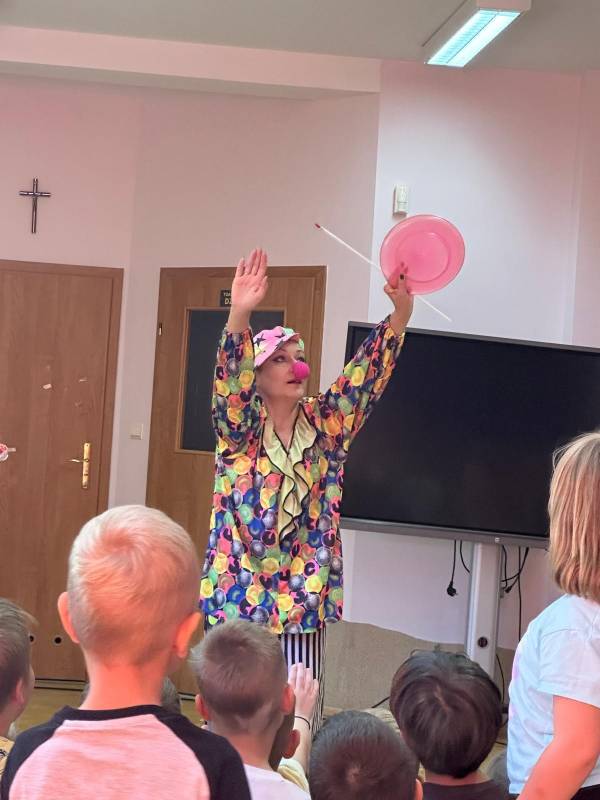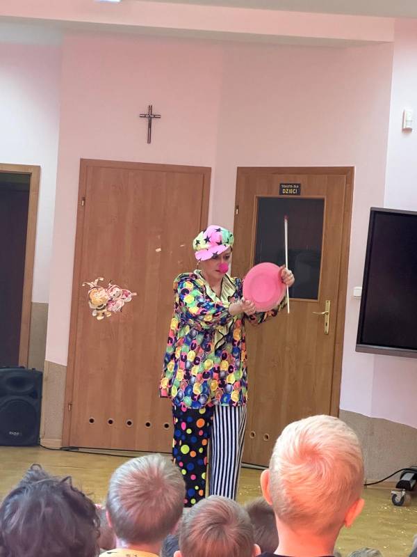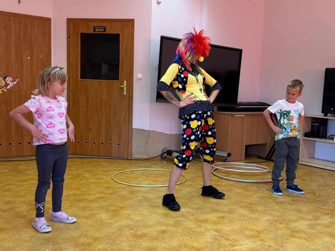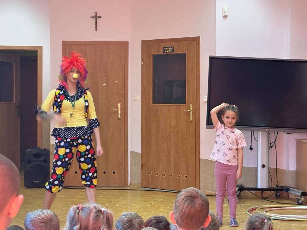 a także zabawę z klaunem, która dostarczyła dzieciom mnóstwo śmiechu. To był dzień pełen niesamowitych wrażeń i niezapomnianych występów. Wszystkie dzieci na zakończenie podziękowały akrobatom za niezwykłe widowisko gromkimi brawami.