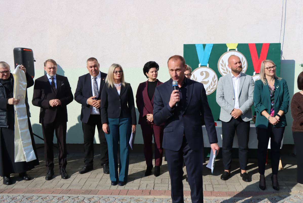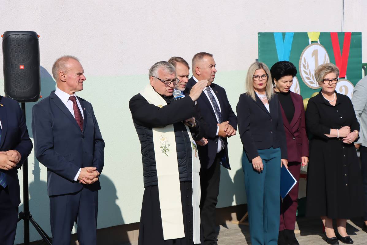 Uroczystość rozpoczęła się od przemówienia dyrektor szkoły, Magdaleny Treścińskiej–Niemczyk, która powitała gości również w imieniu wójta gminy. Podkreśliła, że nowy kompleks to nie tylko infrastruktura sportowa, ale także przestrzeń do nauki wytrwałości, zdrowej rywalizacji, współpracy i budowania lepszej przyszłości.