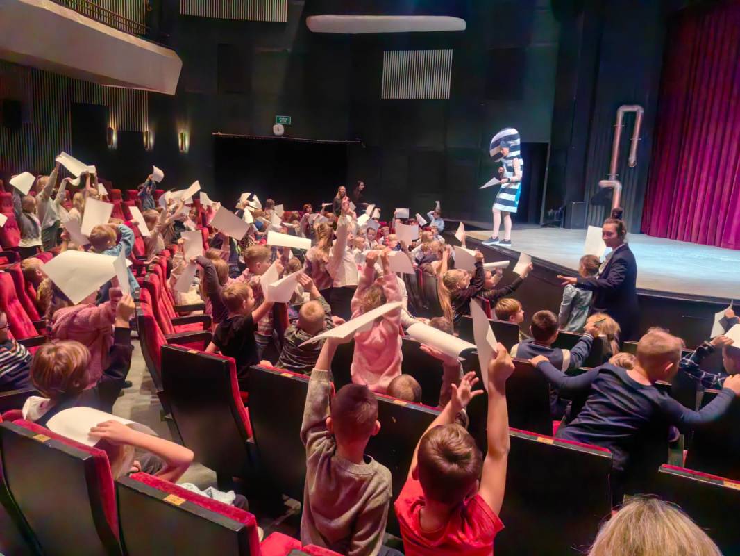 Uczniowie klas pierwszych 8 października wybrali się na wycieczkę do Częstochowy na spektakl teatralny pt.Niesamowite przygody skarpetek przygotowany przez Teatr Adama Mickiewicza. Celem wycieczki było między innymi rozbudzanie zainteresowania kulturą oraz wyzwalanie pozytywnych uczuć i emocji. Spektakl Niesamowite przygody skarpetek opowiada historię dziesięciu skarpetek, które postanawiają uciec od nudy i znaleźć własne przeznaczenie, odnajdując je w bajkowych krainach i podejmując niebezpieczne misje. Sztuka, bazująca na lekturze Justyny Bednarek, bawi, wzrusza i uczy o odwadze w spełnianiu marzeń, a jej barwna scenografia i interaktywne elementy tworzą niezapomniane wrażenia dla widzów w różnym wieku. Spektakl pokazuje, że warto walczyć z lękiem i dążyć do celu, aby spełnić swoje marzenia, nawet jeśli droga jest niepewna. Uczniowie podziwiali niezwykle efektowne kostiumy teatralne, które towarzyszyły postaciom. Spektakl ubarwiły wesołe piosenki i efekty świetlne. Dzieci poznały zasady prawidłowego zachowania się w Teatrze. Słodkie uśmiechy, radosne opowieści oraz gromkie brawa po spektaklu są z pewnością dowodem na to, że wycieczkę można uznać za udaną.