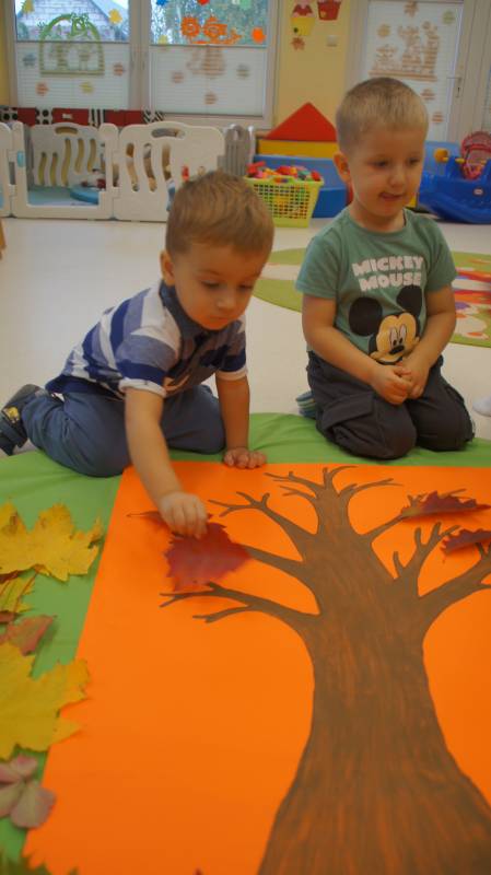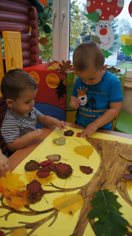 Z okazji Dnia Drzewa nasze maluszki z Klubiku wykonały piękną wspólną pracę plastyczną. Na dużym brystolu powstało kolorowe drzewo, które dzieci ozdobiły prawdziwymi liśćmi zebranymi podczas spacerów.