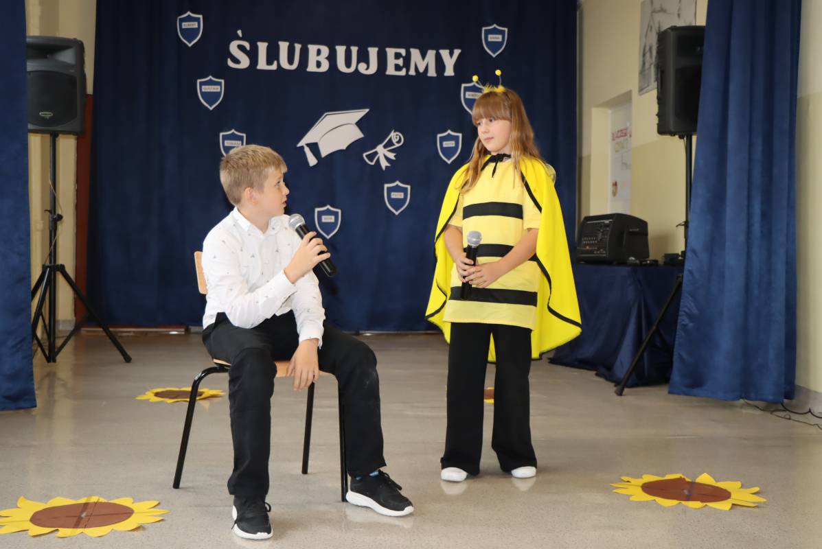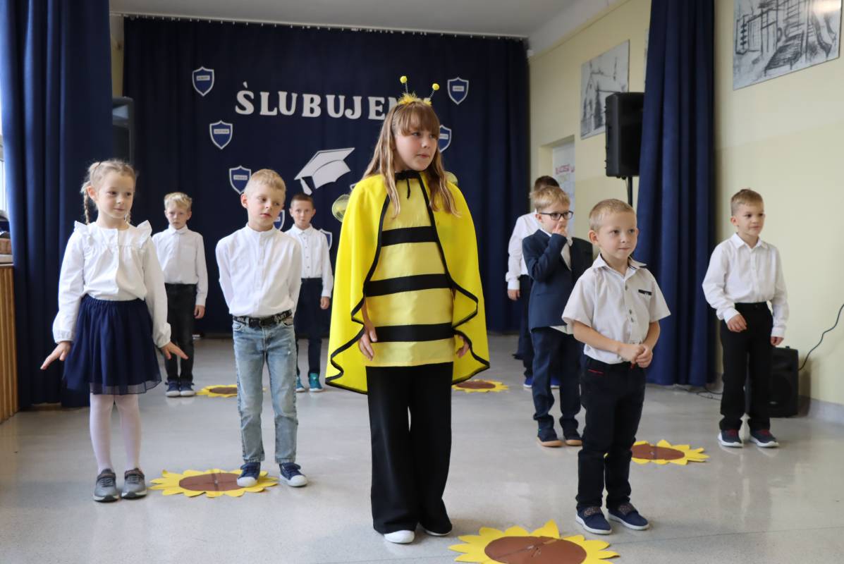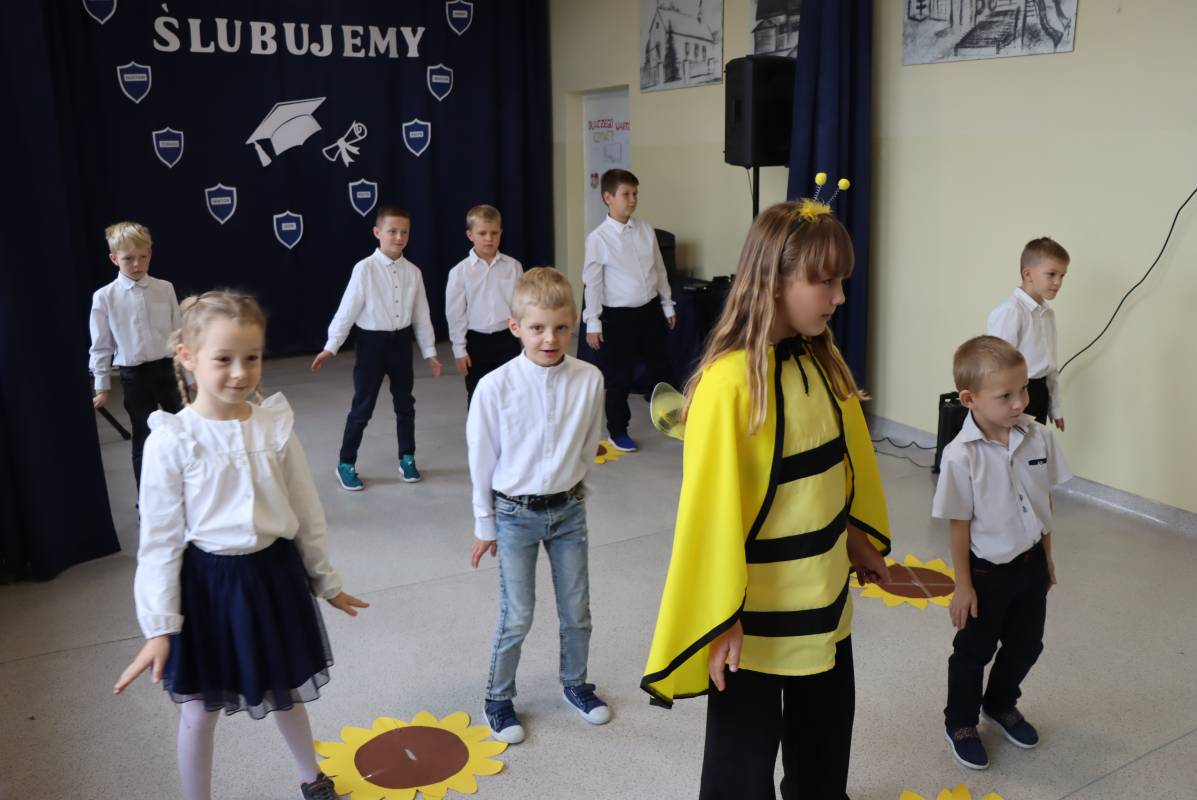 Zanim uczniowie zostali oficjalnie przyjęci do grona społeczności szkolnej, zaprezentowali swoje umiejętności zdobyte w pierwszych tygodniach nauki. Dzieci wystąpiły z programem artystycznym, który obejmował piosenki, recytacje wierszy, a także elementy tańca i inscenizacji.