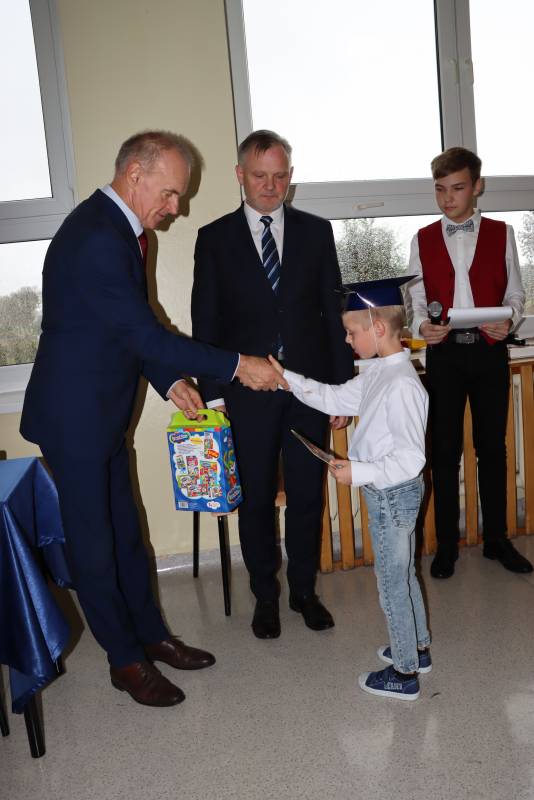 Na zakończenie uroczystości dzieci otrzymały pamiątkowe dyplomy, medale oraz upominki w postaci kolorowych kuferków plastycznych.