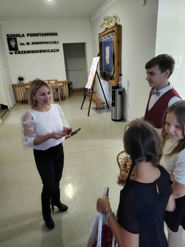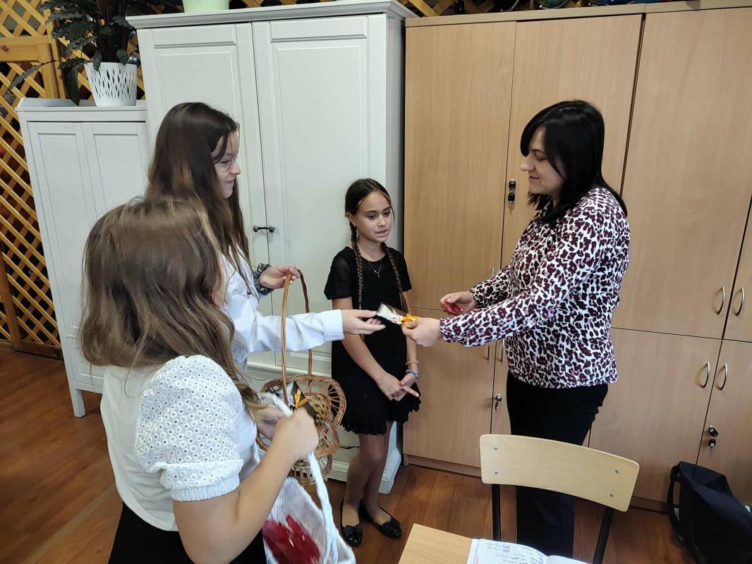 Z okazji zbliżającego się Dnia Edukacji Narodowej, Samorząd Uczniowski przygotował dla wszystkich nauczycieli i pracowników Szkoły Podstawowej w Krzemieniewicach miłą niespodziankę. Przedstawiciele SU wręczyli okolicznościowe kartki z życzeniami oraz symboliczne, różowe okulary. Mają one pozwolić widzieć świat zawsze w jasnych, optymistycznych barwach, przynosić codziennie nowe inspiracje i wspierać w wypełnianiu obowiązków zawodowych. Uśmiechy obdarowanych pozwoliły stwierdzić, że był to trafiony pomysł! Dziękujemy!!!Pamiętając, że 14 października jest świętem nie tylko nauczycieli i pracowników oświaty, ale także naszych uczniów, życzymy, aby i oni widzieli świat przez różowe okulary, byli pełni wiary, nadziei i zapału do spełniania swoich pasji, marzeń i szkolnych wyzwań.