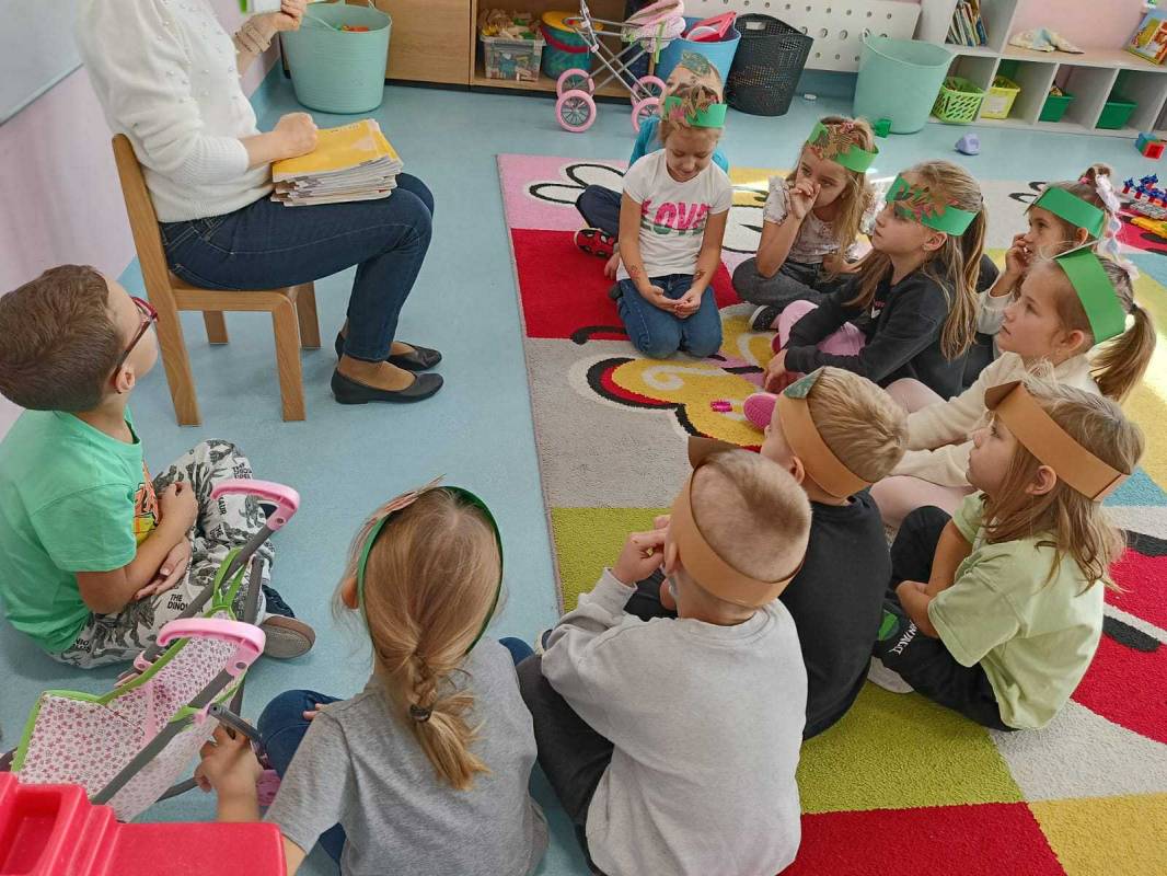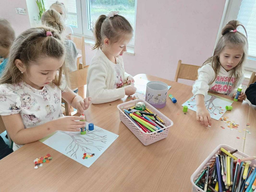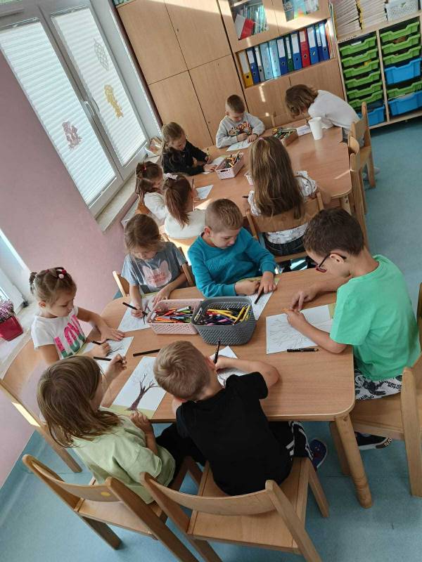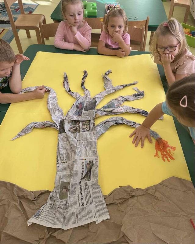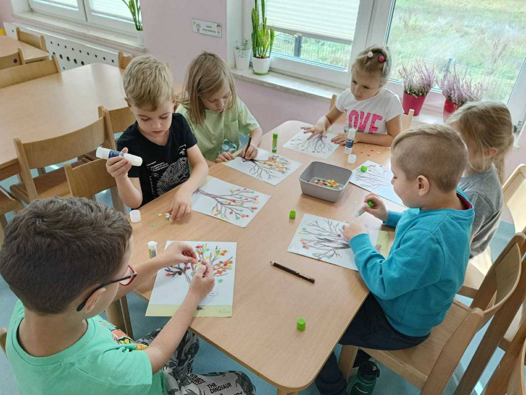 Tego dnia przedszkolaki wzięły udział w wielu aktywnościach, których głównym motywem było drzewo. Dzieci wykonały ciekawe prace plastyczne, słuchały opowiadania o drzewach, uczestniczyły w zajęciach i rozmowach na temat roli drzew w życiu człowieka i ich znaczenia dla czystości powietrza.
