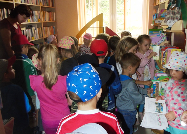 Dnia 12.06.2017r. dzieci z grup: Motylki Pszczółki i Stokrotki odwiedziły Gminną Bibliotekę Publiczną w Gorzkowicach. Rozbudzanie zainteresowań czytelniczych jest jednym z najważniejszych zadań edukacyjnych przedszkola. Współpraca z innymi instytucjami między innymi Gminną Biblioteką pomaga poszerzać realizację tego zadania. Przedszkolaki miały możliwość poznania pracy bibliotekarza oraz zwiedzenia pomieszczeń biblioteki. Zapoznały się z regulaminem i zasadami zachowania się w niej. Dzieci podczas wizyty dowiedziały się jak można stać się czytelnikiem, obejrzały księgozbiory głównie literaturę dla najmłodszych. Przedszkolaki z ogromnym zainteresowaniem oglądały bogato ilustrowane książki, opowiadały o swoich ulubionych i sposobach dbania o nie. Wiek przedszkolny jest szczególnie właściwy dla budzenia motywacji czytelniczych i przygotowanie dziecka, aby w przyszłości było czytelnikiem dojrzałym, rozwijającym zainteresowania literackie. Dzieci wybrały sobie książki i obiecały, że wraz z rodzicami przyjdą je wypożyczyć. Dodatkową atrakcją było zwiedzenie położonego w pobliżu biblioteki Ogrodu edukacyjno-przyrodniczego, którym opiekuje się Stowarzyszenie Walory Natury Gorzkowic i Okolic. W drodze powrotnej do przedszkola zatrzymaliśmy się na placu zabaw przy Kompleksie Rekreacyjno - Sportowym "Kopiec".