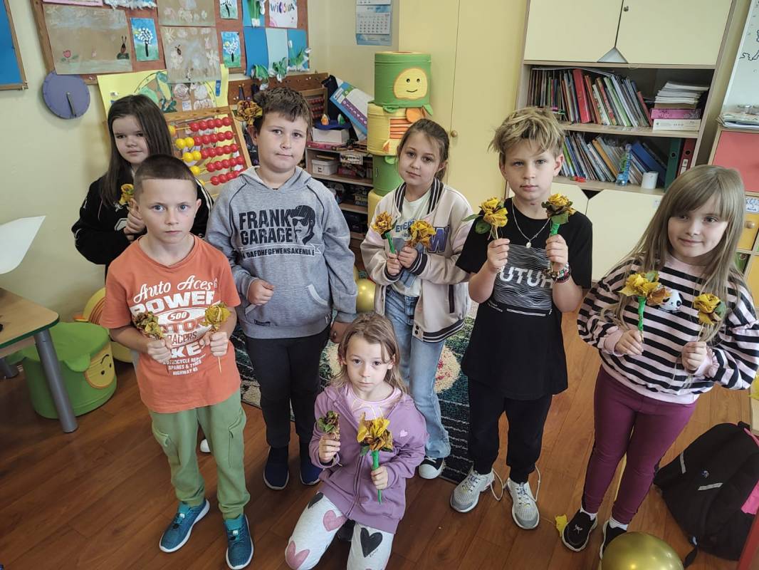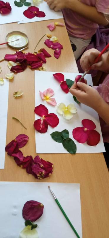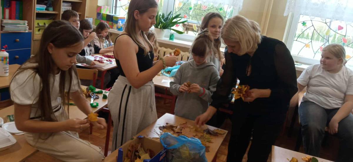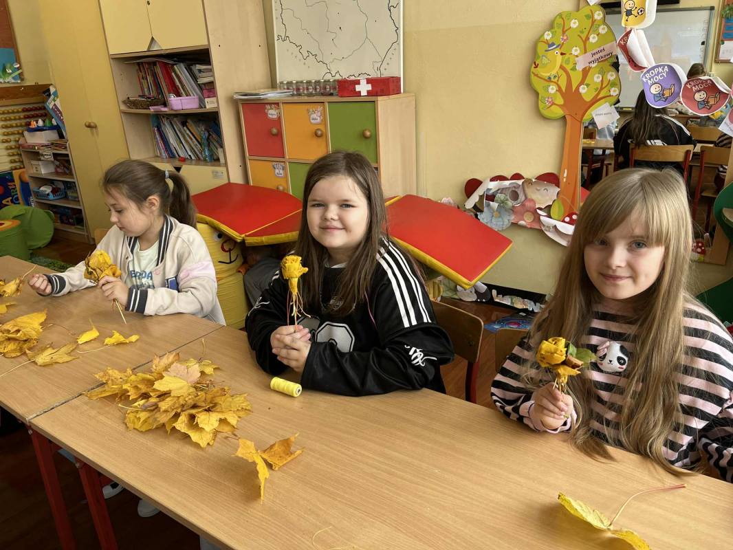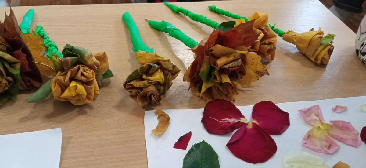 Wychowankowie świetlicy Szkoły Podstawowej w Krzemieniewicach od wielu dni z zainteresowaniem obserwują zmiany zachodzące w przyrodzie, które nieuchronnie niesie coraz odważniej poczynająca sobie jesień. Te uważne spostrzeżenia stały się inspiracją dla dziecięcej wyobraźni, owocując pięknymi i barwnymi pracami plastycznymi. Uczniowie, pod czujnym okiem wychowawców, przygotowali róże z jesiennych liści, tworząc pełne kolorów bukiety.