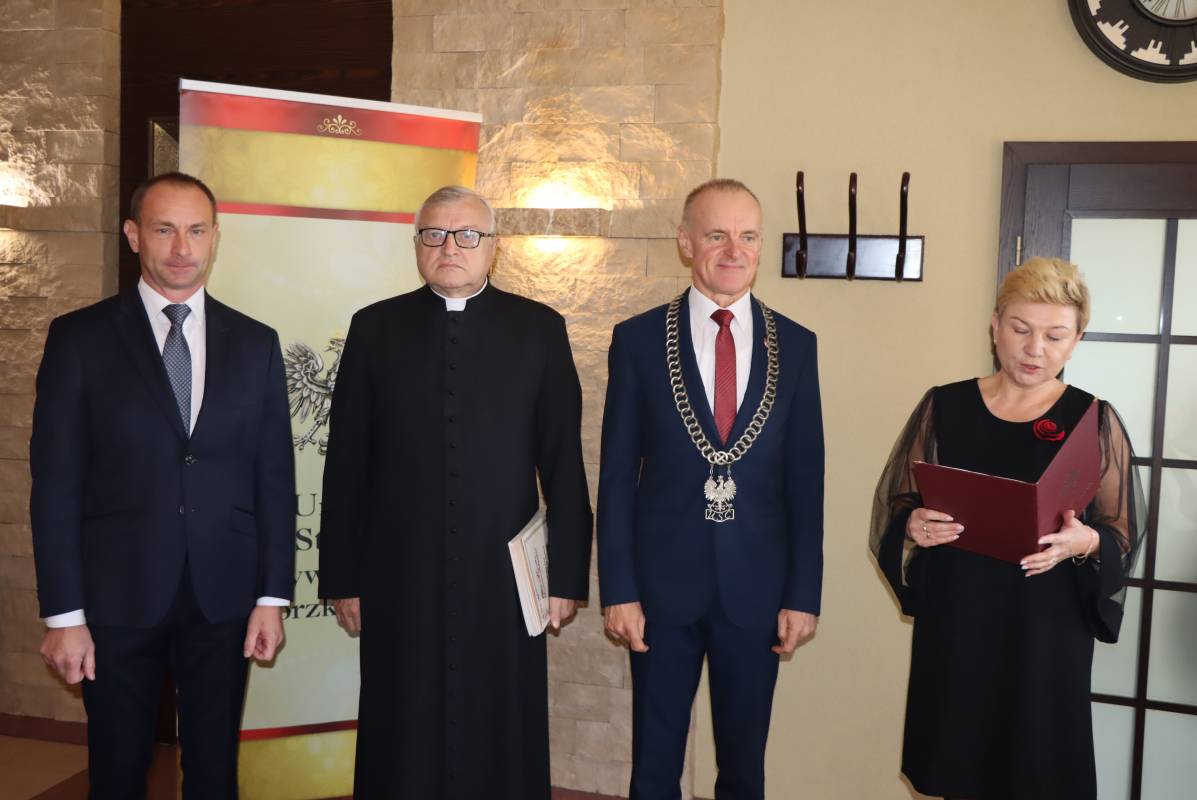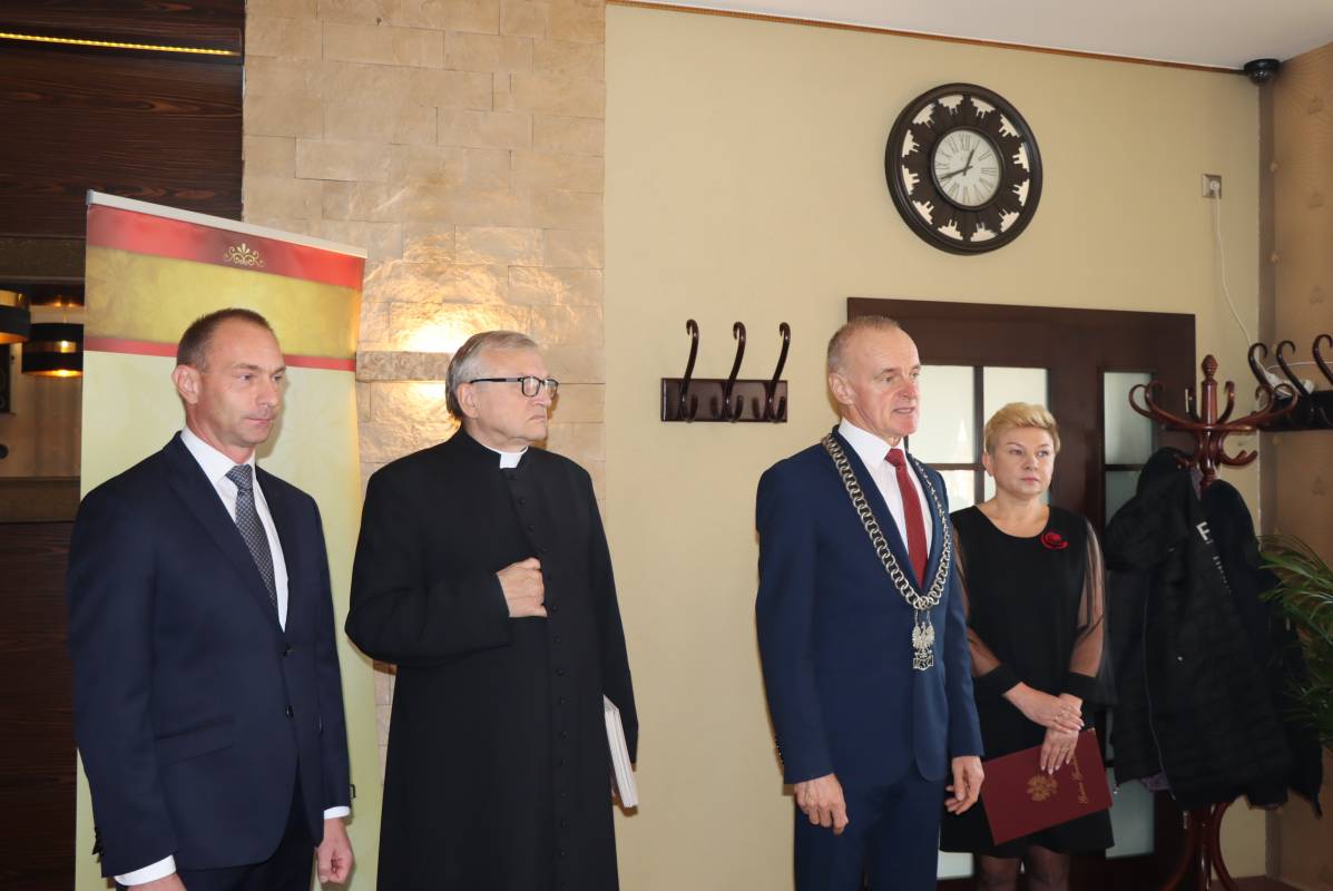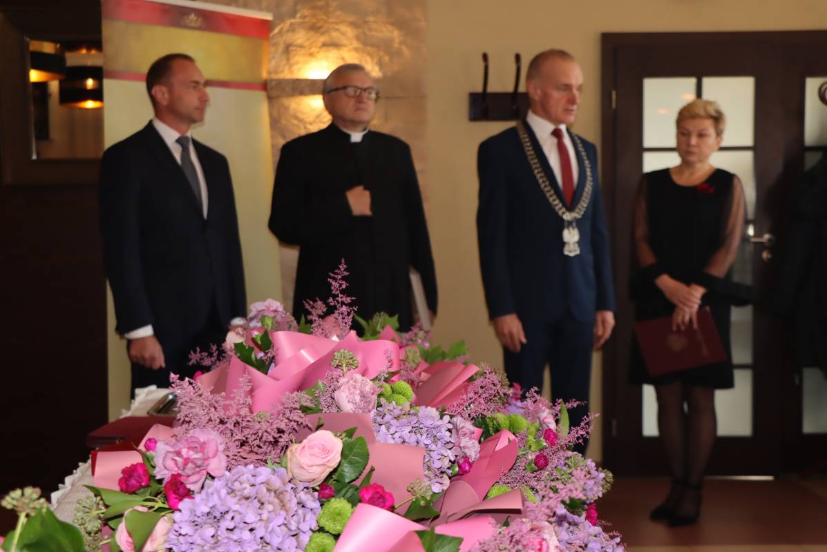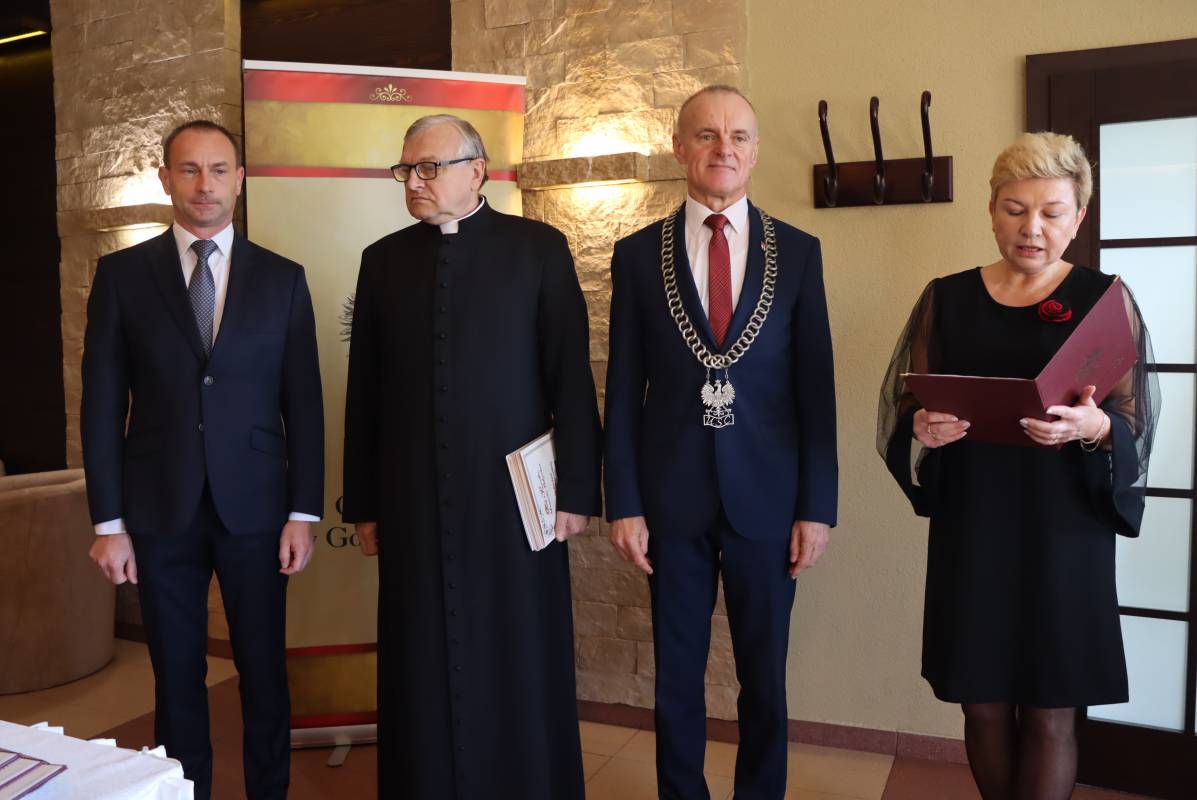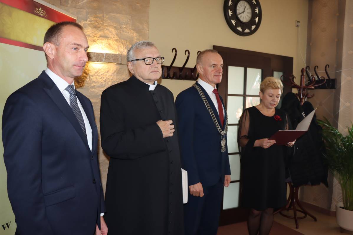 Uroczystość rozpoczęła pani Żaneta Kaczmarowicz, Kierownik Urzędu Stanu Cywilnego w Gorzkowicach, serdecznie witając Dostojnych Jubilatów oraz zaproszonych gości – Wójta Gminy Gorzkowice Alojzego Włodarczyka, Przewodniczącego Rady Gminy Marka Siewierskiego oraz księdza proboszcza Ryszarda Bryłkę.
