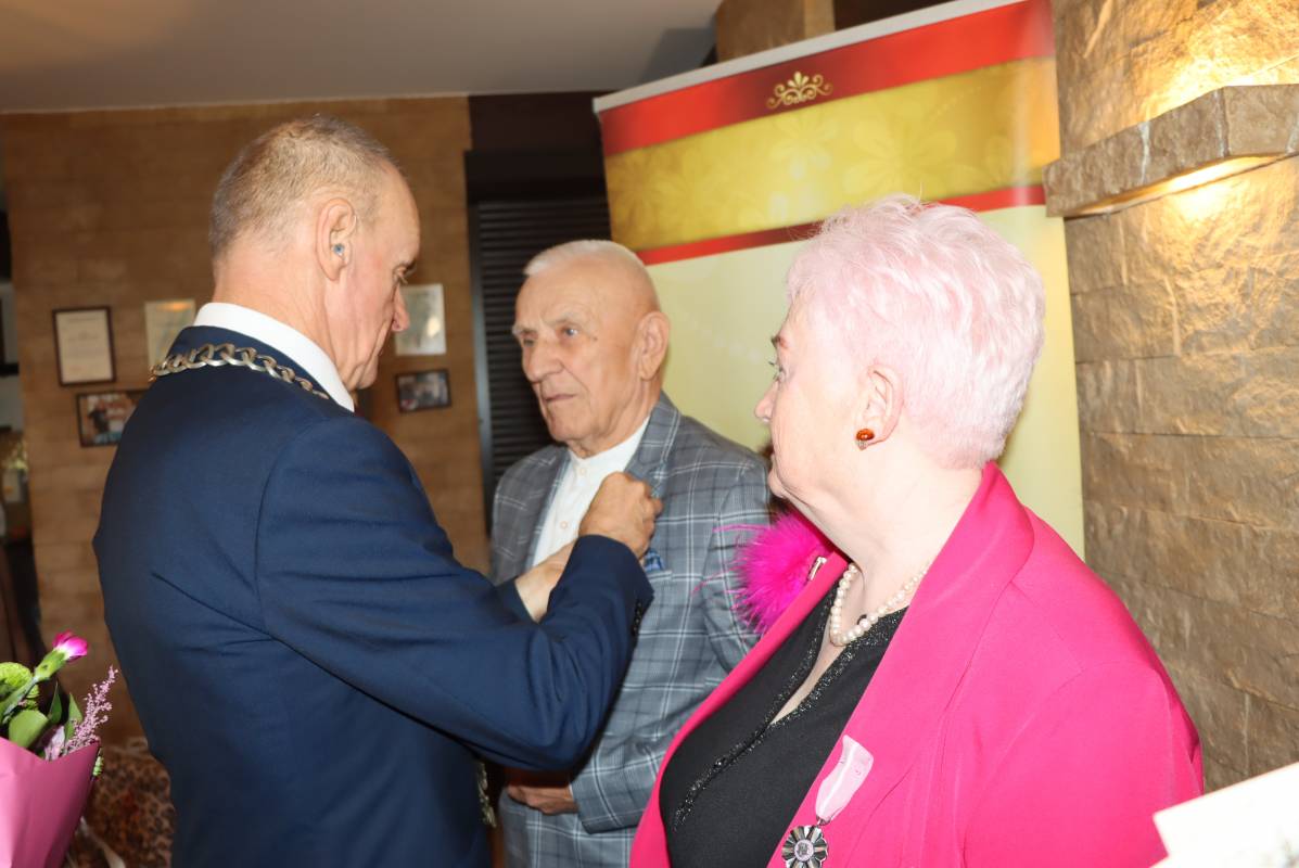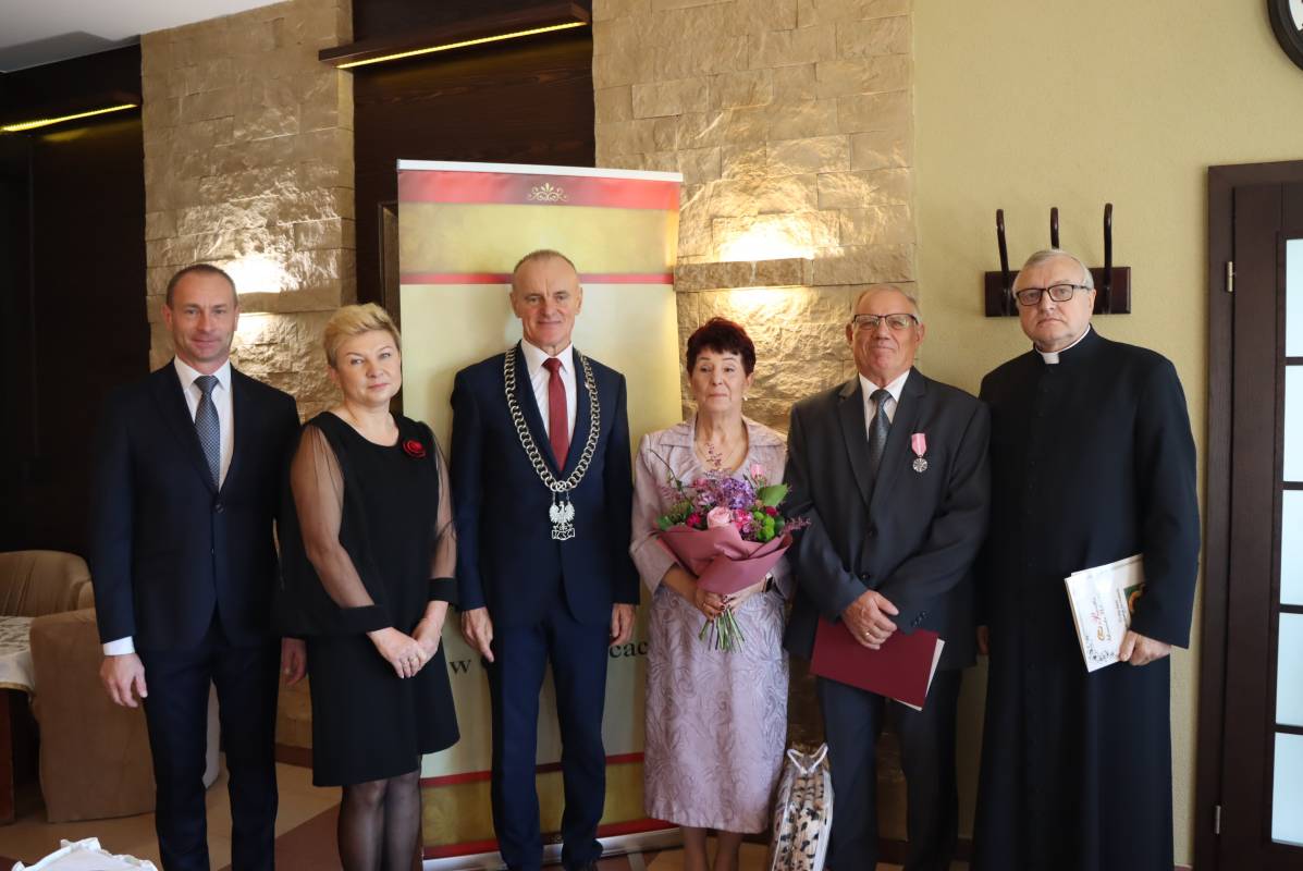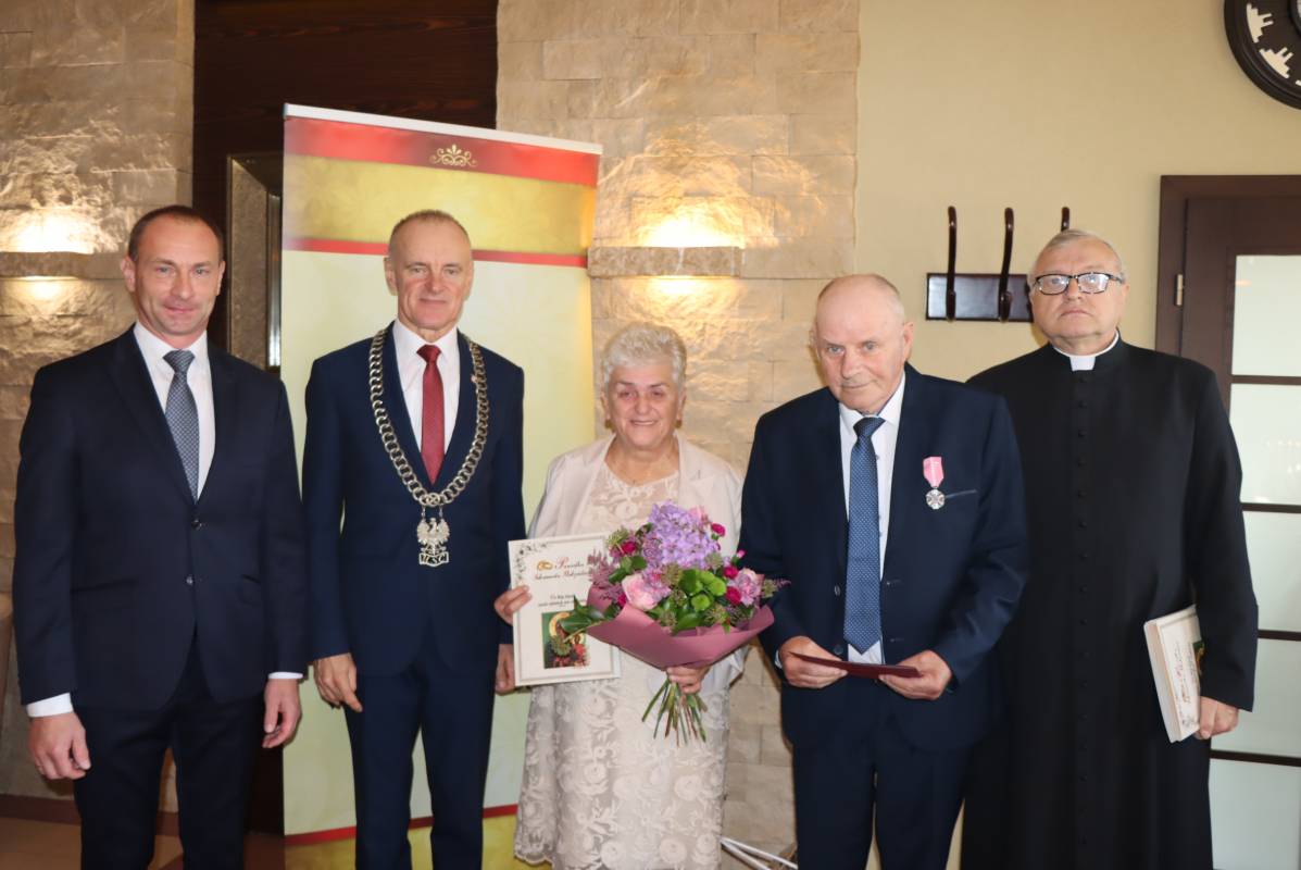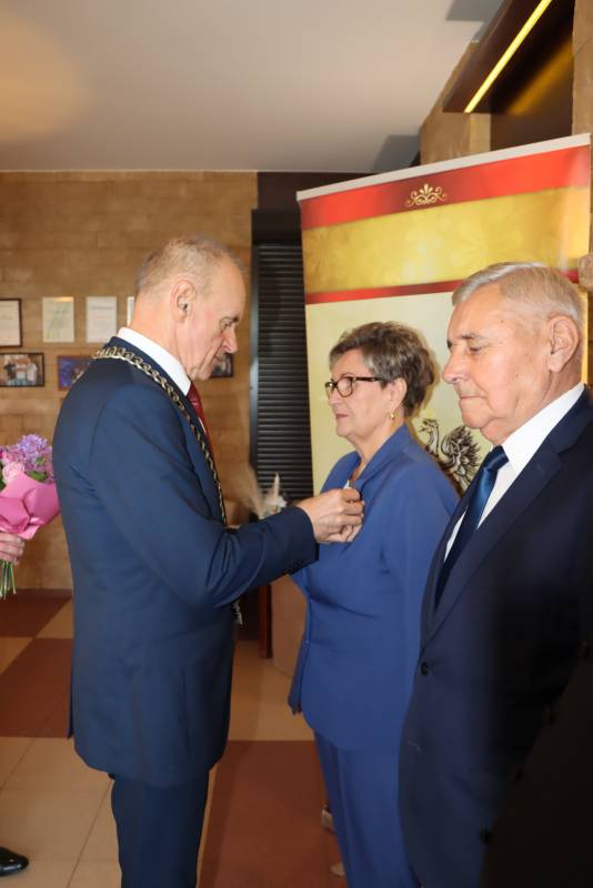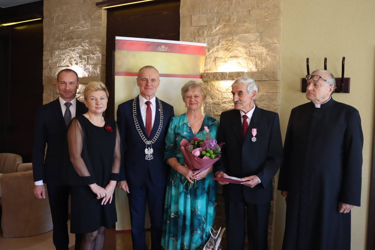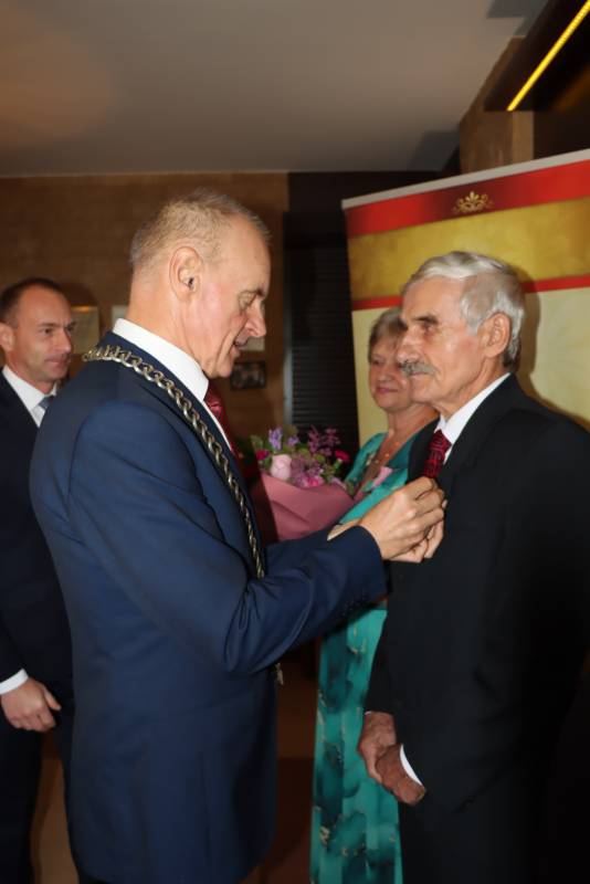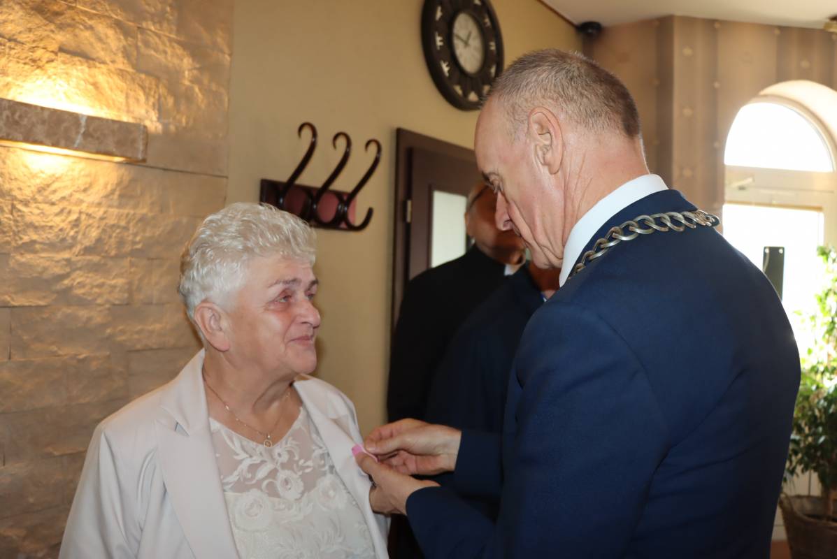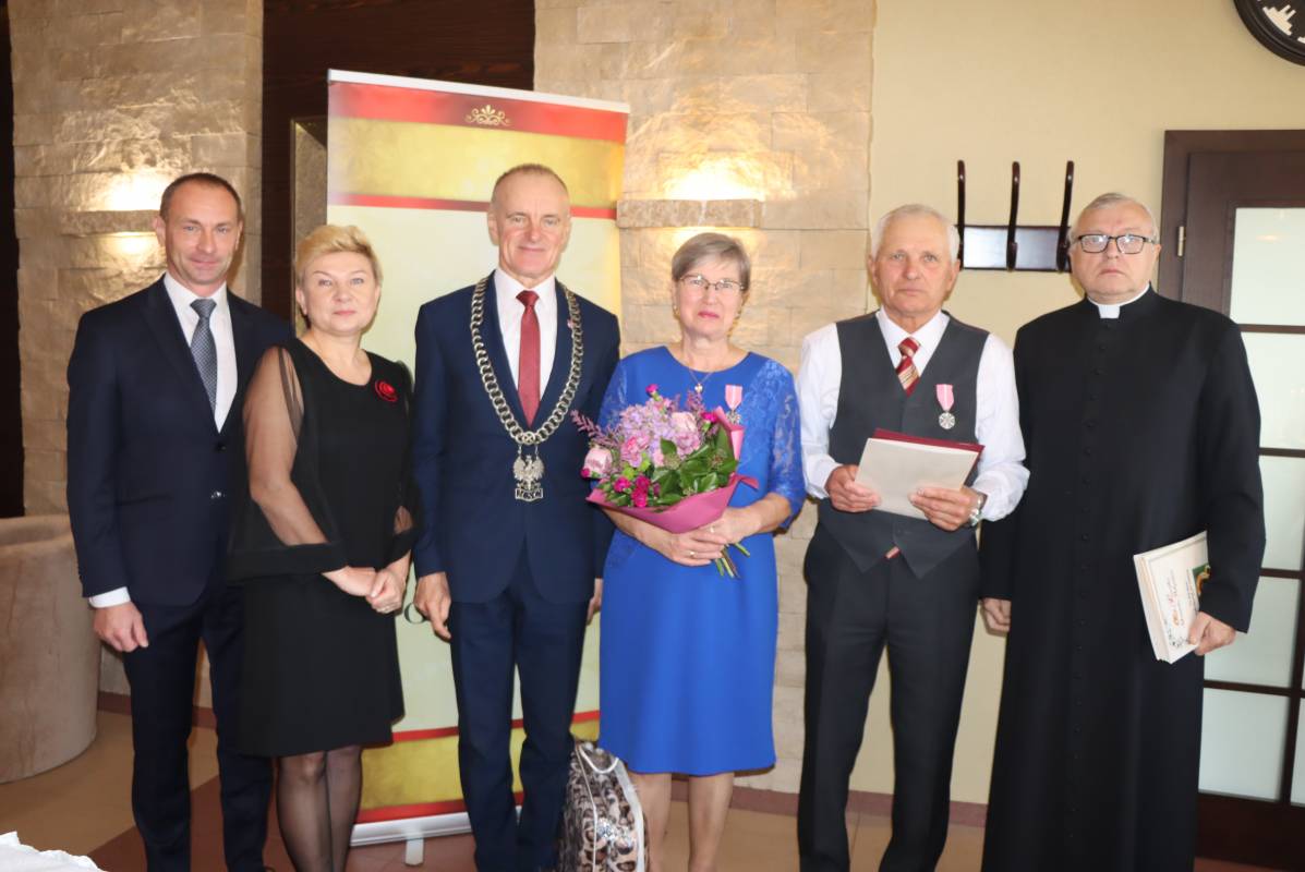 Podczas wydarzenia pan Wójt wręczył Jubilatom Medale za Długoletnie Pożycie Małżeńskie, przyznane przez Prezydenta Rzeczypospolitej Polskiej. Odznaczenia te stanowią wyraz uznania dla trwałości związków małżeńskich oraz wierności wartościom rodzinnym.