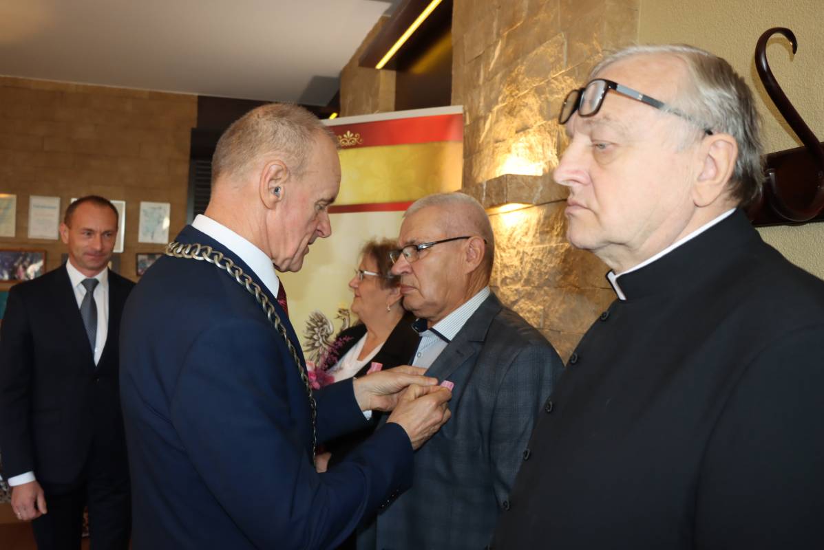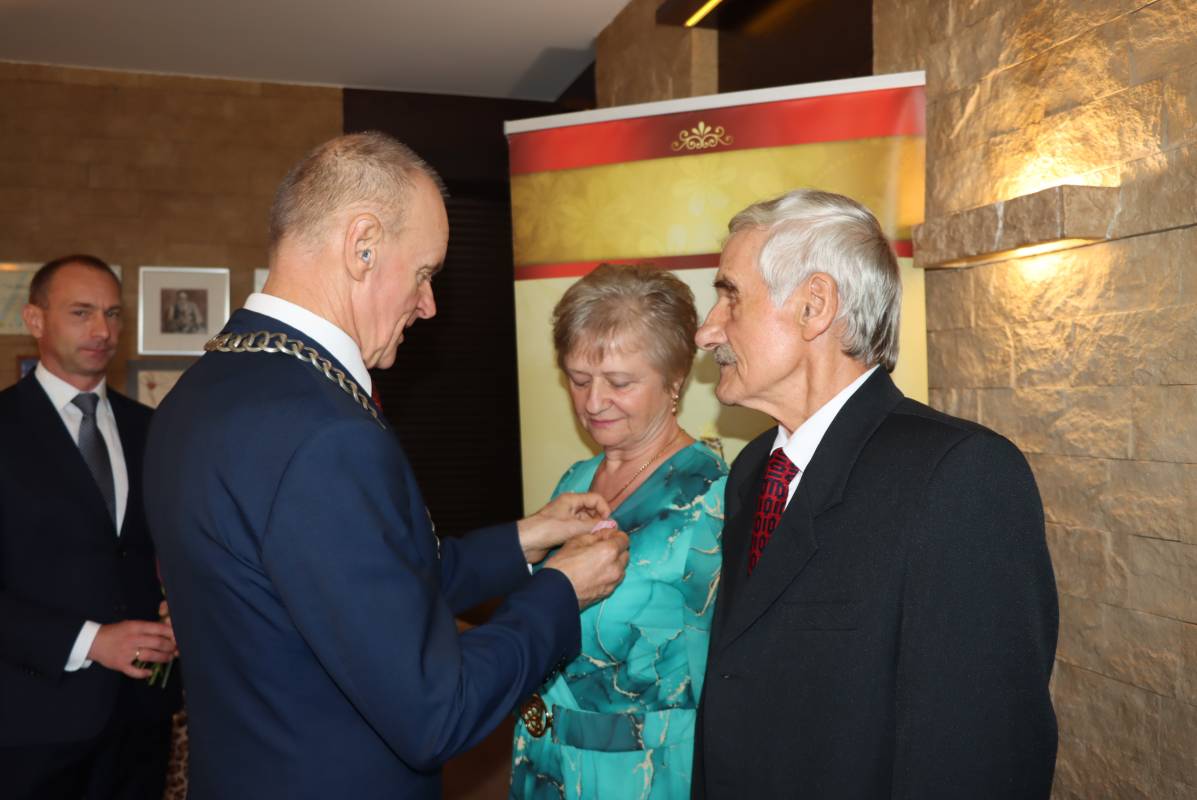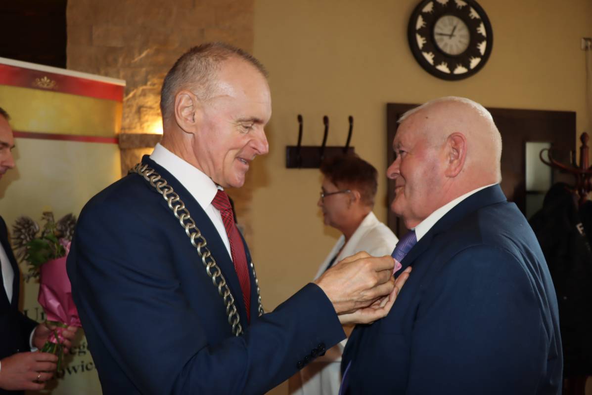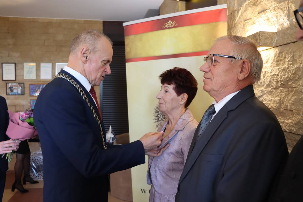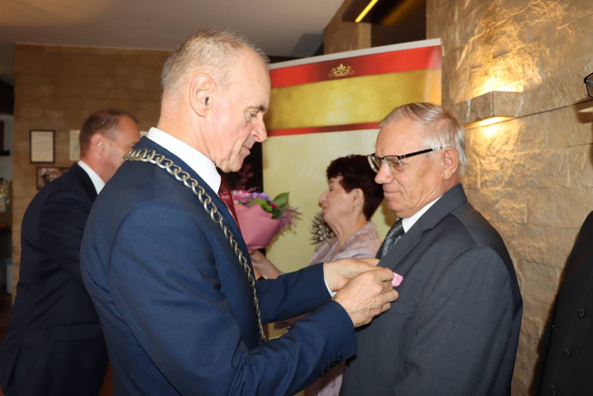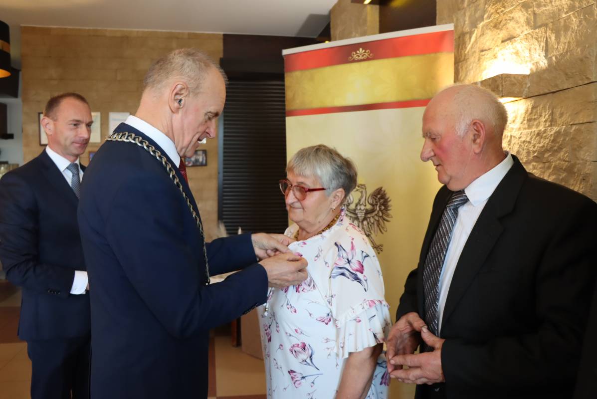 Podczas wydarzenia pan Wójt wręczył Jubilatom Medale za Długoletnie Pożycie Małżeńskie, przyznane przez Prezydenta Rzeczypospolitej Polskiej. Odznaczenia te stanowią wyraz uznania dla trwałości związków małżeńskich oraz wierności wartościom rodzinnym.