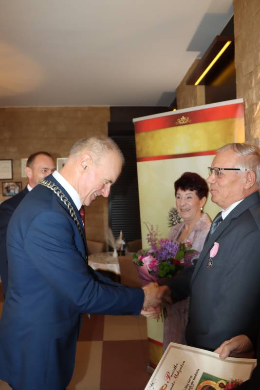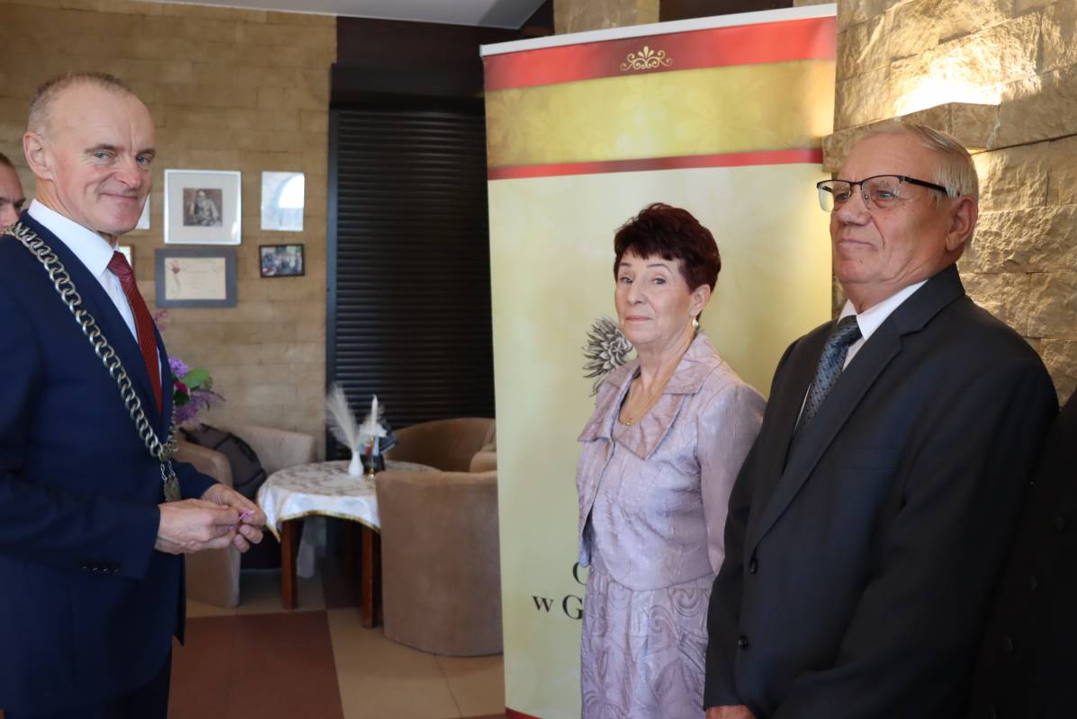 Wójt złożył Jubilatom najserdeczniejsze życzenia zdrowia, szczęścia, radości oraz wielu kolejnych lat wspólnego życia w miłości i wzajemnym zrozumieniu. Podkreślił również, że ich małżeństwa są pięknym przykładem dla młodszych pokoleń.