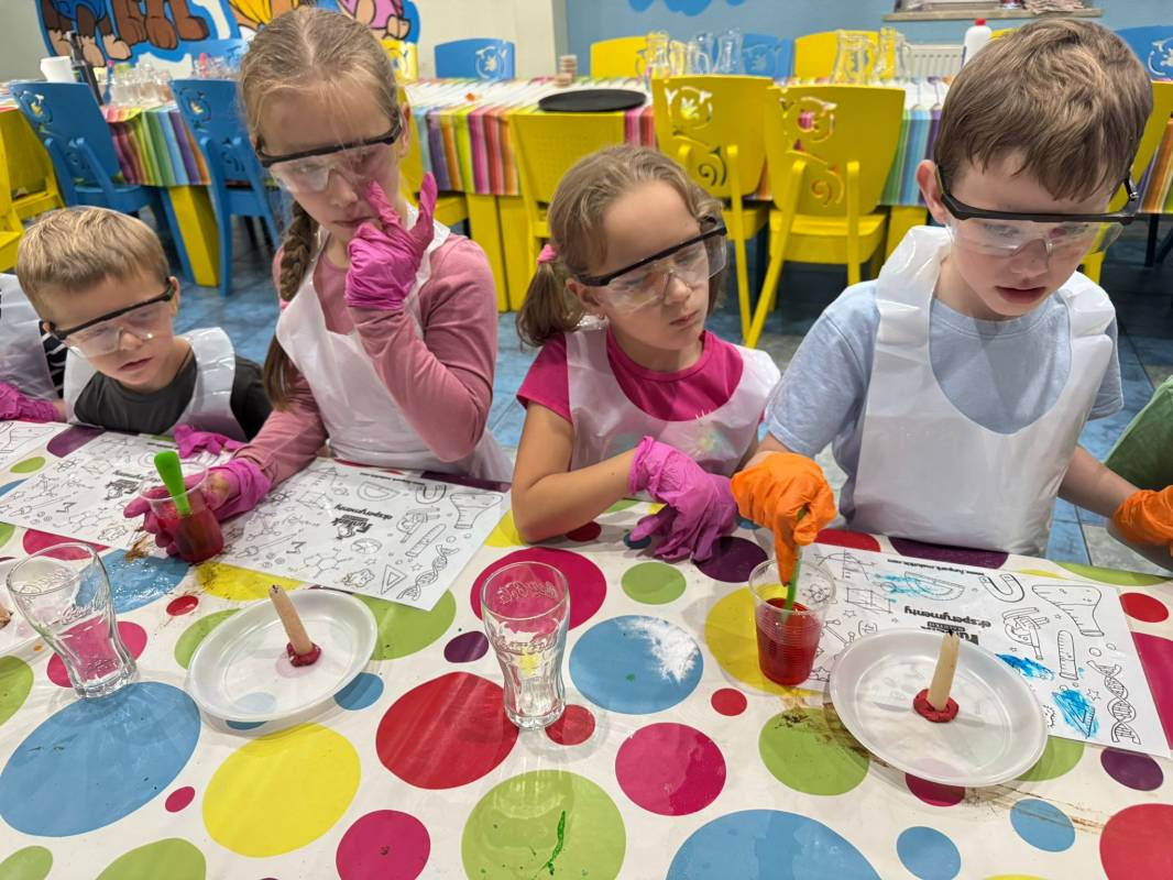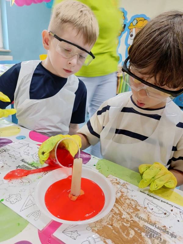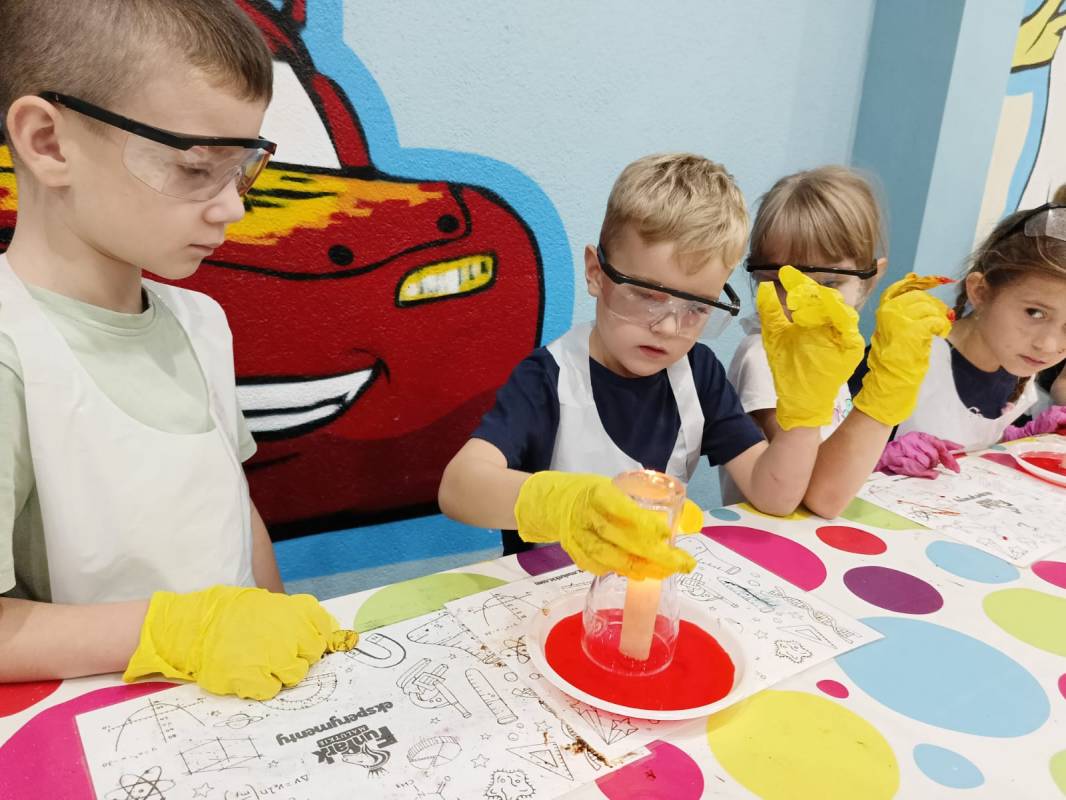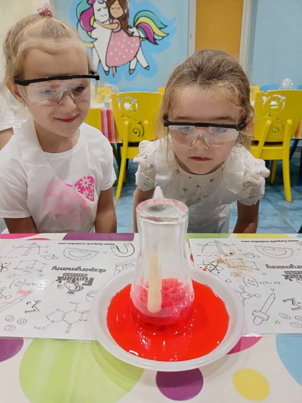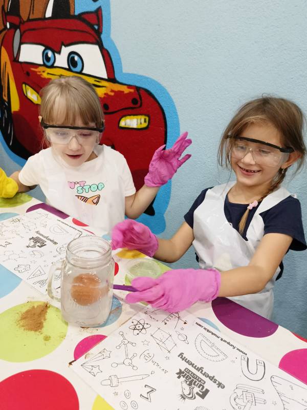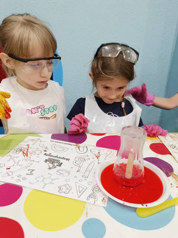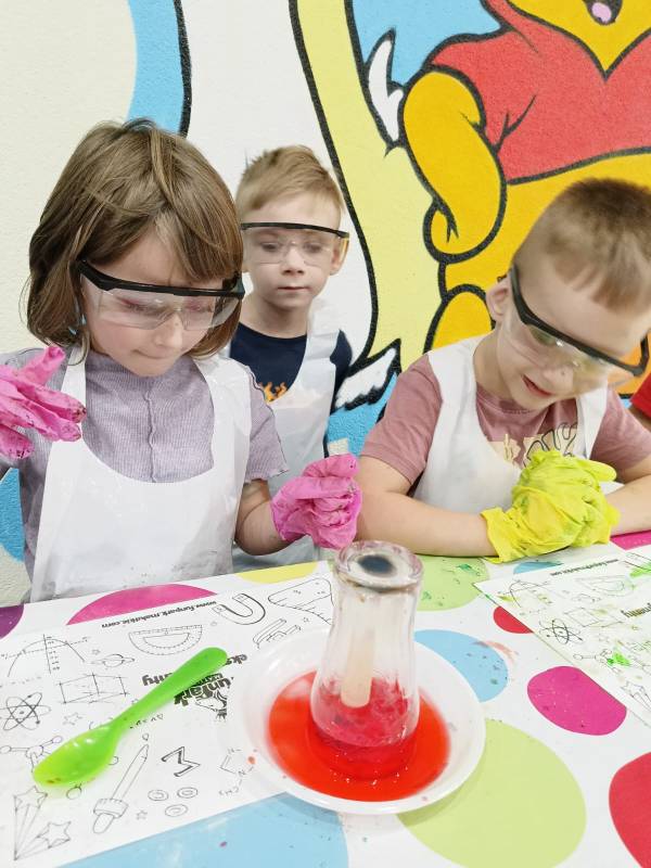 W trakcie zajęć dowiedziały się o napięciu powierzchniowym wody, różnych gęstościach cieczy, reakcji kwasu z sodą, roli tlenu podczas spalania. Udział w warsztatach przyczynił się do rozwijania ciekawości poznawczej, rozbudzania zainteresowań naukami przyrodniczymi oraz wspierania wszechstronnego rozwoju dzieci poprzez zabawę i wspólne odkrywanie. Przedszkolaki uczyły się również: obserwacji, logicznego myślenia, wnioskowania oraz rozwiązywania problemów. Wycieczka ta z pewnością należała do udanych, sprawiła dzieciom wiele radości i dostarczyła ogromną porcję ruchu, wiedzy i nowych doświadczeń.