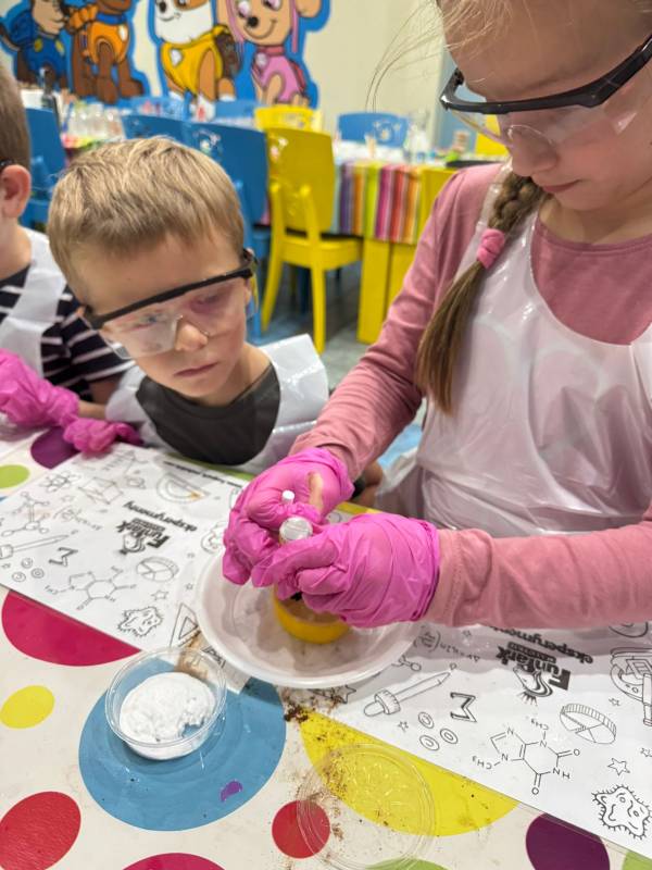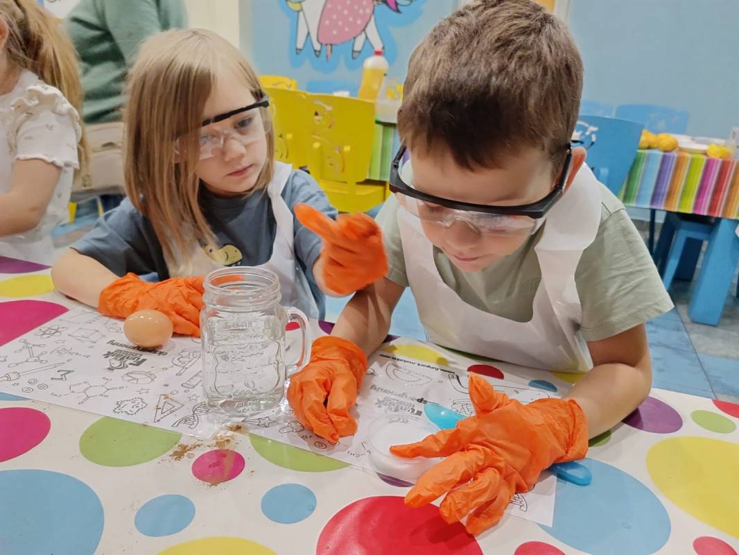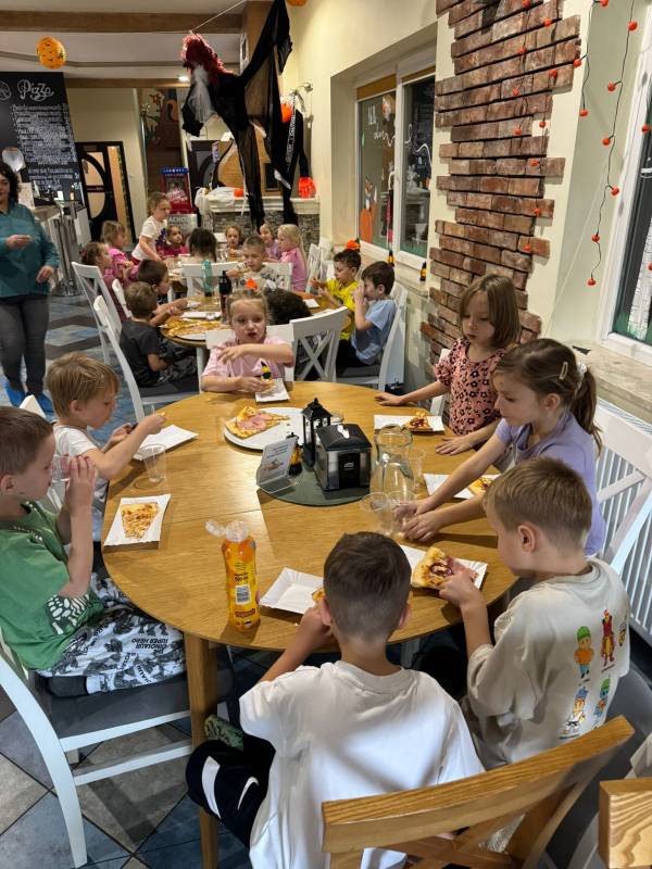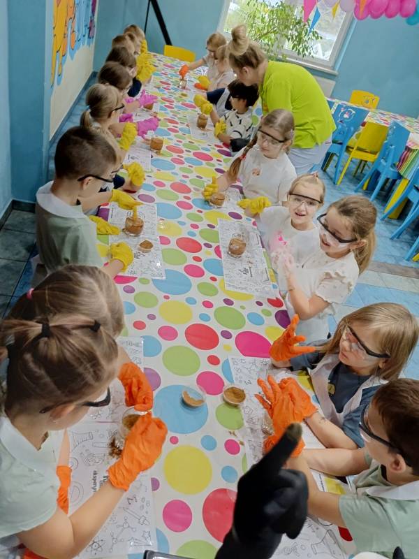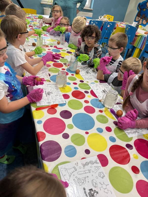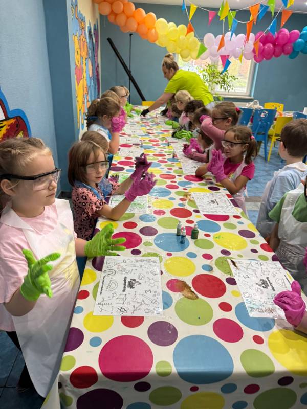 24 października 2025r. przedszkolaki z grup Pszczółki i Słoneczka wybrały się kolejny raz na wycieczkę do Ośrodka wypoczynkowego Malutkie Resort. Na miejscu czekało na dzieci wiele atrakcji. Pierwsza, to oczywiście zabawa w Fun Parku, gdzie były m.in. trampoliny, zjeżdżalnie, labirynt - dżungla, dmuchańce, tor przeszkód Ninja, a także ścianka wspinaczkowa. Pobyt w sali zabaw, to doskonała okazja do rozwoju sprawności fizycznej, zręczności, koordynacji ruchowej, orientacji w przestrzeni oraz integracji grupy poprzez wspólną zabawę. Kolejną atrakcją, na którą czekaliśmy z ogromną ciekawością, były - warsztaty eksperymenty. Mali naukowcy pod czujnym okiem animatorów przeprowadzali fascynujące eksperymenty z fizyki i chemii. Dzieci zabezpieczone w okulary, fartuszki i rękawiczki przystąpiły do cyklu doświadczeń takich, jak: pływające jajko, suchy palec w wodzie, kolorowy pieniący się wulkan, gasnąca pod przykryciem świeczka, czy rafa koralowa.