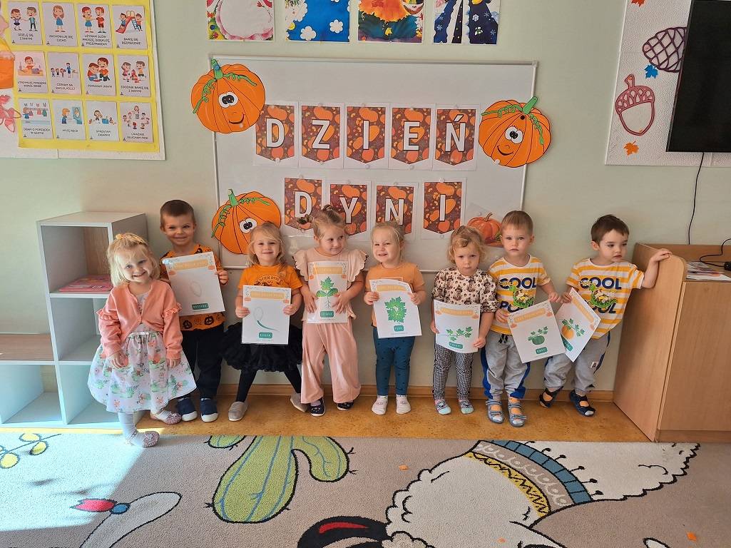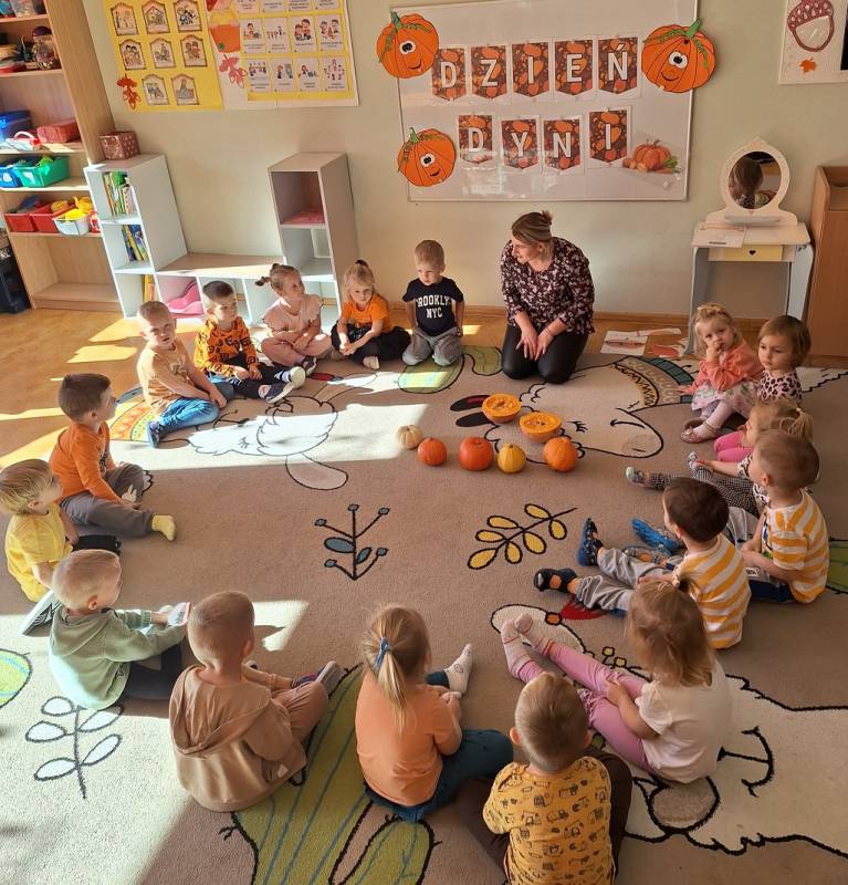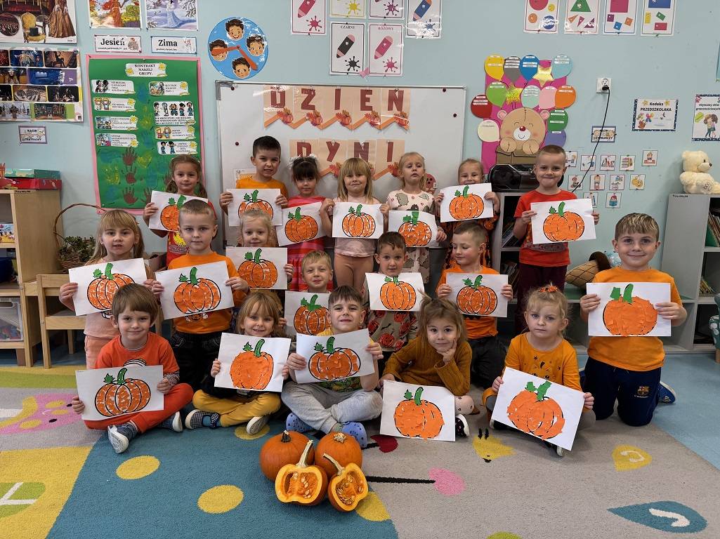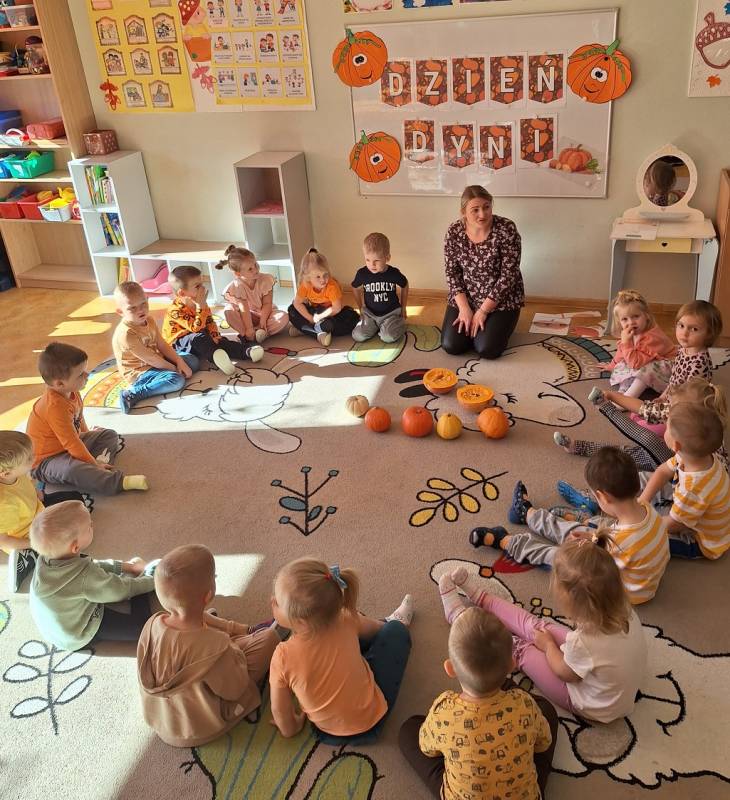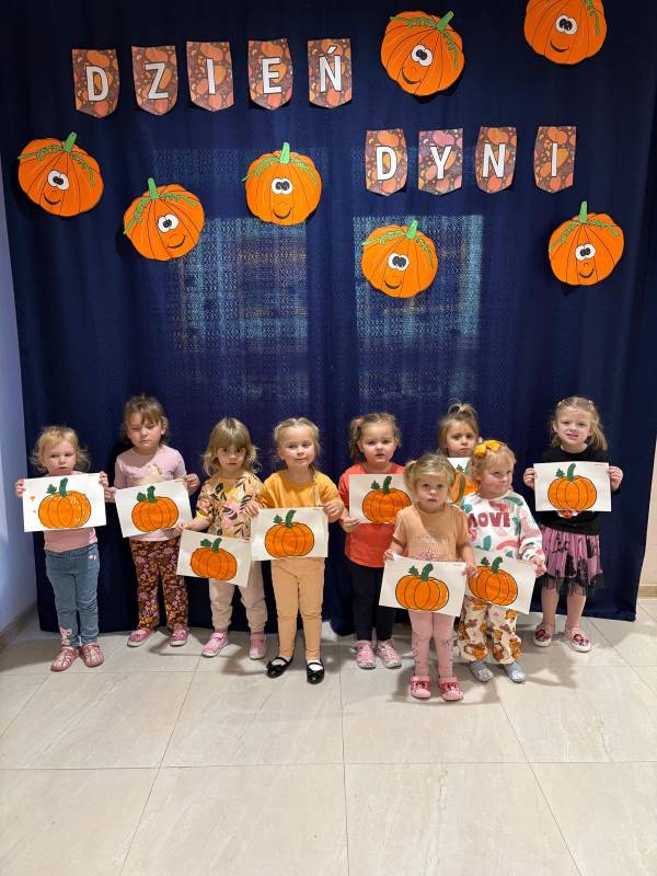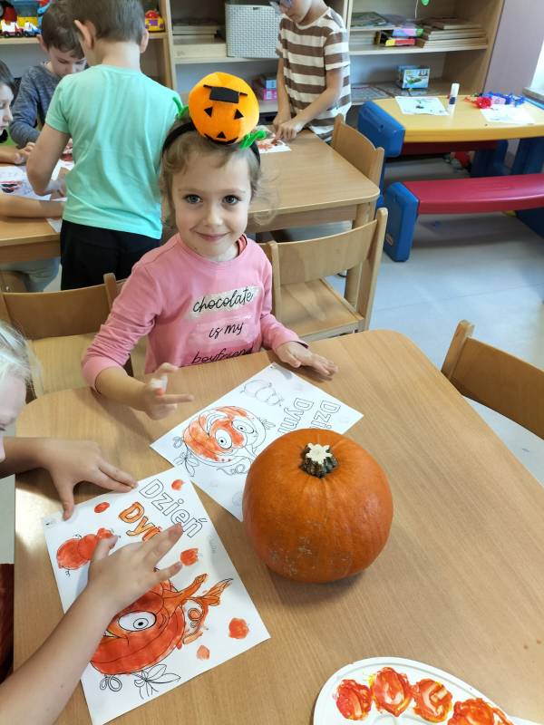 Dzisiaj w naszym przedszkolu odbył się Dzień Dyni. Wszystkie dzieci uczestniczyły w zajęciach, podczas których poznały bardzo zdrowe i urodziwe warzywo jakim jest dynia. „Dzień Dyni" pozwolił nam poznać wielką różnorodność dyń i wzbogacił naszą wiedzę na ich temat. Przedszkolaki wzięły udział w licznych zabawach z udziałem dyni. Zobaczyli również, co kryje się w środku dyni oraz pod jaką postacią można ją spożywać. Dynia była także inspiracją do różnorodnych prac plastycznej. Dzień ten przyniósł wiele wrażeń, możliwości odkrywania oraz zabawy.