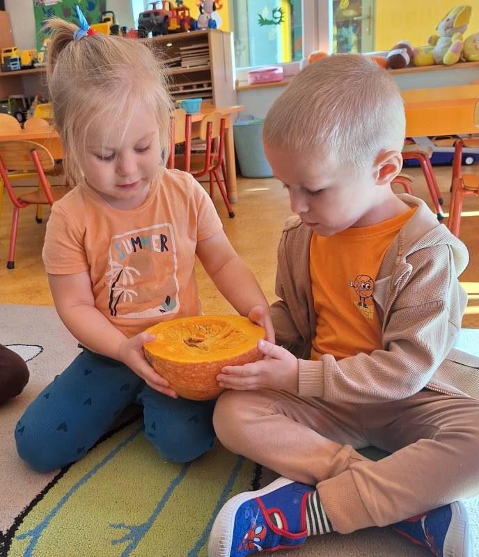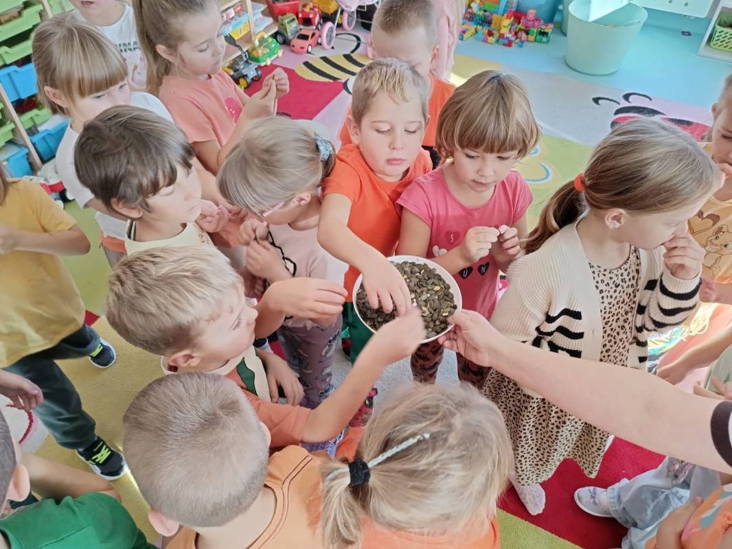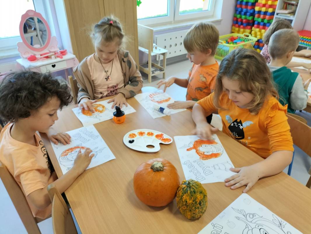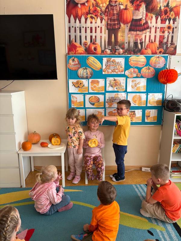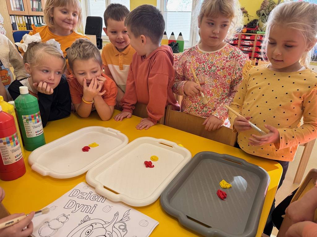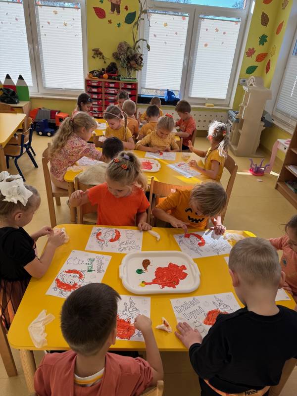 Dzisiaj w naszym przedszkolu odbył się Dzień Dyni. Wszystkie dzieci uczestniczyły w zajęciach, podczas których poznały bardzo zdrowe i urodziwe warzywo jakim jest dynia. „Dzień Dyni" pozwolił nam poznać wielką różnorodność dyń i wzbogacił naszą wiedzę na ich temat. Przedszkolaki wzięły udział w licznych zabawach z udziałem dyni. Zobaczyli również, co kryje się w środku dyni oraz pod jaką postacią można ją spożywać. Dynia była także inspiracją do różnorodnych prac plastycznej. Dzień ten przyniósł wiele wrażeń, możliwości odkrywania oraz zabawy.