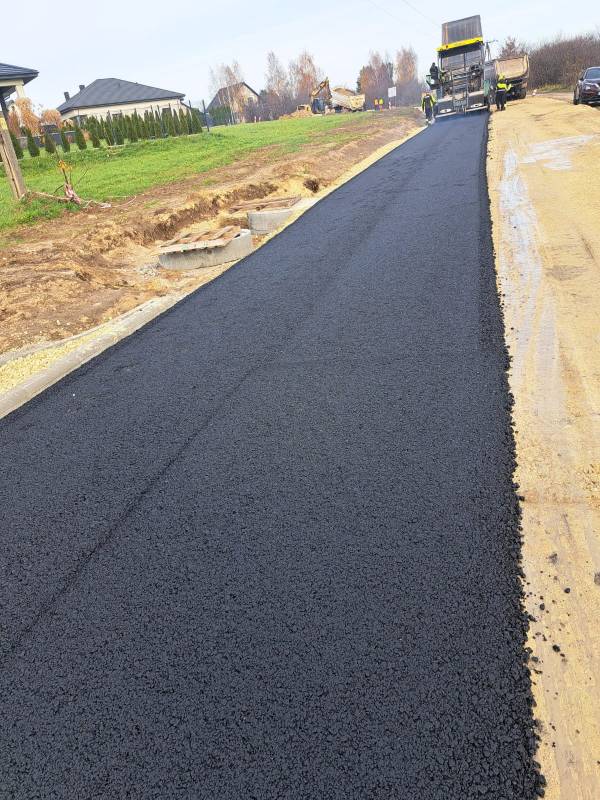 Trwają intensywne prace związane z przebudową ulicy Cmentarnej w Gorzkowicach. Obecnie wykonawca realizuje układanie dolnej warstwy asfaltowej, co stanowi jeden z kluczowych etapów inwestycji.