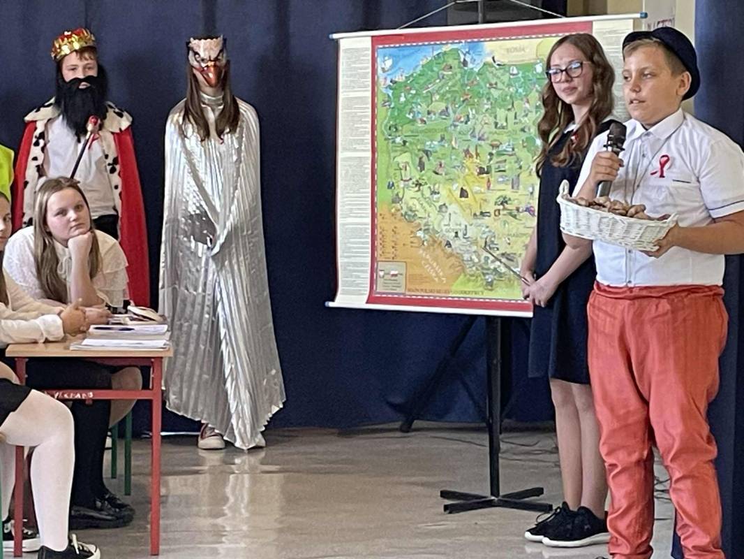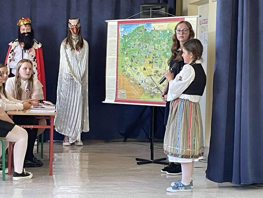 Część ostatnia to scenka rodzajowa, w której nauczyciel opowiadał uczniom o najważniejszych miejscach w Polsce, a także o ludziach i wydarzeniach z nimi związanych.