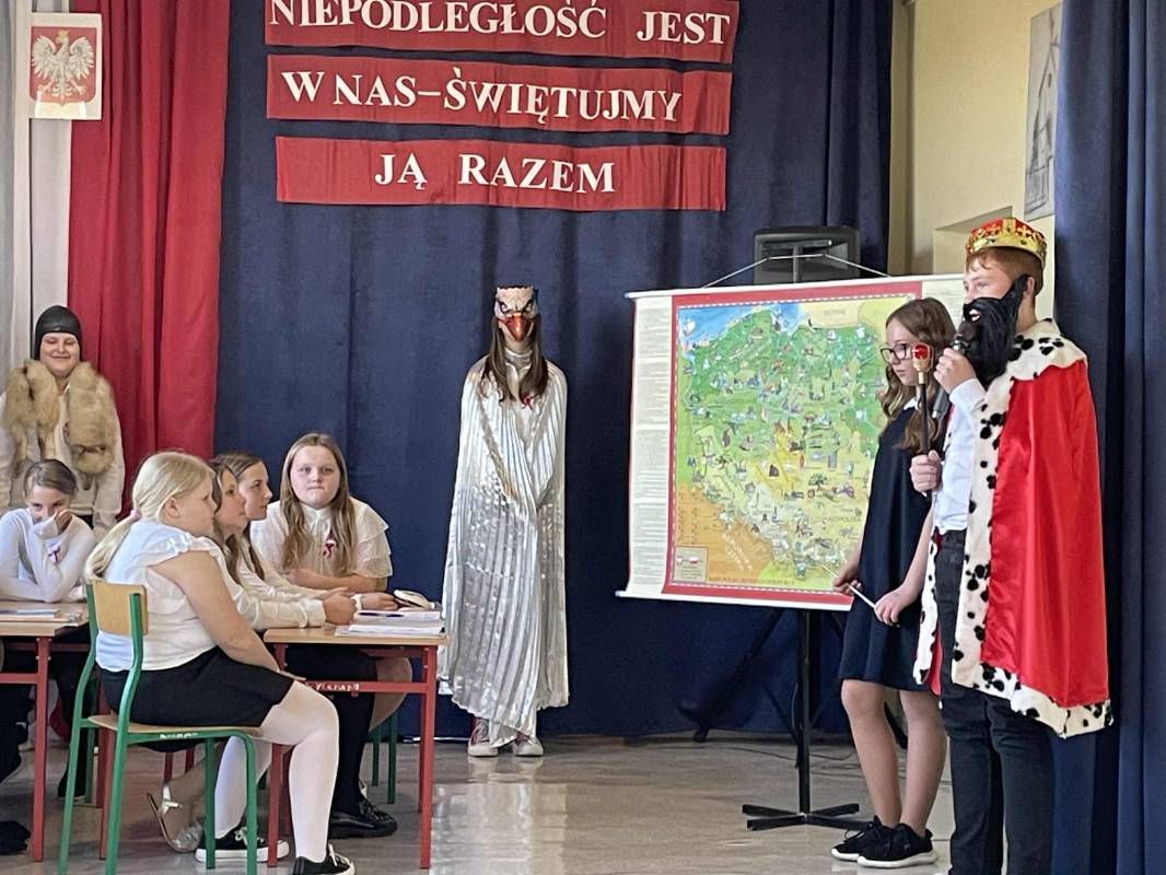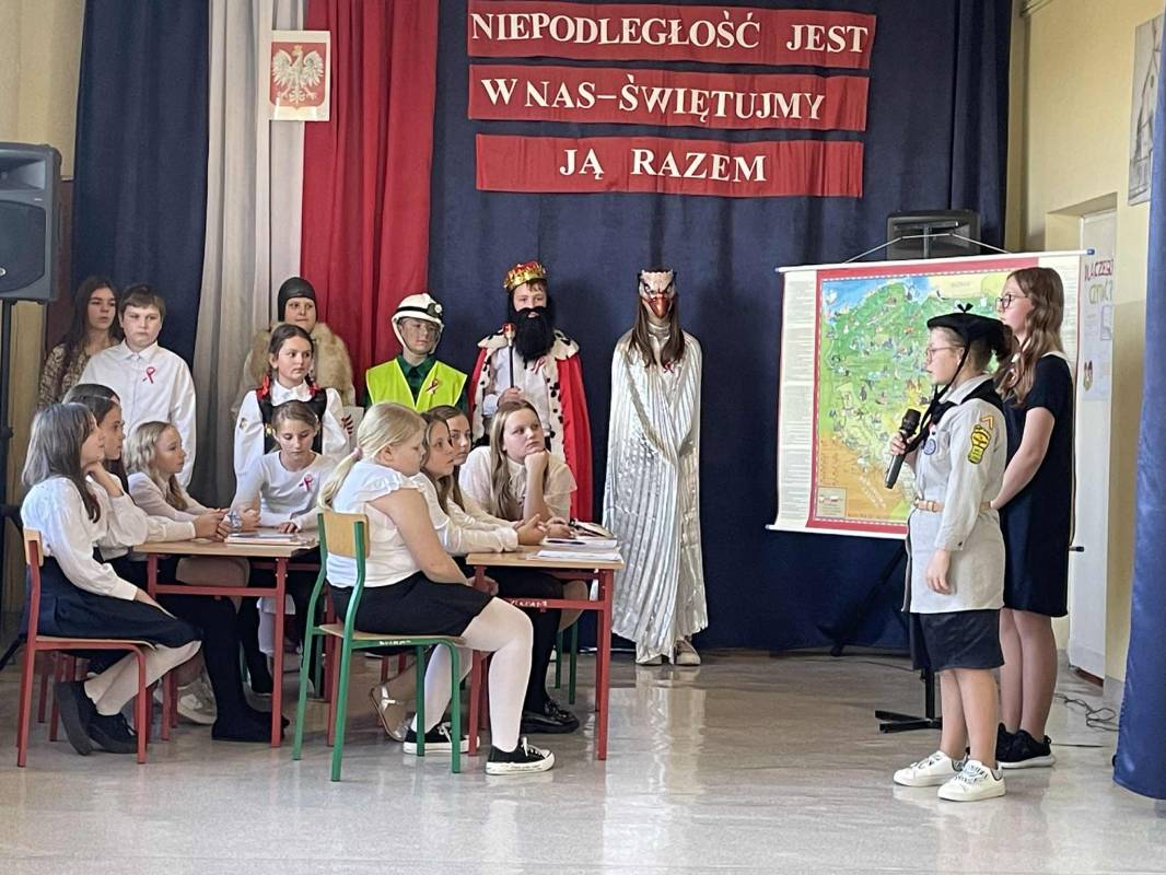 Młodzi wykonawcy zaprezentowali program artystyczny składający się z kilku części. Na początku narratorzy przedstawili historię polskich dążeń niepodległościowych, ukazując trudną drogę naszego narodu od utraty państwowości aż po jej odzyskanie w 1918 roku.