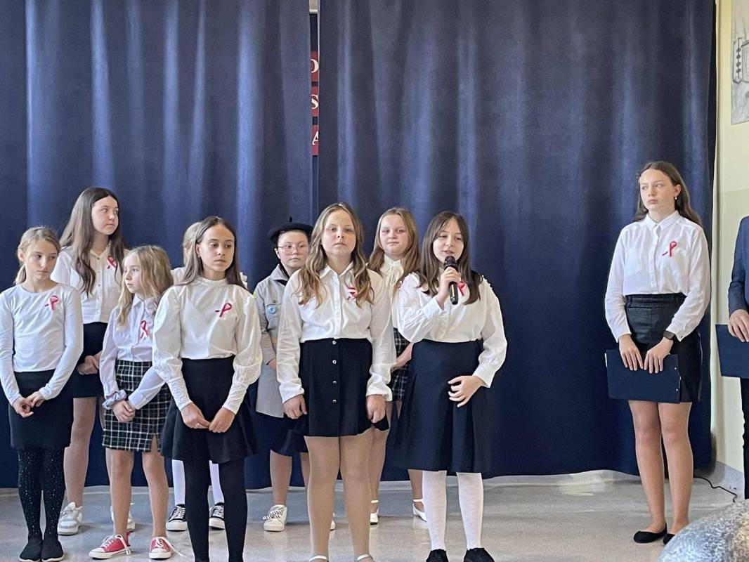 W czasie uroczystości uczniowie i nauczyciele wspólnie odśpiewali „Mazurka Dąbrowskiego” w ramach akcji „Szkoła do hymnu”. W ten sposób włączyliśmy się w symboliczne, ogólnopolskie świętowanie odzyskania niepodległości przez Polskę.