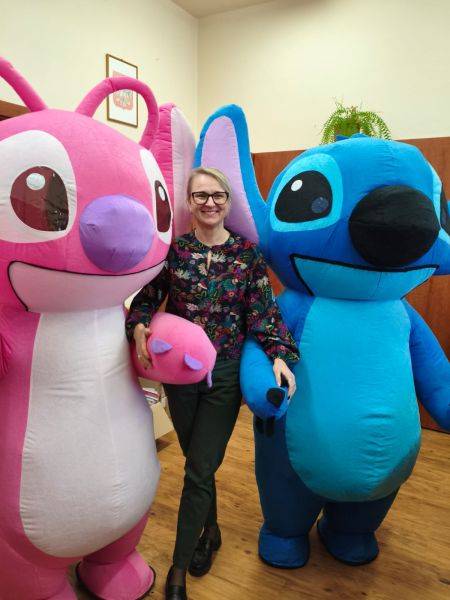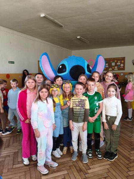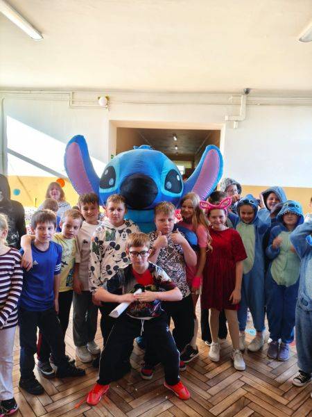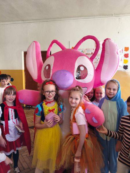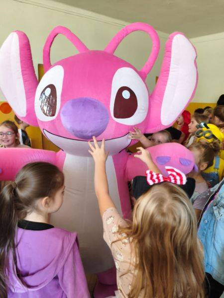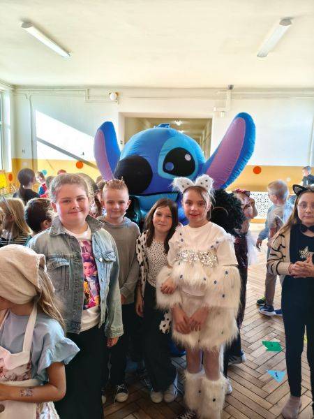 W wydarzeniu uczestniczyły również bajkowe postacie Stich i Angel, które wzbudziły ogromne zainteresowanie wśród uczniów klas 1-3. W role bajkowych bohaterów wcieliły się członkinie Samorządu Uczniowskiego – Olga Budzka i Maja Baran, animowały zabawę i zachęcały wszystkich do wspólnej integracji.