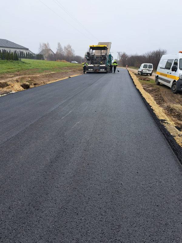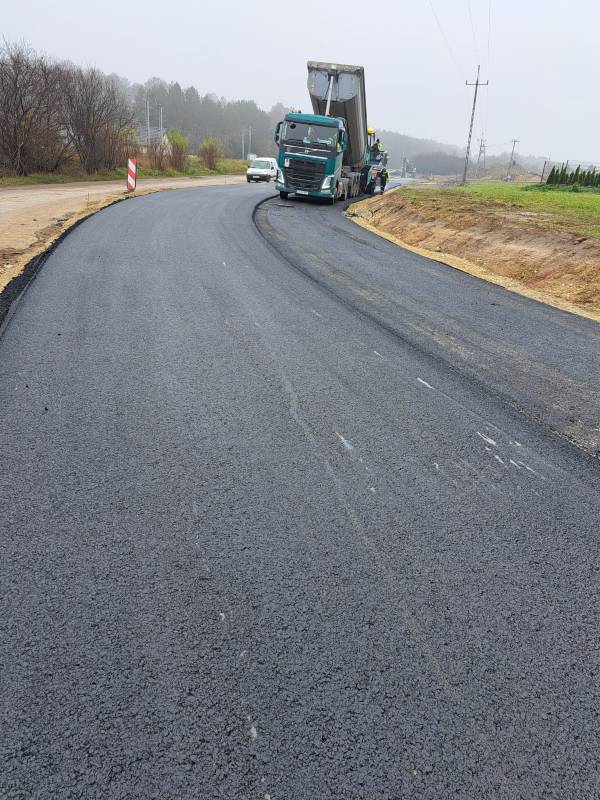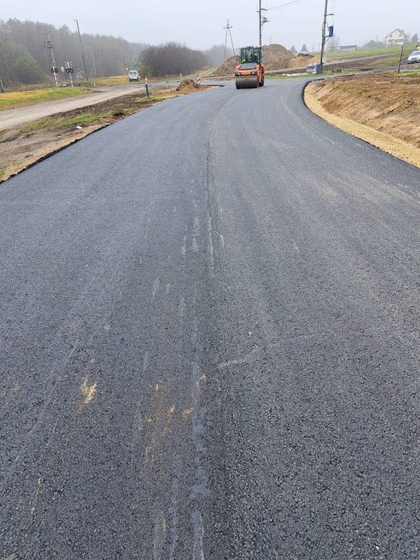 W sobotę, 8 listopada, wykonawca prowadził układanie warstwy ścieralnej nawierzchni, co stanowi jeden z ostatnich etapów prac drogowych. Dzięki sprzyjającym warunkom pogodowym roboty postępują zgodnie z harmonogramem.