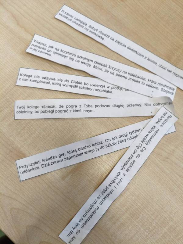 W ramach dotychczasowych spotkań uczniowie m.in. tworzyli „pajęczą sieć”, która pomaga wzmacniać poczucie wspólnoty, budowali konstrukcje z klocków, wcielając się w różne role wpływające na pracę zespołową (lider, milczek, outsider, konfliktowy, krytykujący, obojętny), wypisywali własną „receptę na rozwiązanie konfliktu”, a także odgrywali scenki uczące empatii i sposobów radzenia sobie w trudnych sytuacjach.