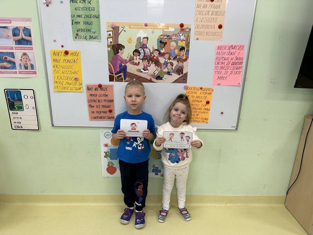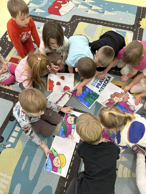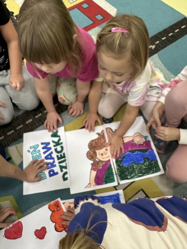 W ramach aktywności związanych z tym dniem dzieci wykonywały również plakaty i prace plastyczne, przedstawiające ich spojrzenie na tematykę praw dziecka. Kolorowe rysunki i hasła zostały zaprezentowane w salach przedszkolnych, tworząc inspirującą wystawę.