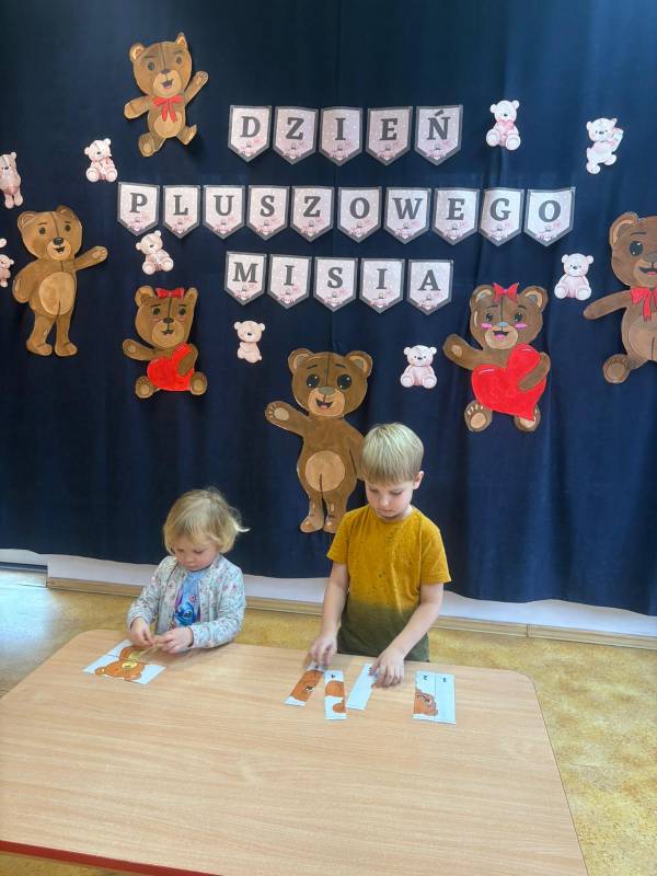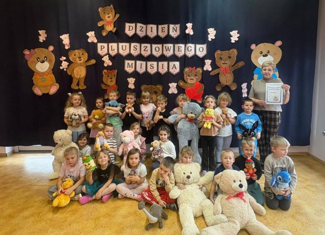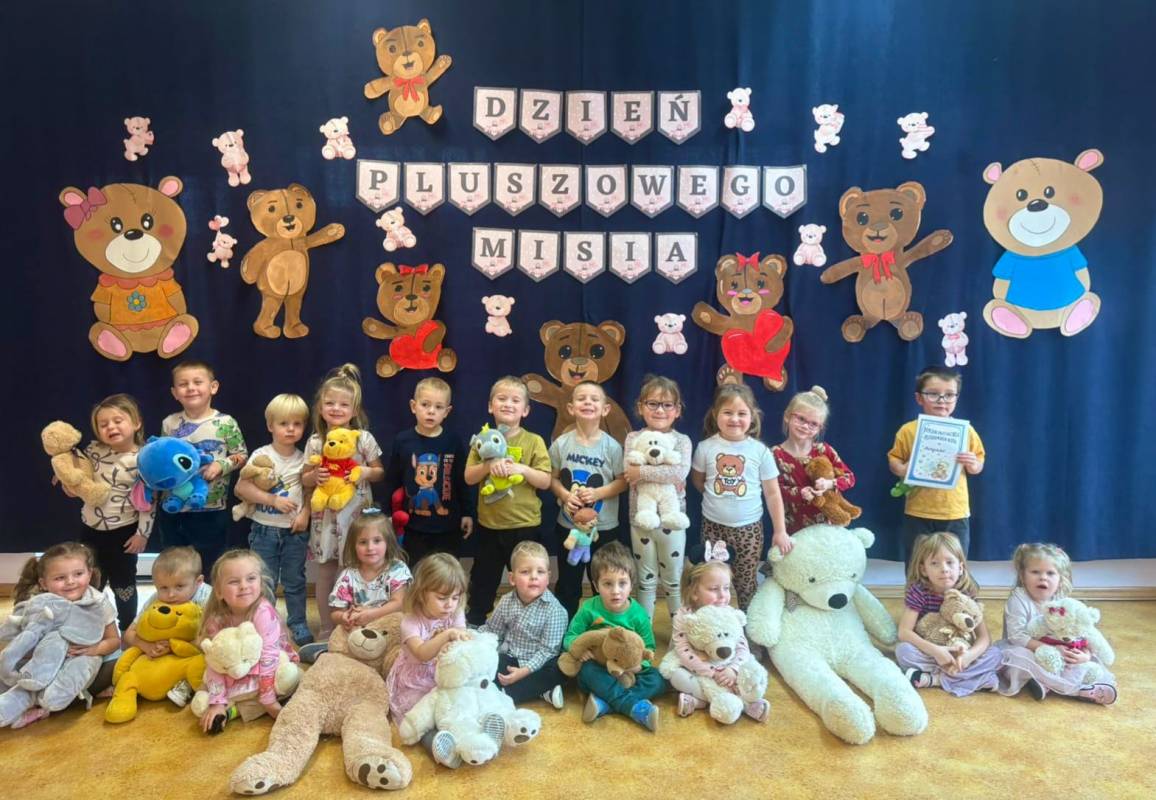 W Przedszkolu Samorządowym w Gorzkowicach 25.11.2025 r. obchodziliśmy radosny Dzień Pluszowego Misia, który dostarczył dzieciom mnóstwo uśmiechu i dobrej zabawy. Przedszkolaki przyniosły do placówki swoje ulubione pluszowe misie, które towarzyszyły im przez cały dzień. Nauczycielki przygotowały dla dzieci tematyczne zabawy. Nie zabrakło również świetnie zorganizowanych konkursów, w których dzieci brały udział z ogromnym zaangażowaniem i radością. Dużym zainteresowaniem cieszyła się także piękna dekoracja, przygotowana specjalnie na tę okazję, która stanowiła idealne tło do wspólnych pamiątkowych zdjęć. Na zakończenie wydarzenia każda grupa otrzymała dyplom konkursowy, który był miłym podsumowaniem wspólnie spędzonego czasu. To był dzień pełen ciepła, uśmiechu i misiowych przygód! Uroczystość przygotowały Panie: Kamila Kaźmierczak, Ewelina Ozga, Marta Chycka- Nurkowska, Agnieszka Sobczyk.