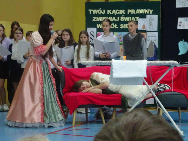 Jednym z głównych punktów programu było przedstawienie „Baśń o prawach dziecka”, przygotowane przez uczniów klas 4, 5, 6, 7, 8 we współpracy z chórkiem szkolnym. Spektakl w ciekawy i przystępny sposób ukazywał prawa najmłodszych, a wyjątkowa oprawa muzyczna nadała mu szczególny charakter.