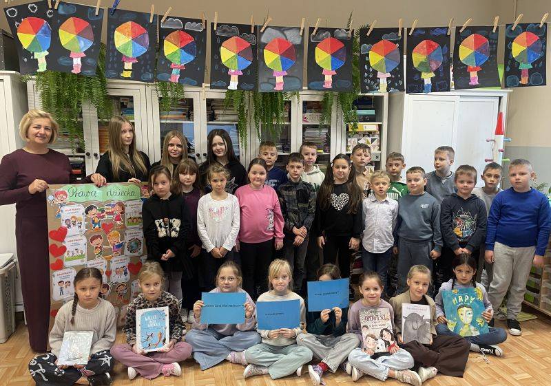 Dla uczniów klas 2 i 3, we współpracy z biblioteką szkolną, przygotowano warsztaty czytelnicze oraz konkurs plastyczny „Mój dzień, moje prawa”. Dzieci poprzez literaturę i aktywne działania odkrywały, jak mogą korzystać ze swoich praw w codziennych sytuacjach.