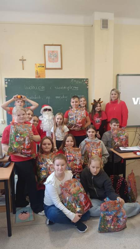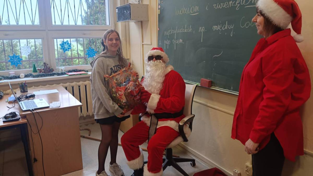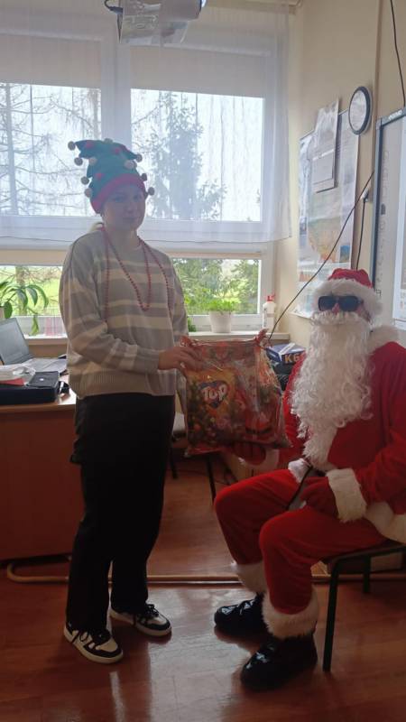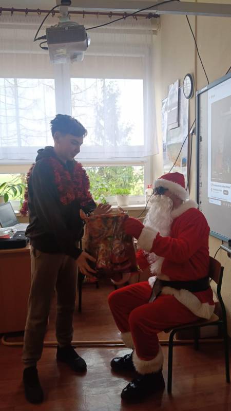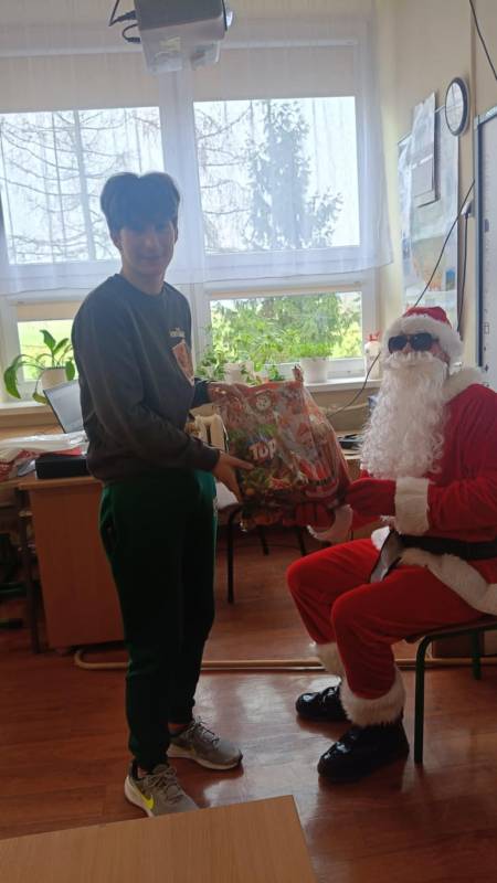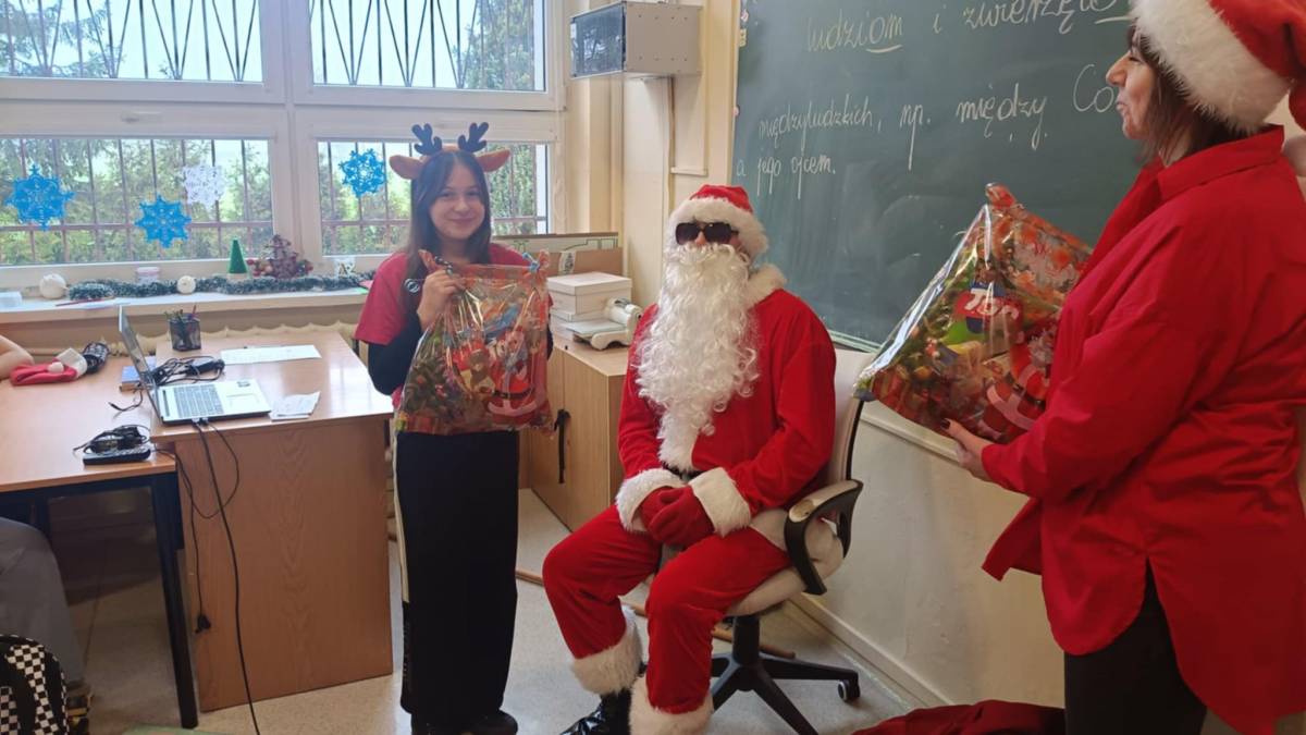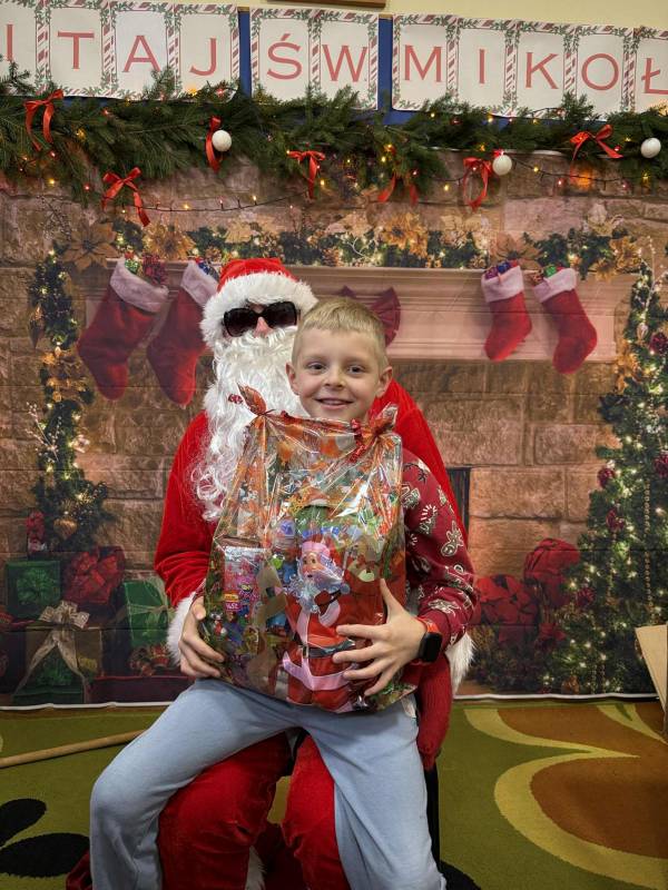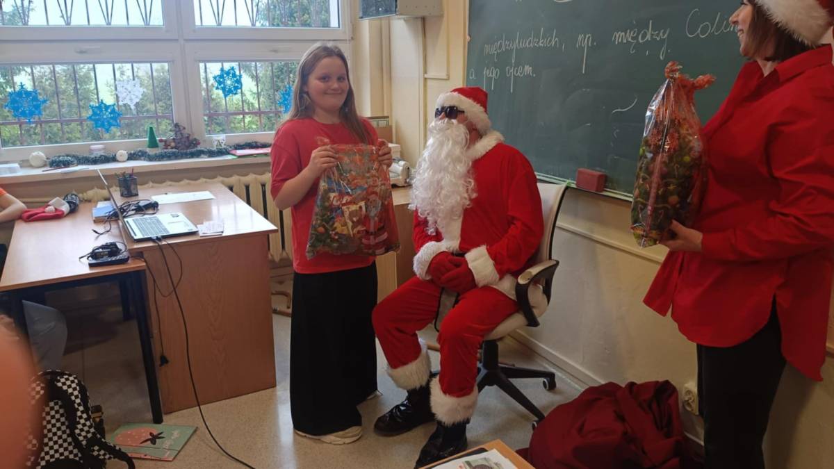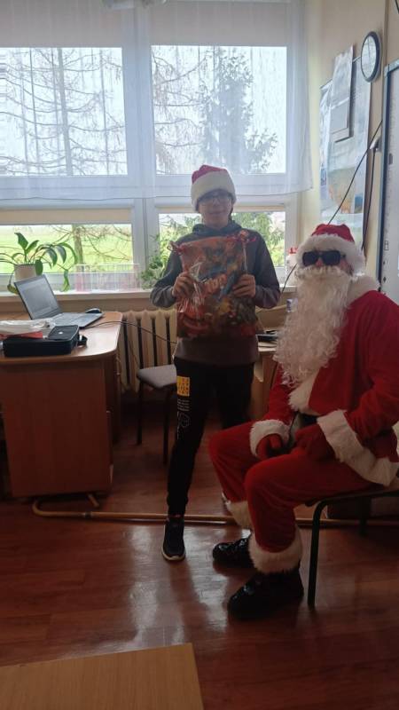 Uczniowie z przejęciem wsłuchiwali się w dźwięk dzwoneczków. Gdy rozległy się coraz wyraźniejsze głosy, wszyscy już wiedzieli, że do szkoły zbliża się sam Święty Mikołaj. Oprócz dużego worka niespodzianek przywiózł ze sobą mnóstwo uśmiechu i ciepłych słów. Rozmawiał z dziećmi, zachęcając je do bycia grzecznymi, słuchania rodziców oraz pań w szkole. Na zakończenie każdemu wręczył upominek – dla każdego znalazło się coś miłego!