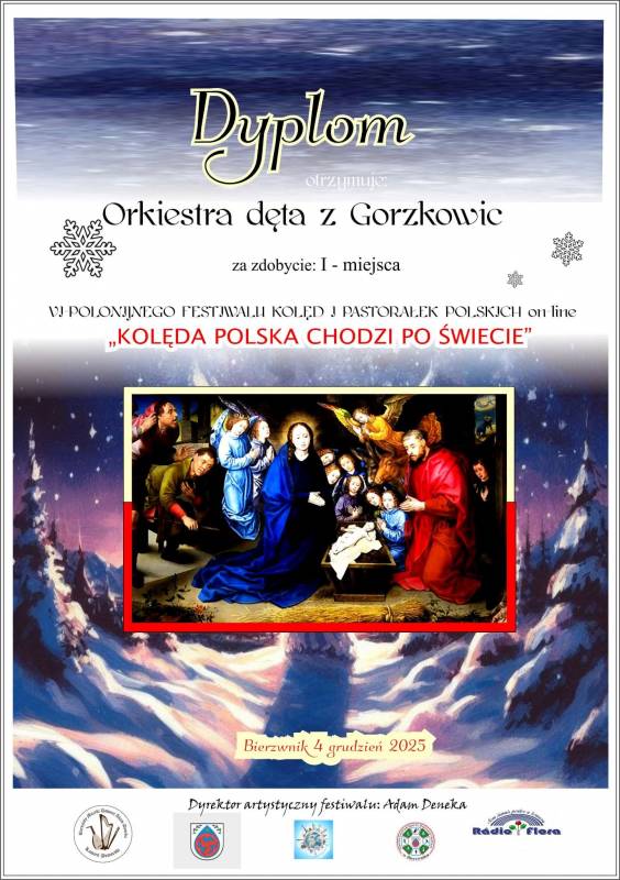 Gminna Orkiestra Dęta Gorzkowice zdobyła I miejsce w kategorii zespoły podczas Międzynarodowego Festiwalu „Kolęda Polska chodzi po Świecie”.