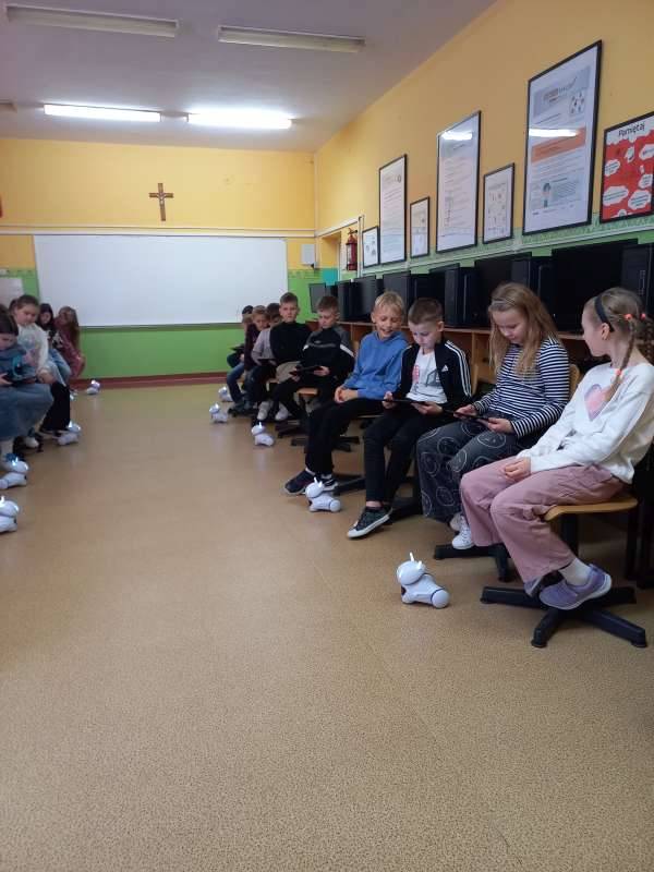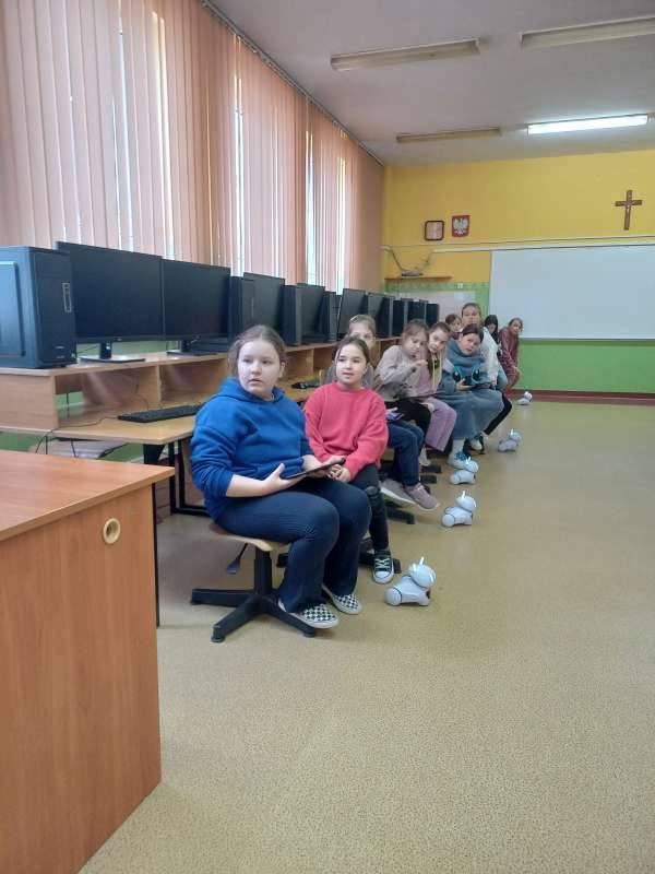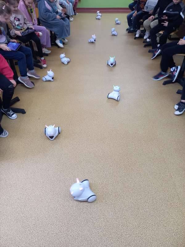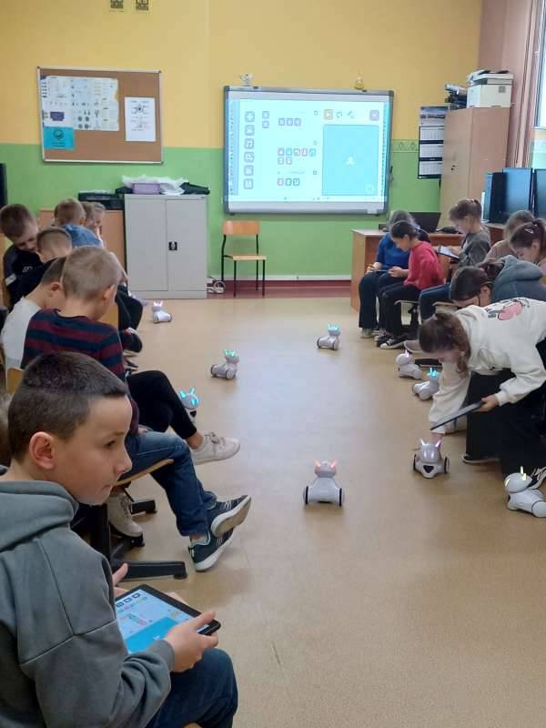W ramach Tygodnia Nowoczesnych Technologii w klasie 3A odbyła się lekcja z wykorzystaniem robotów Photon. Photon to „zabawka”, która rozwija swoje możliwości razem z dzieckiem. Robot posiada interaktywną historię, która motywuje dzieci do eksperymentowania oraz zabawy. Photon jest wyposażony w nowoczesną technologię, która potrafi reagować na wiele bodźców zewnętrznych, a dzięki dedykowanej aplikacji, pomaga dzieciom rozwijać wyobraźnię, umiejętności logicznego i analitycznego myślenia.Uczy takżepodstaw programowania. Uczniowie podczas lekcji pracowali w dwuosobowych zespołach, których zadaniem było zaplanowanie trasy jaką ma pokonać Photon z wykorzystaniem kolorów i dźwięków. Była to świetna nauka i zabawa, którą na pewno jeszcze powtórzymy.
