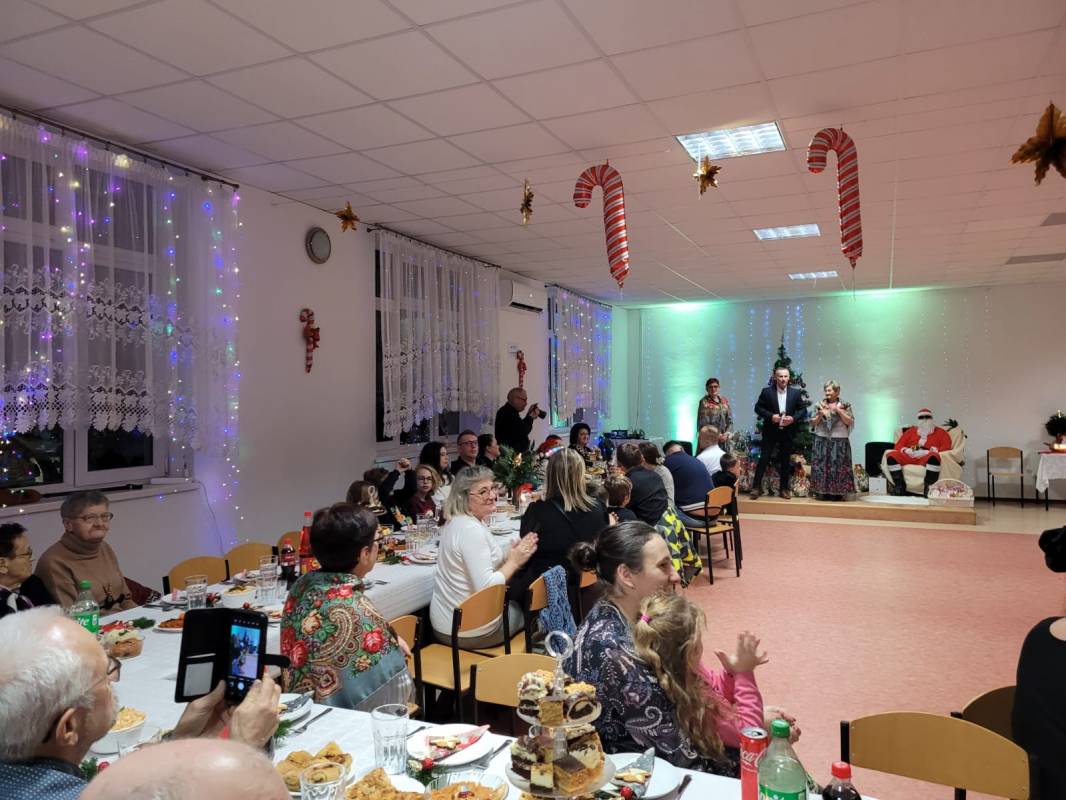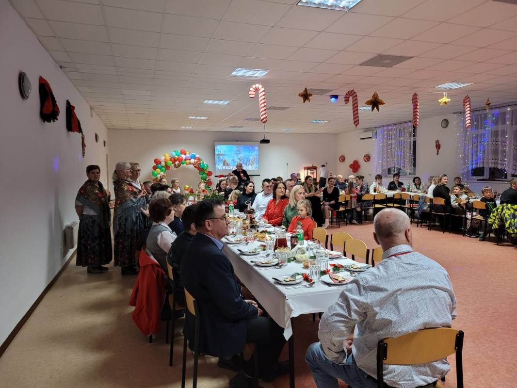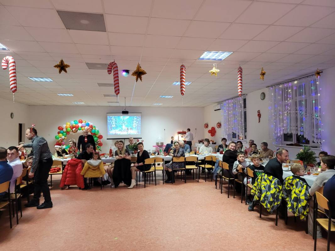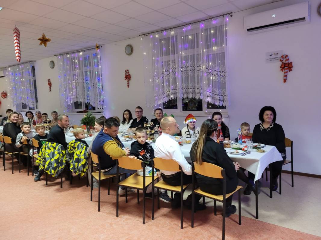Podczas spotkania dzieci cieszyły się licznymi atrakcjami i prezentami, a uczestnicy mogli delektować się pysznym jedzeniem. Tradycyjnie połamano się opłatkiem, składając sobie nawzajem serdeczne życzenia świąteczne. Był to czas pełen uśmiechu, radości i wspólnego świętowania.