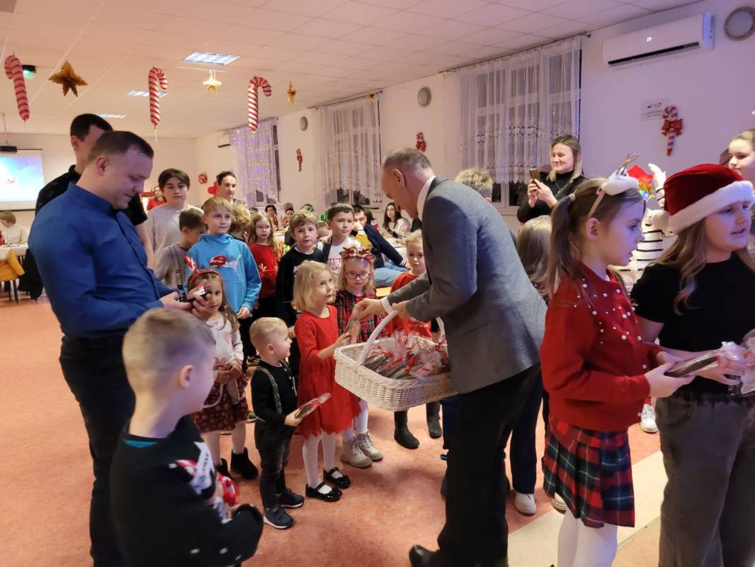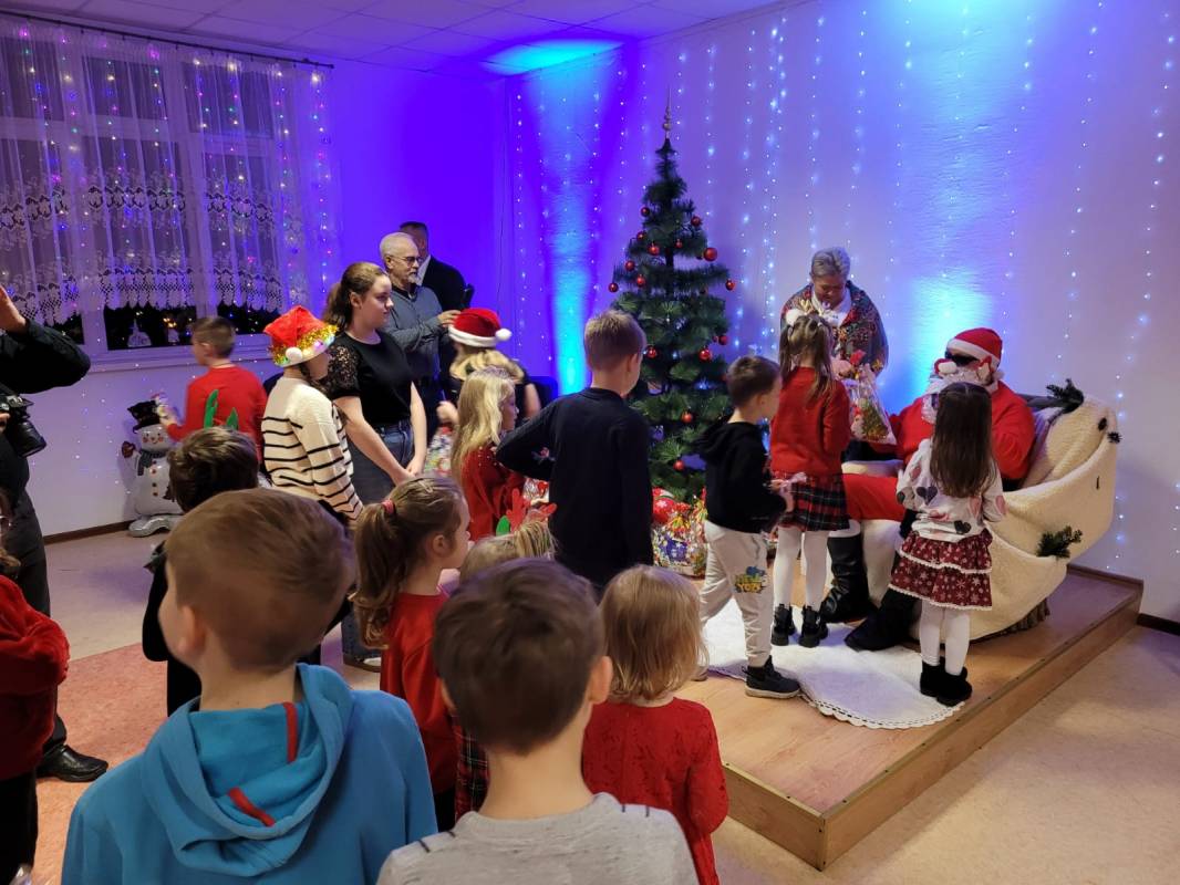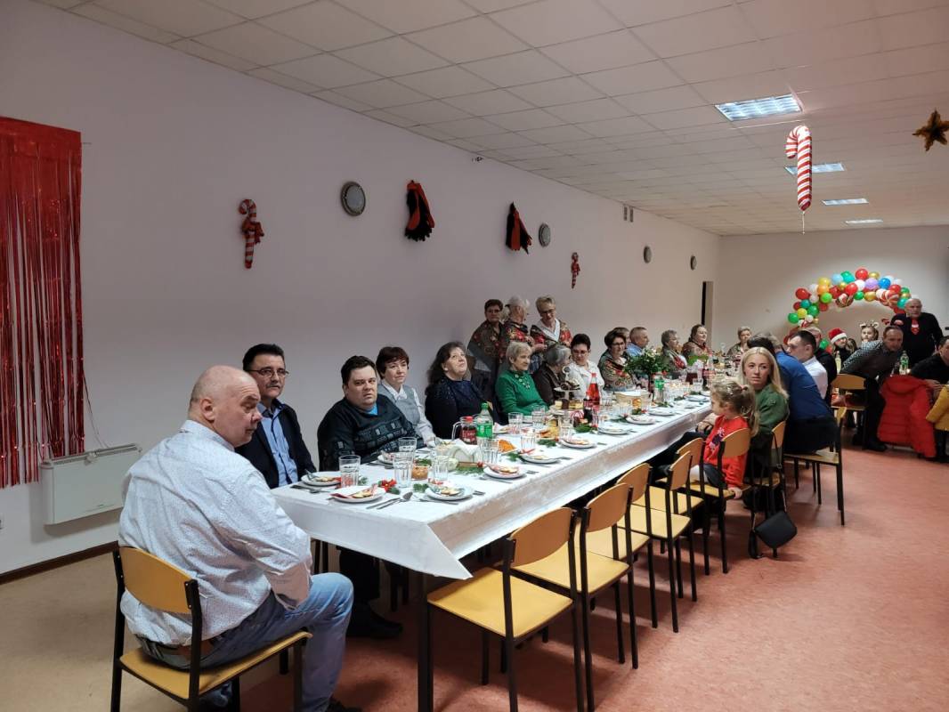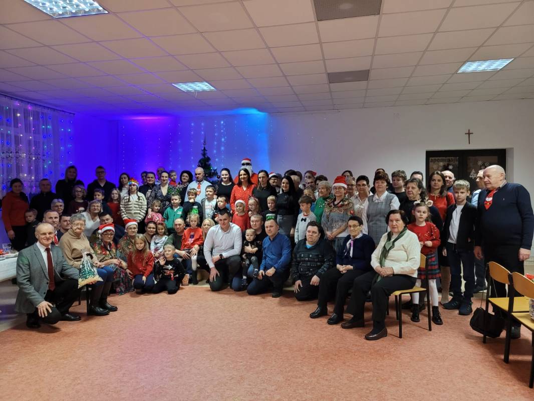 Podczas spotkania dzieci cieszyły się licznymi atrakcjami i prezentami, a uczestnicy mogli delektować się pysznym jedzeniem. Tradycyjnie połamano się opłatkiem, składając sobie nawzajem serdeczne życzenia świąteczne. Był to czas pełen uśmiechu, radości i wspólnego świętowania.