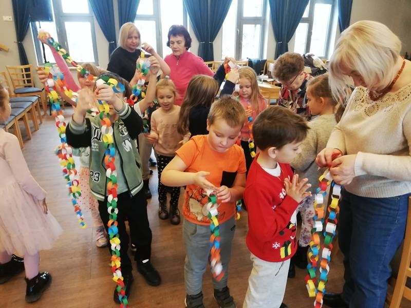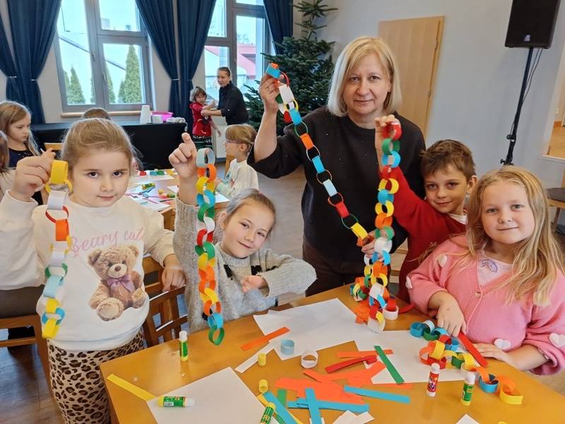 12 grudnia 2025r. w Domu Kultury w Gorzkowicach odbyły się warsztaty tworzenia tradycyjnych ozdób choinkowych. W warsztatach wzięły aktywny udział dzieci z Przedszkola Samorządowego w Gorzkowicach, które wspólnie z paniami z Klubu Seniora "Gorzkowice" wykonały piękny kolorowy łańcuch, którym ozdobiły tradycyjną choinkę.