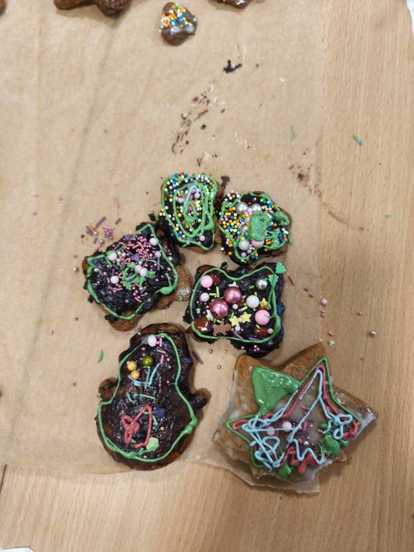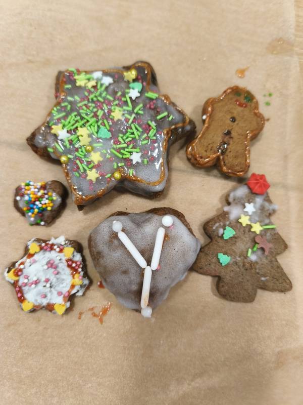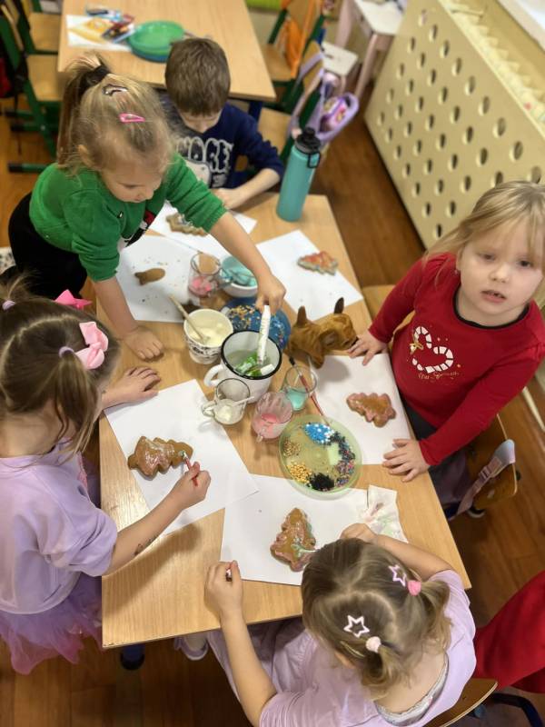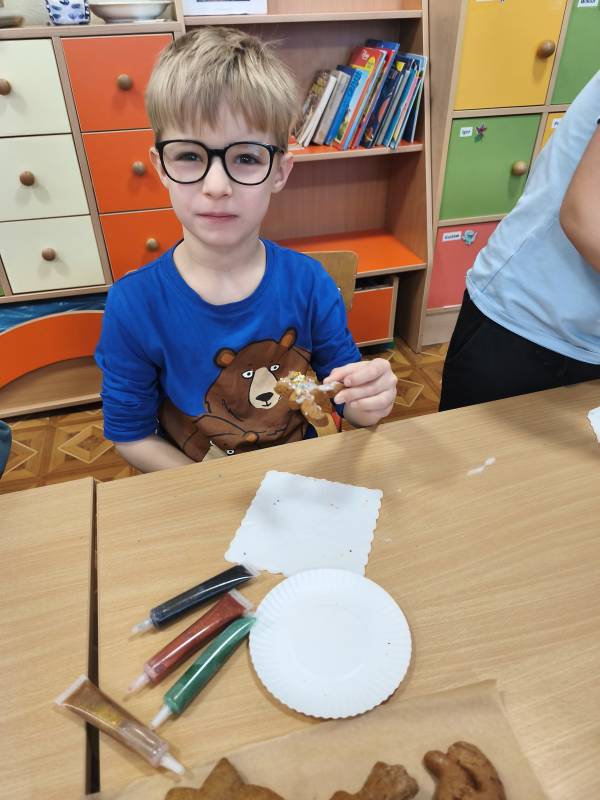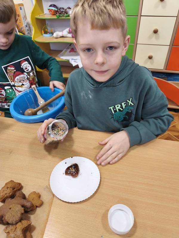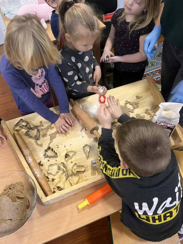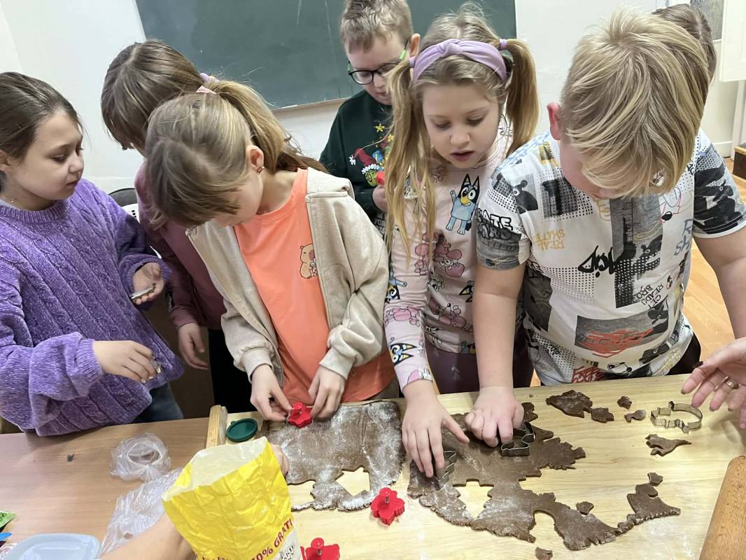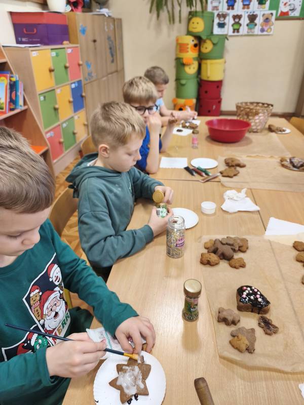 W piątek 12 grudnia korytarze Szkoły Podstawowej w Krzemieniewicach wypełnił wyjątkowy zapach korzennych przypraw, który wprowadził wszystkich w świąteczny nastrój. Stało się to za sprawą uczniów klas 0-3, którzy wspólnie wzięli udział w pieczeniu pierniczków. Dzieci z wielkim zaangażowaniem wałkowały ciasto, wykrawały różne kształty ciasteczek oraz dekorowały je kolorowymi lukrami i posypkami.