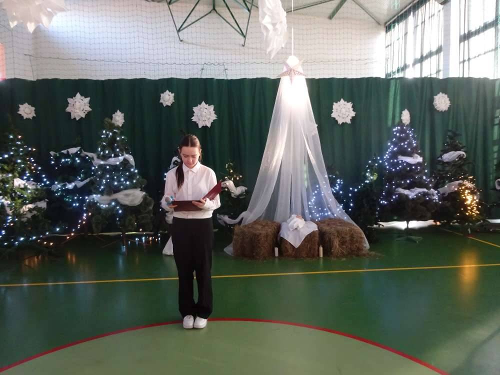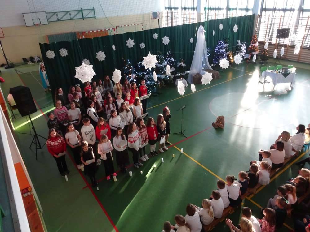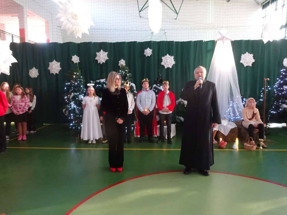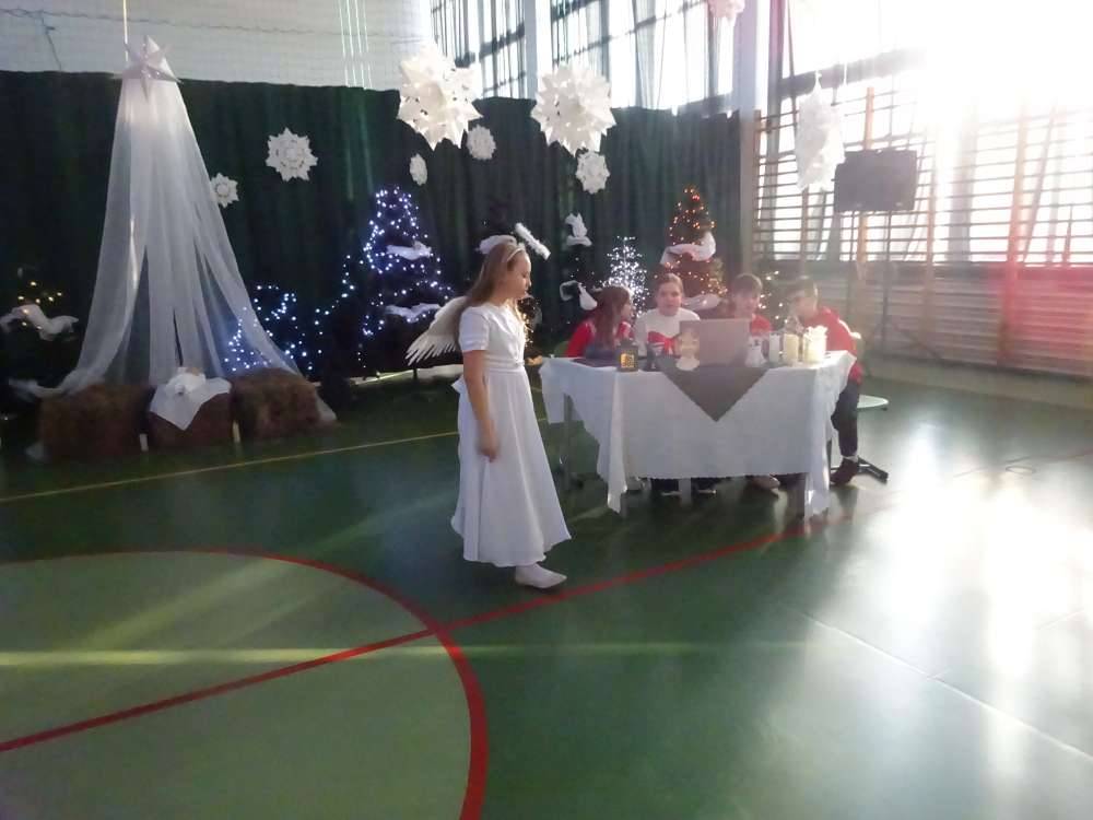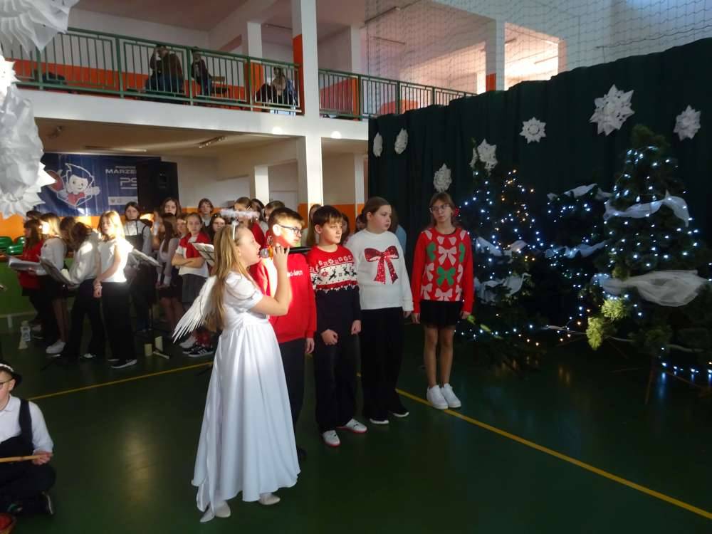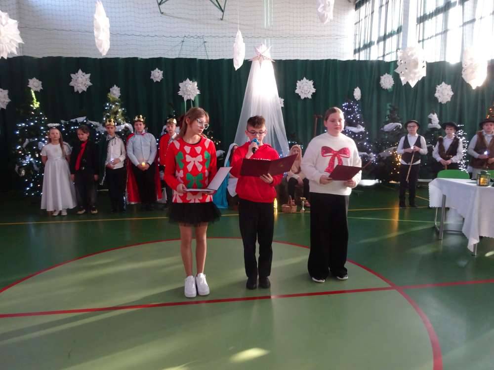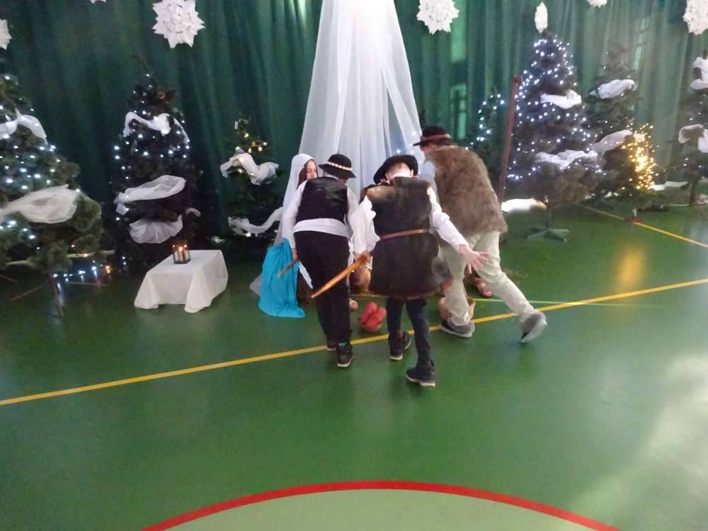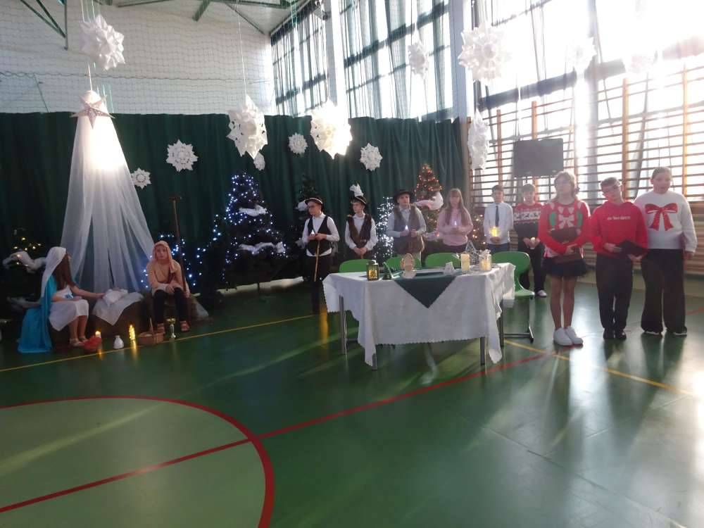W świątecznej atmosferze odbyły się jasełka bożonarodzeniowe przygotowane przez uczniów klas piątych wraz z wychowawcami. Przedstawienie to w umiejętny sposób połączyło nowoczesne środki wyrazu z głęboko zakorzenionym, staropolskim przesłaniem płynącym z tradycji bożonarodzeniowej. Dzięki temu wydarzenie nabrało wyjątkowego charakteru, ukazując ponadczasowość wartości, które od pokoleń towarzyszą świętom Narodzenia Pańskiego.