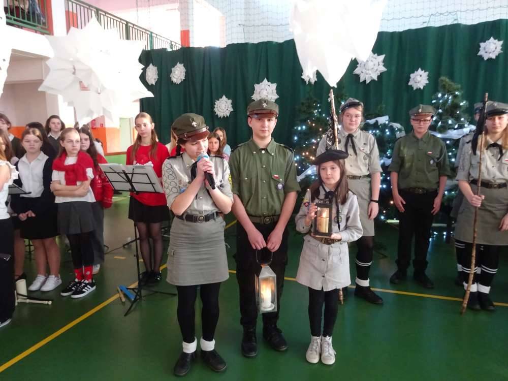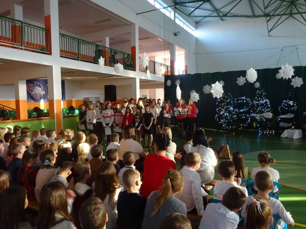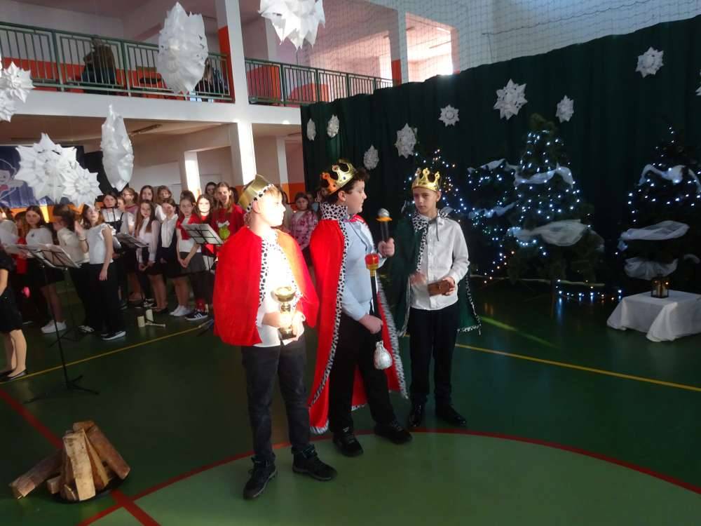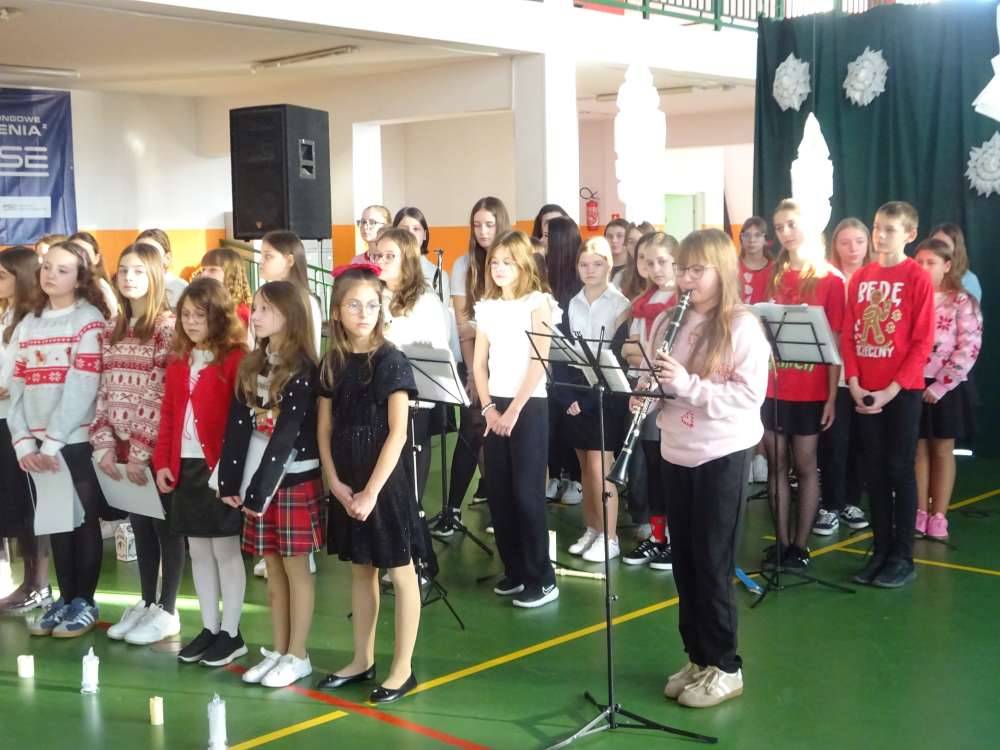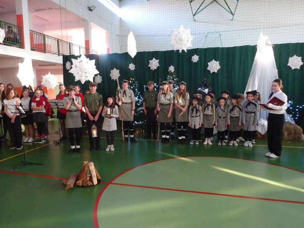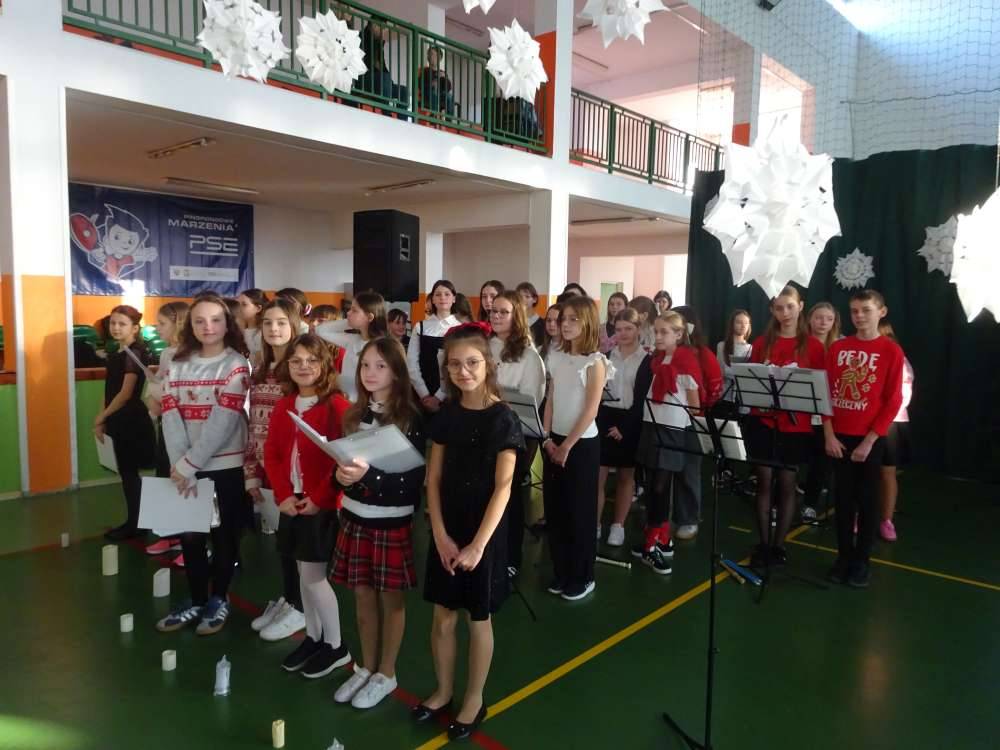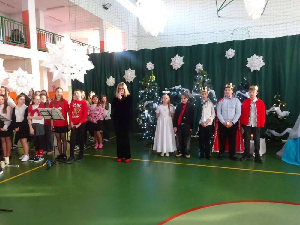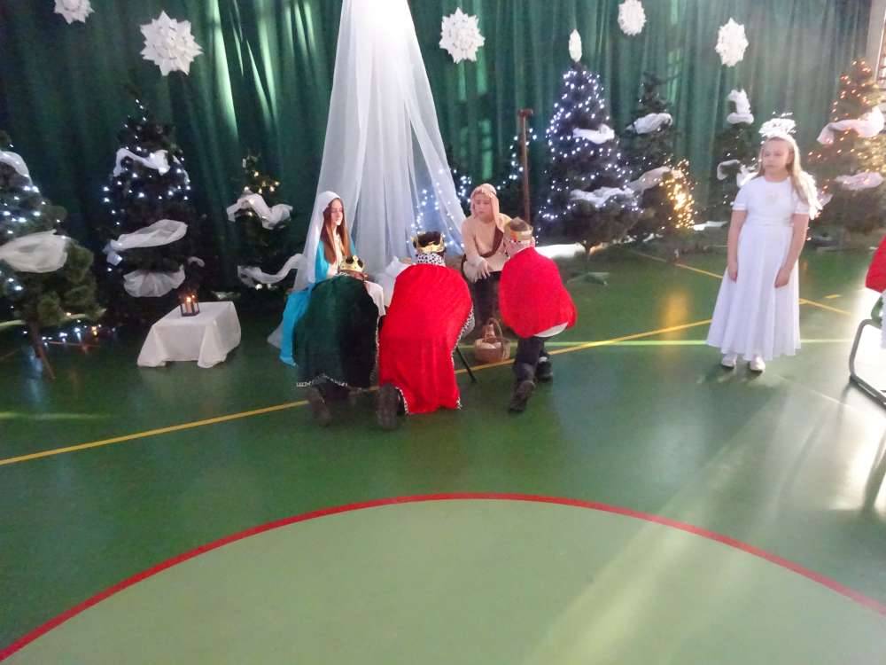 W świątecznej atmosferze odbyły się jasełka bożonarodzeniowe przygotowane przez uczniów klas piątych wraz z wychowawcami. Przedstawienie to w umiejętny sposób połączyło nowoczesne środki wyrazu z głęboko zakorzenionym, staropolskim przesłaniem płynącym z tradycji bożonarodzeniowej. Dzięki temu wydarzenie nabrało wyjątkowego charakteru, ukazując ponadczasowość wartości, które od pokoleń towarzyszą świętom Narodzenia Pańskiego.