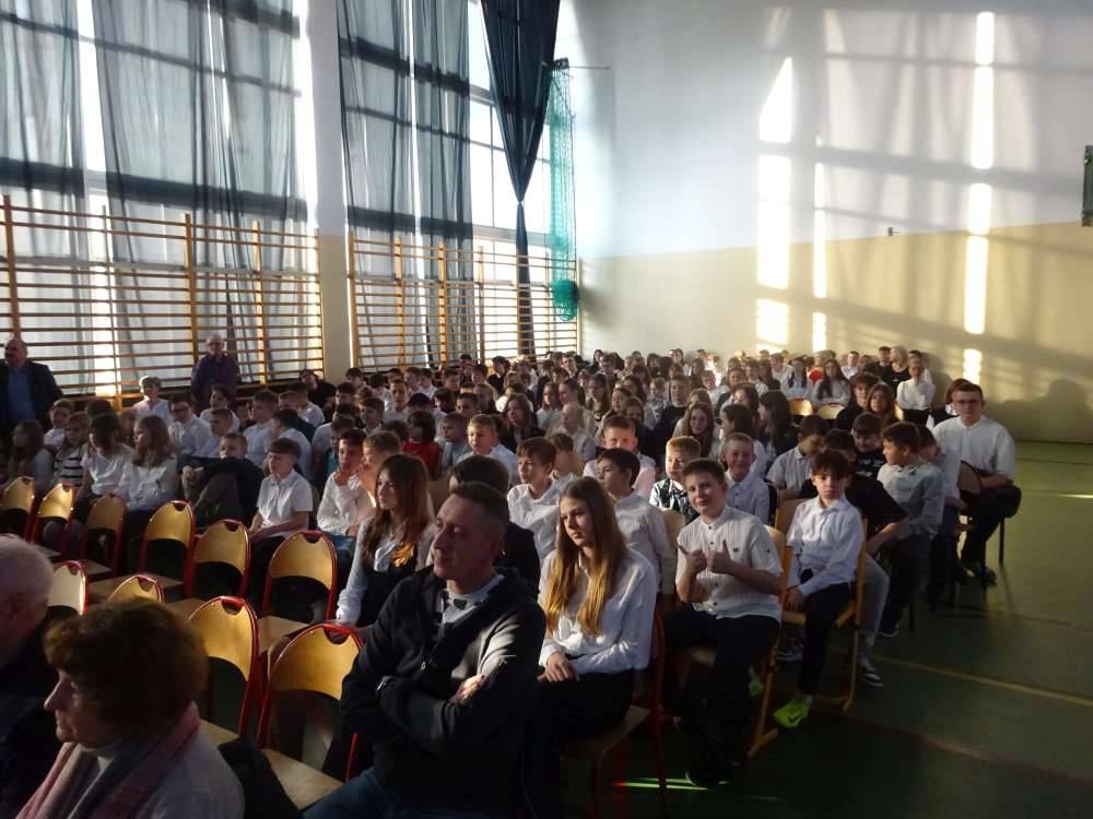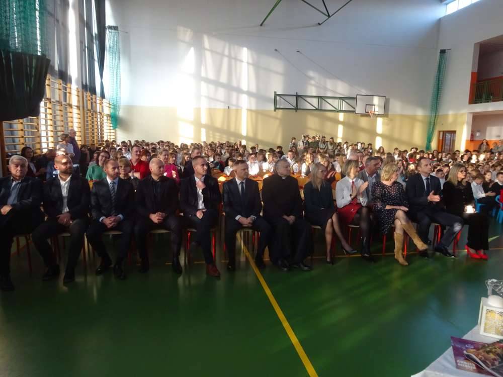 Składamy serdeczne podziękowania uczniom klas piątych oraz ich wychowawcom – pani Ewie Turkowskiej, pani Izabeli Jachimczak i pani Agnieszce Ziembie za przygotowanie pięknego i wartościowego wydarzenia, które na długo pozostanie w pamięci odbiorców. Podziękowania ślemy również pani Renacie Ziembie za montaż muzyczny oraz pani Agnieszce Kubiak za udzieloną pomoc, a także panu Markowi Siewierskiemu za opiekę nad sprzętem muzycznym i panu Mirosławowi Rzepeckiemu za wykonanie zdjęć.